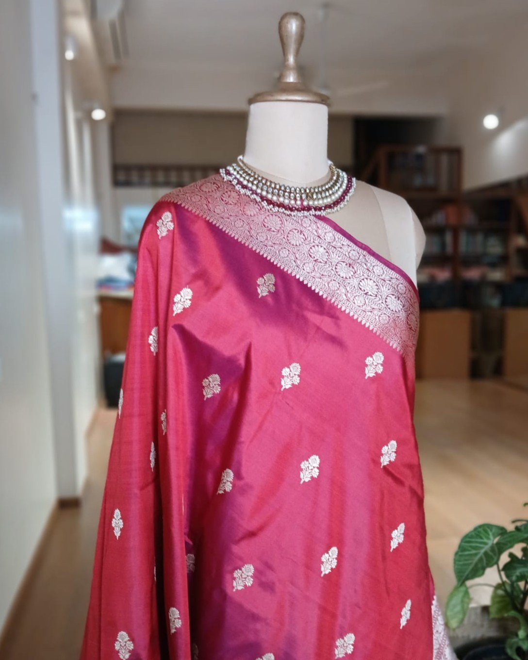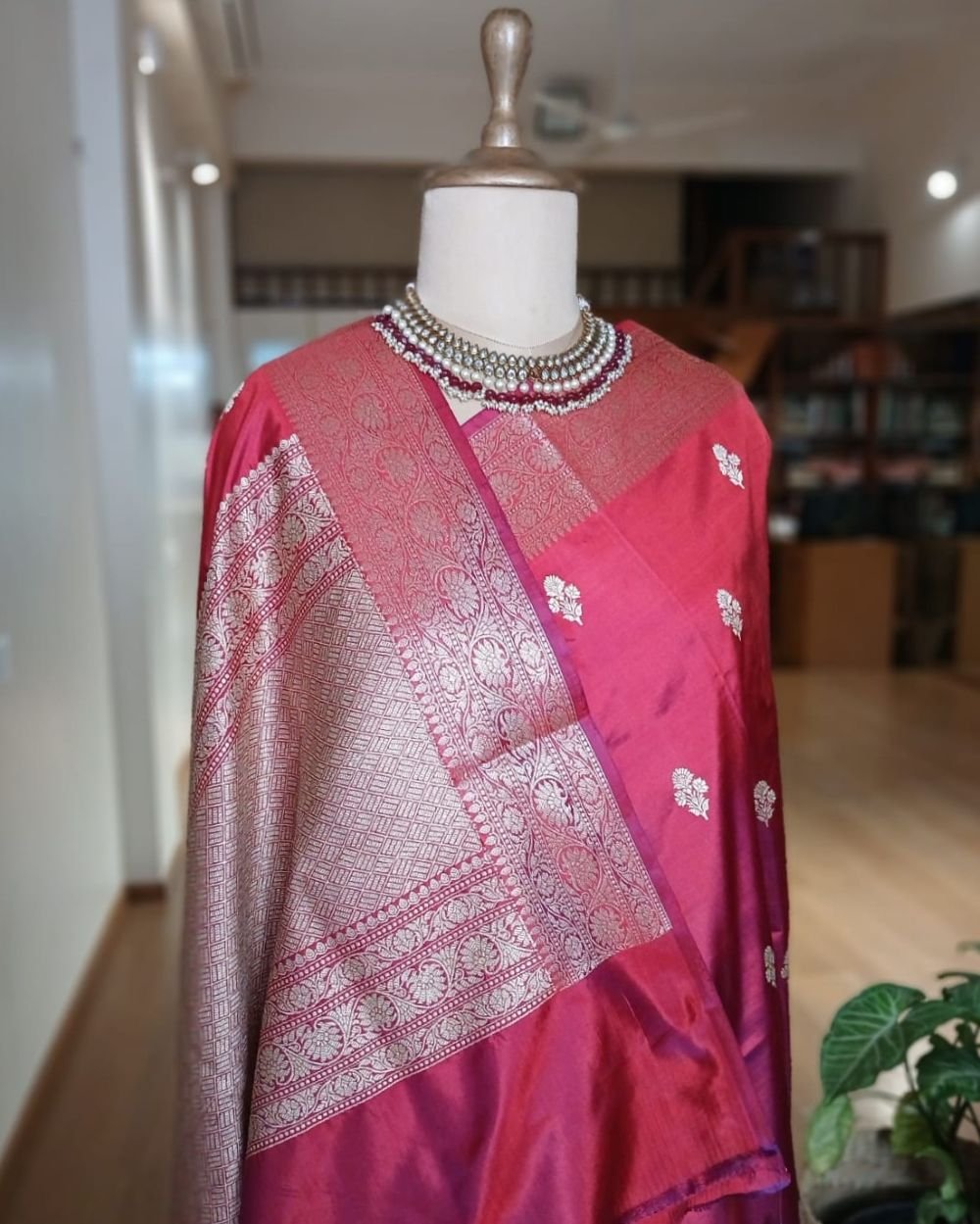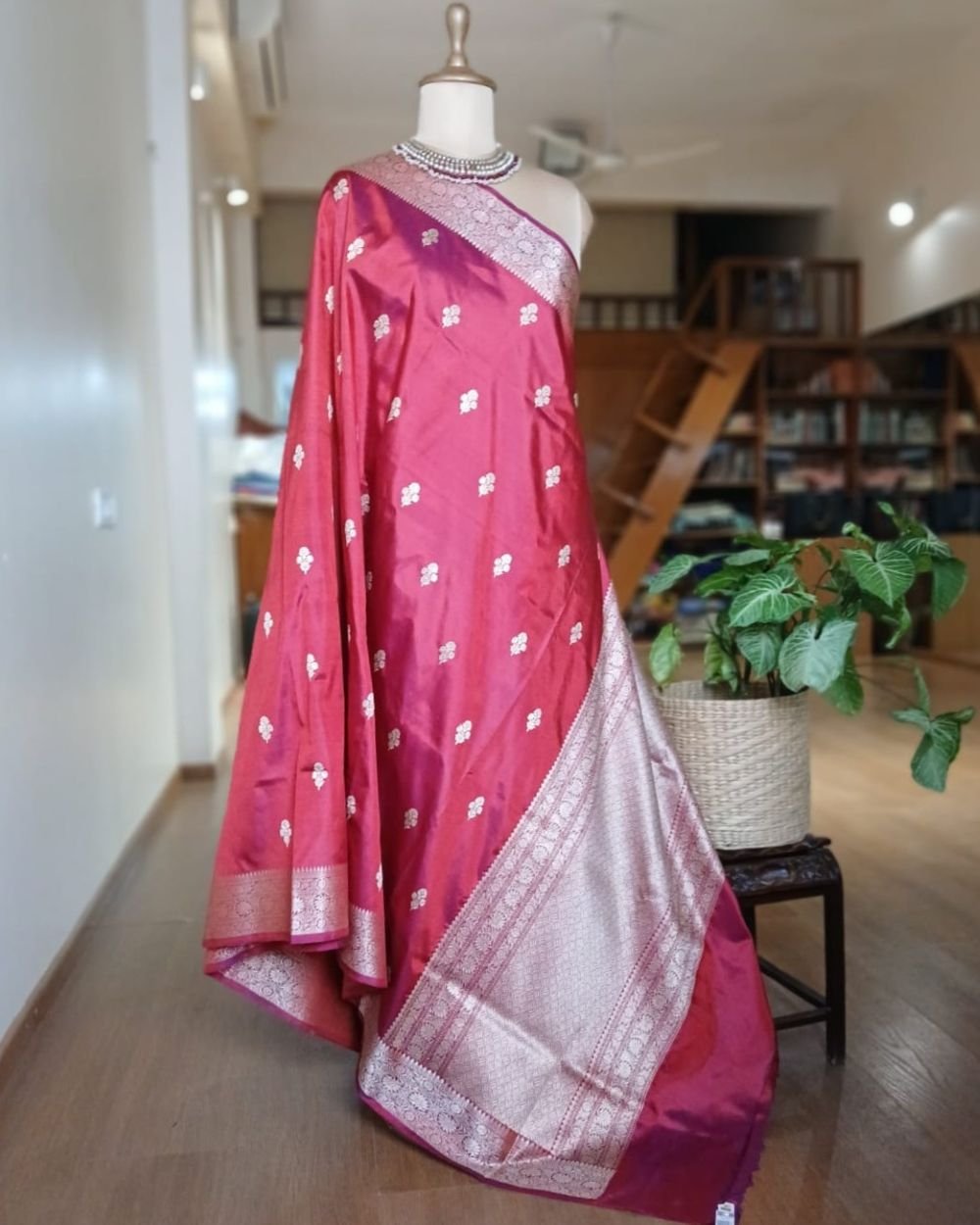 Banarasi pure silk (katan silk) saree with kadua buttis and laccha borders.
