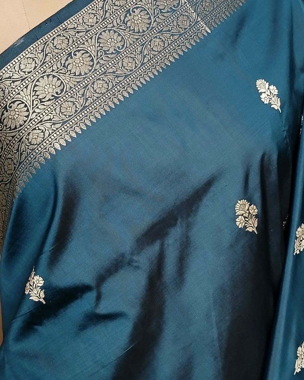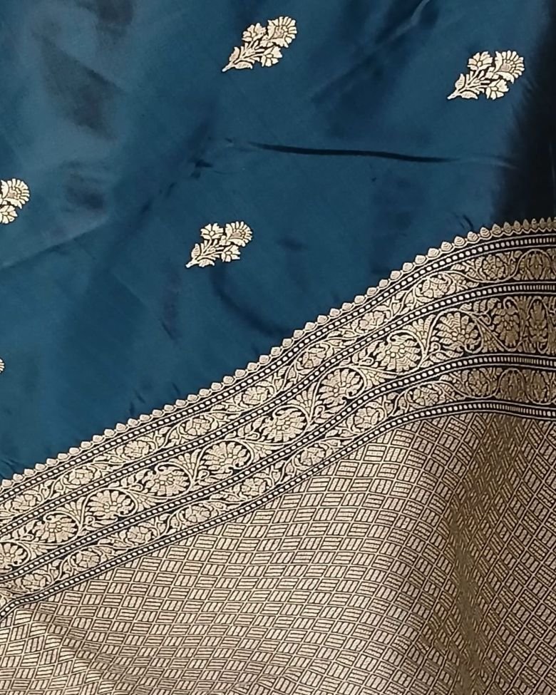 Banarasi pure silk (katan silk) saree with kadua buttis and laccha borders.