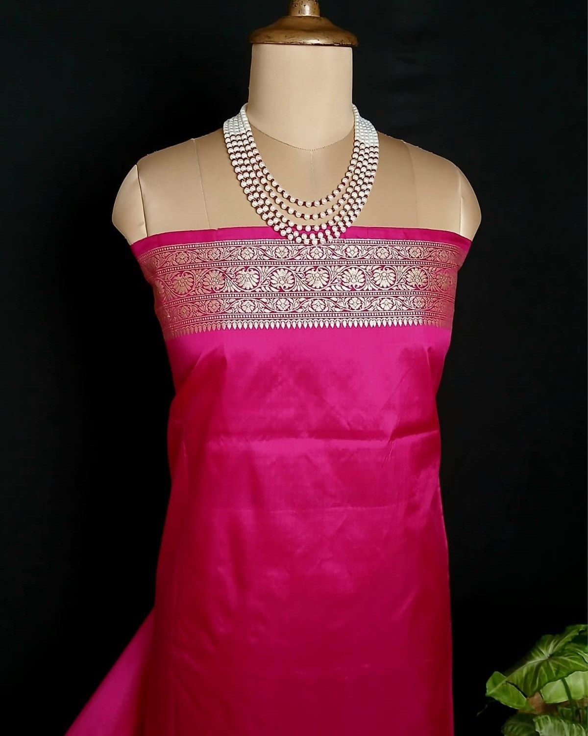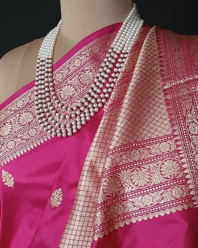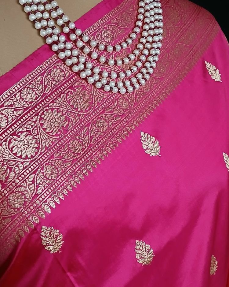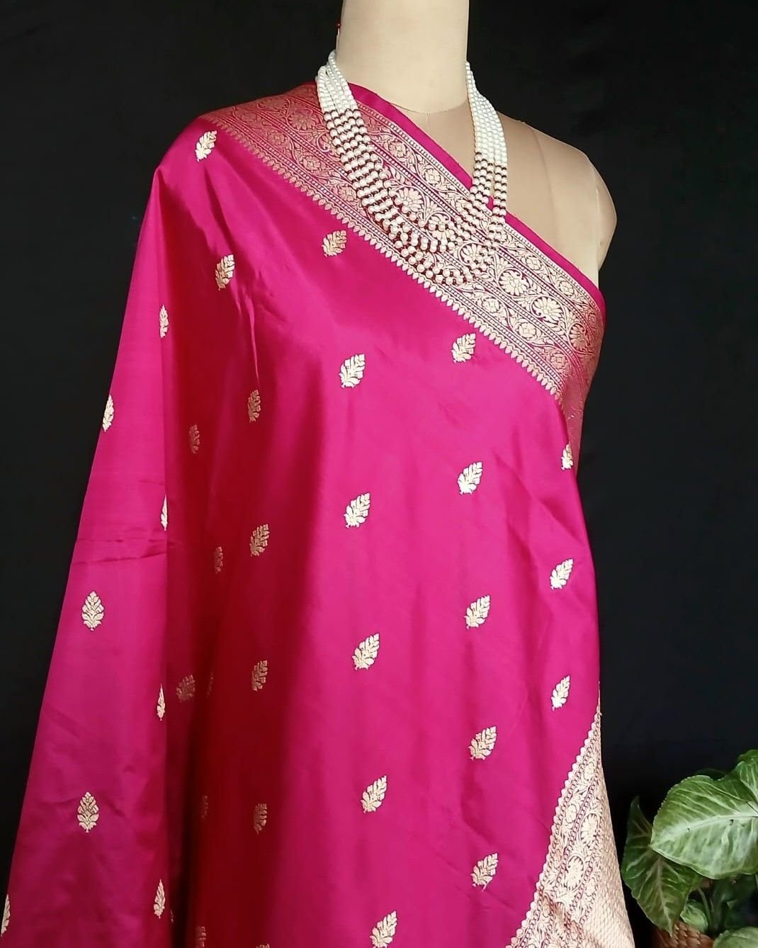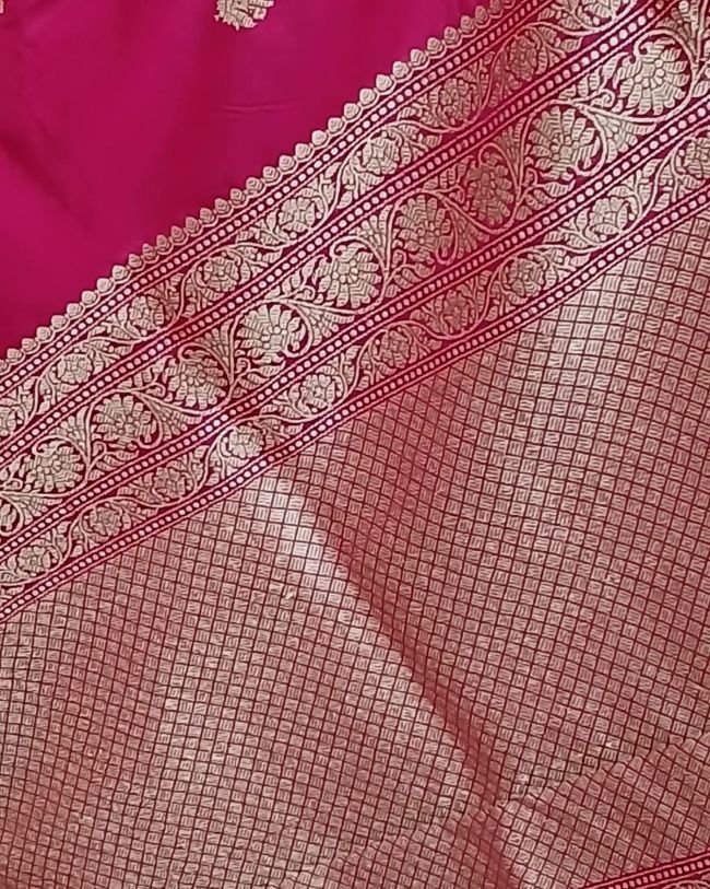 Banarasi pure silk (katan silk) saree with kadua buttis and laccha borders.