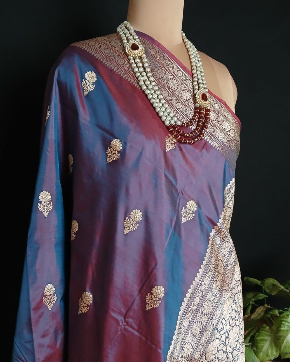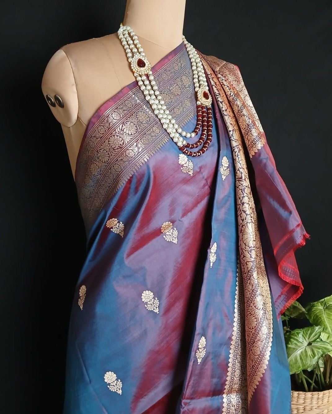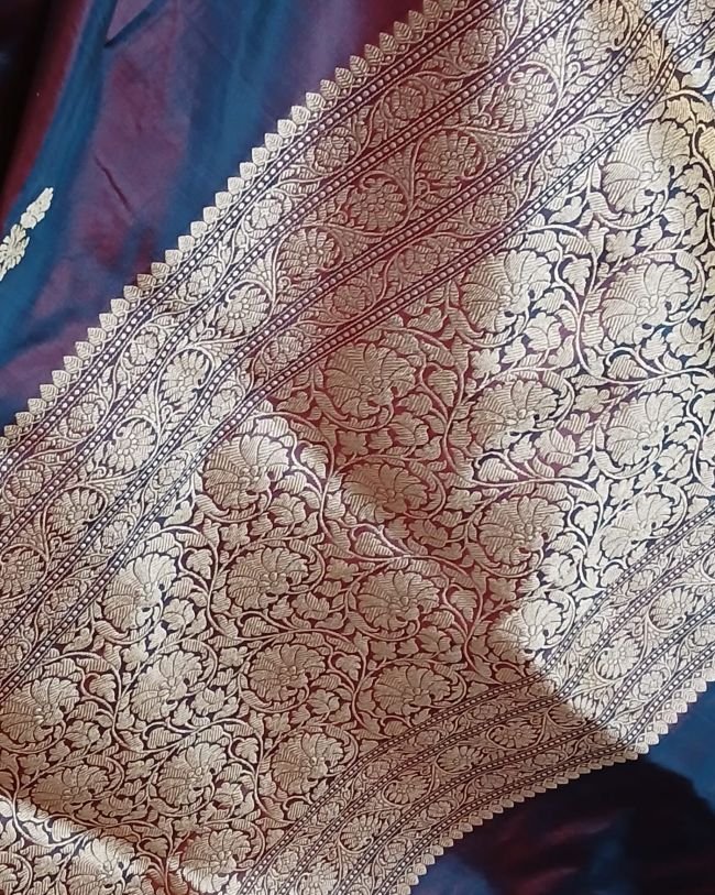 Banarasi pure silk (katan silk) saree with kadua buttis and laccha borders.