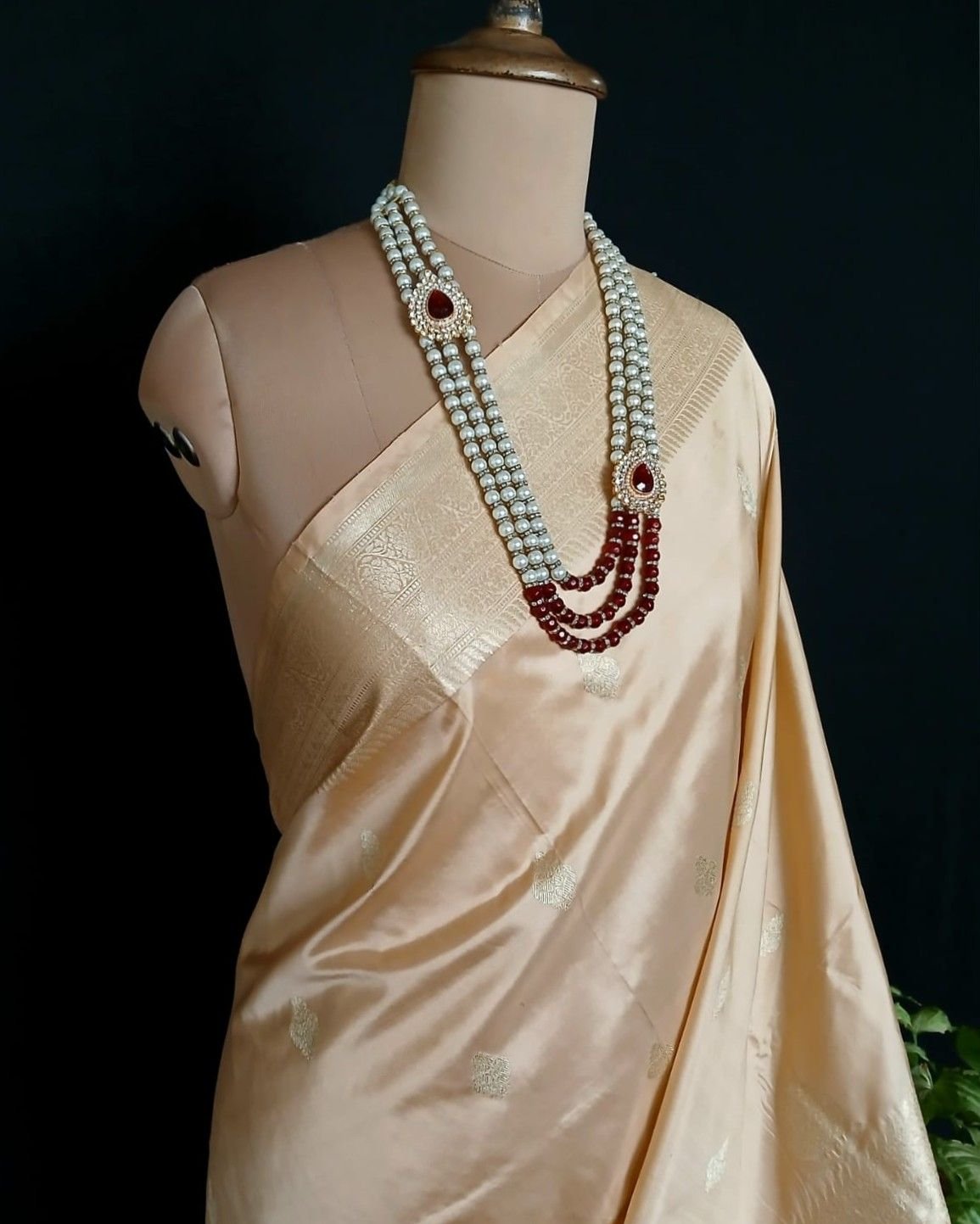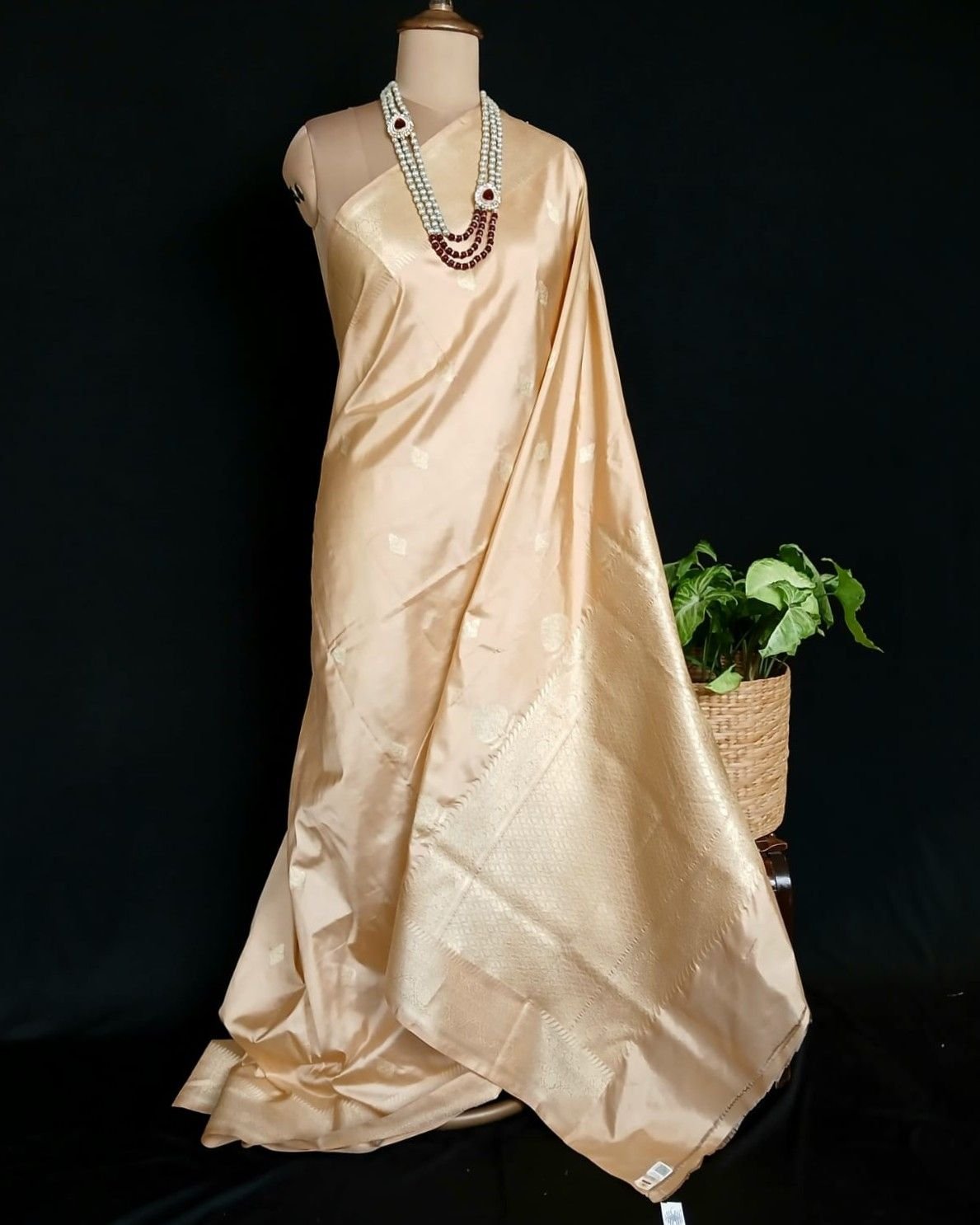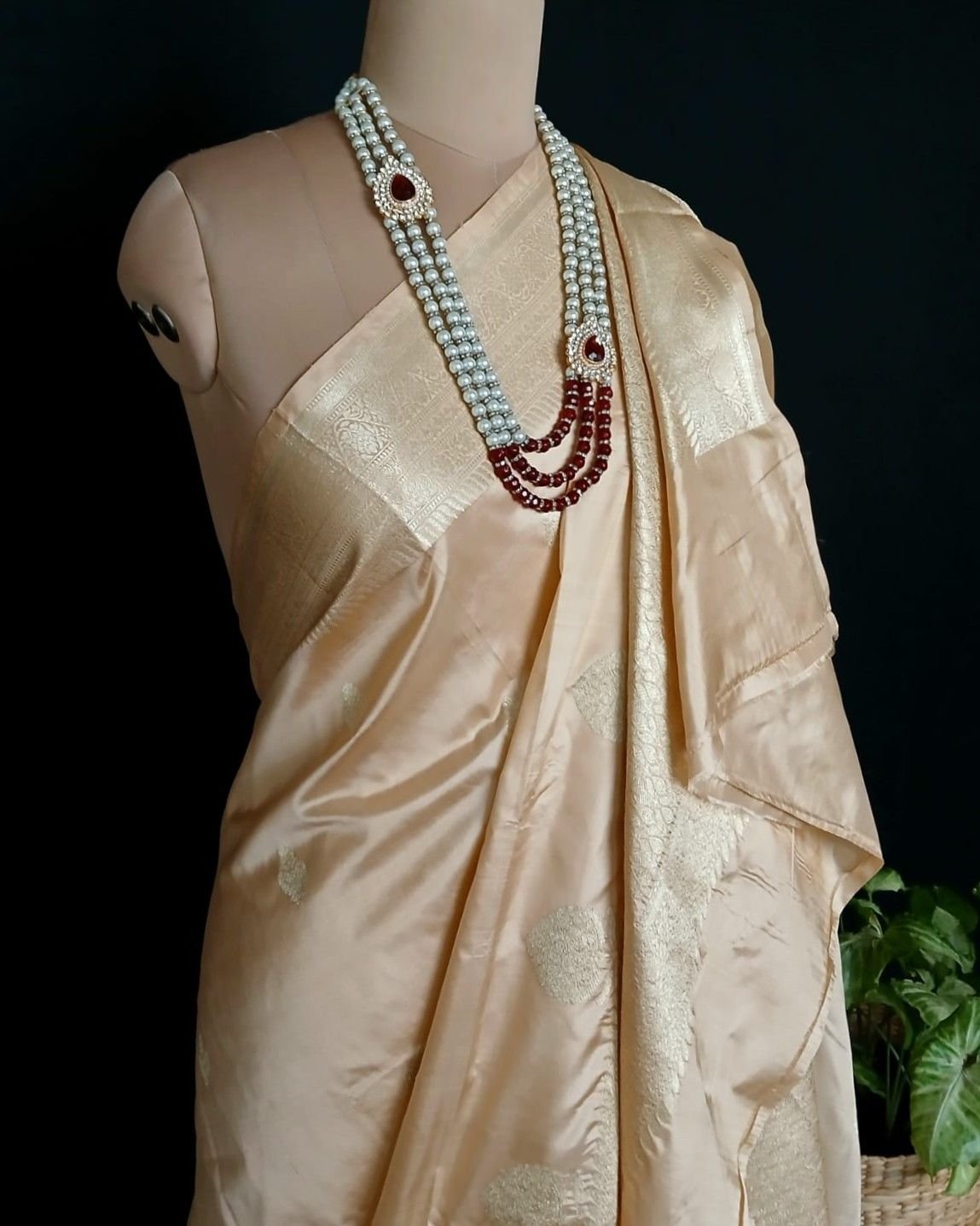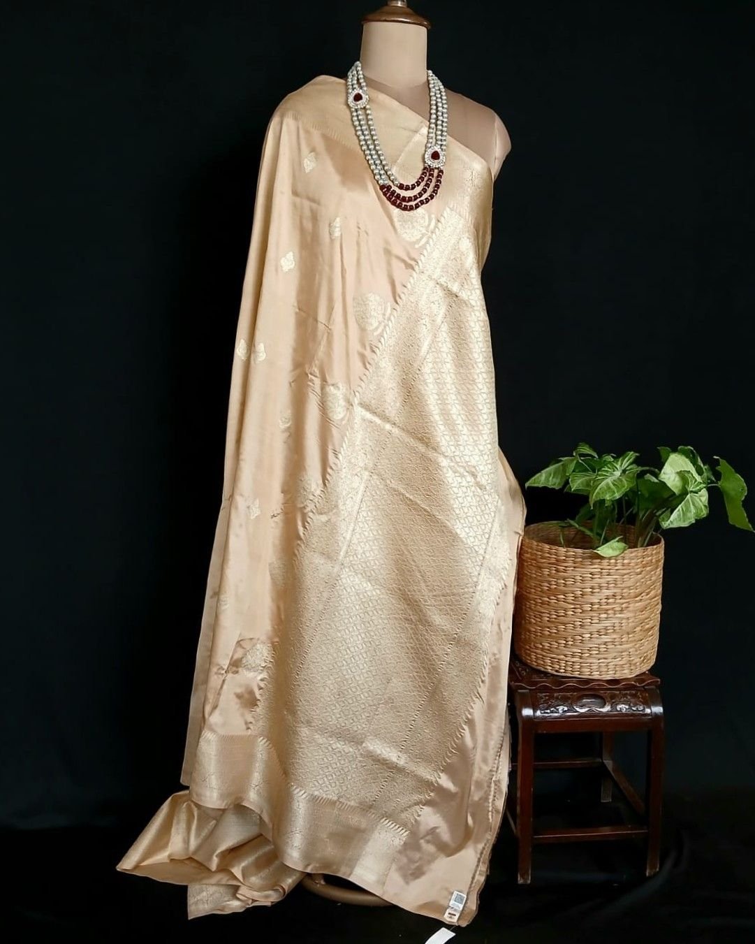 Banarasi pure silk (katan silk) saree with kadua buttis and laccha borders.