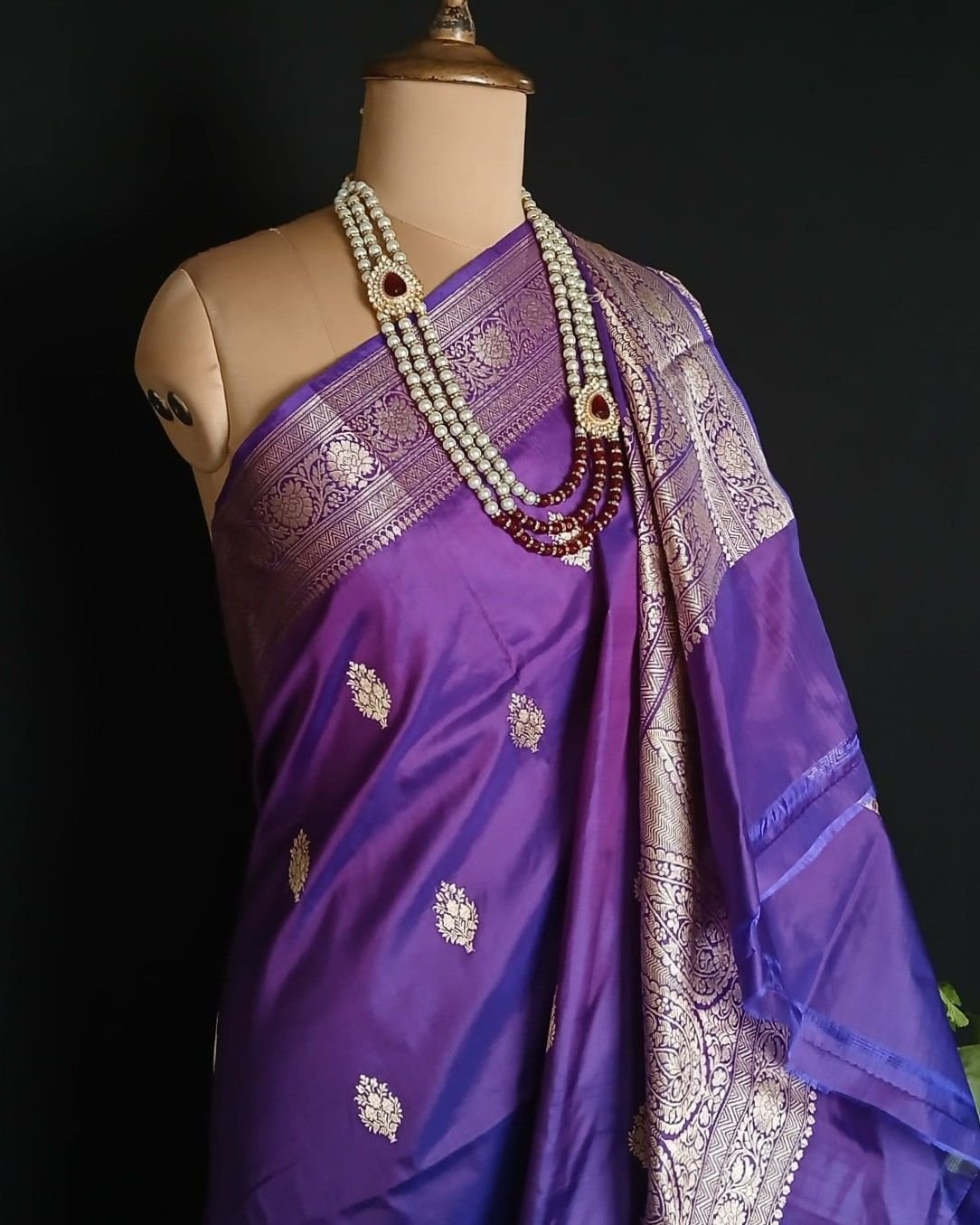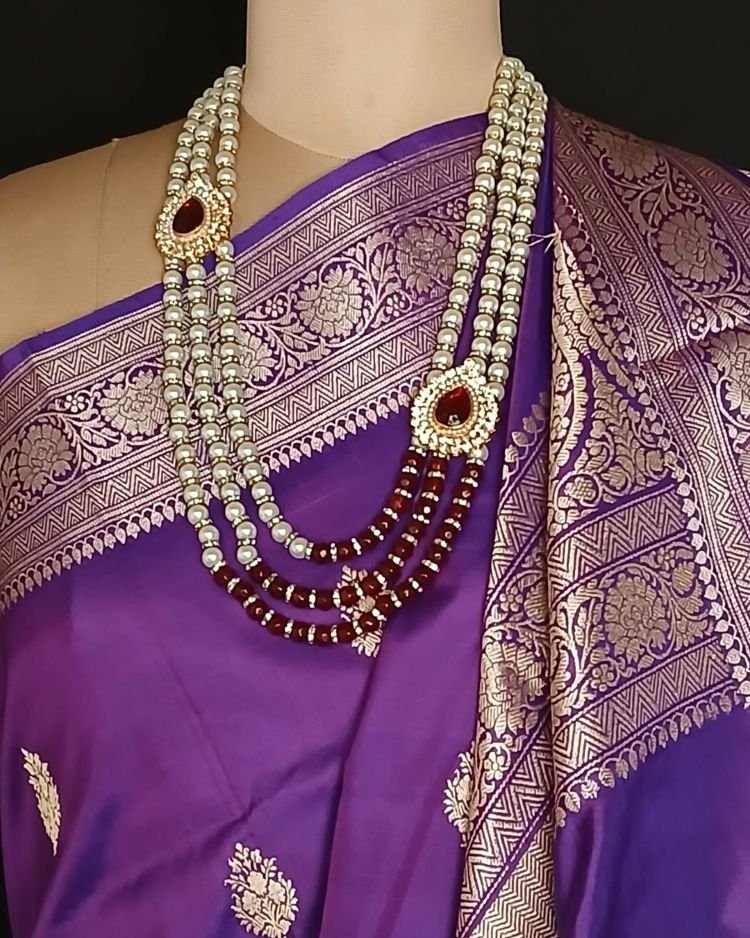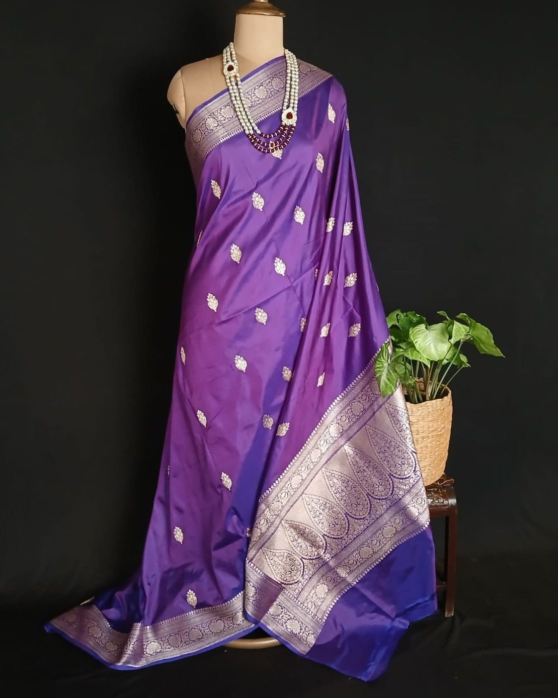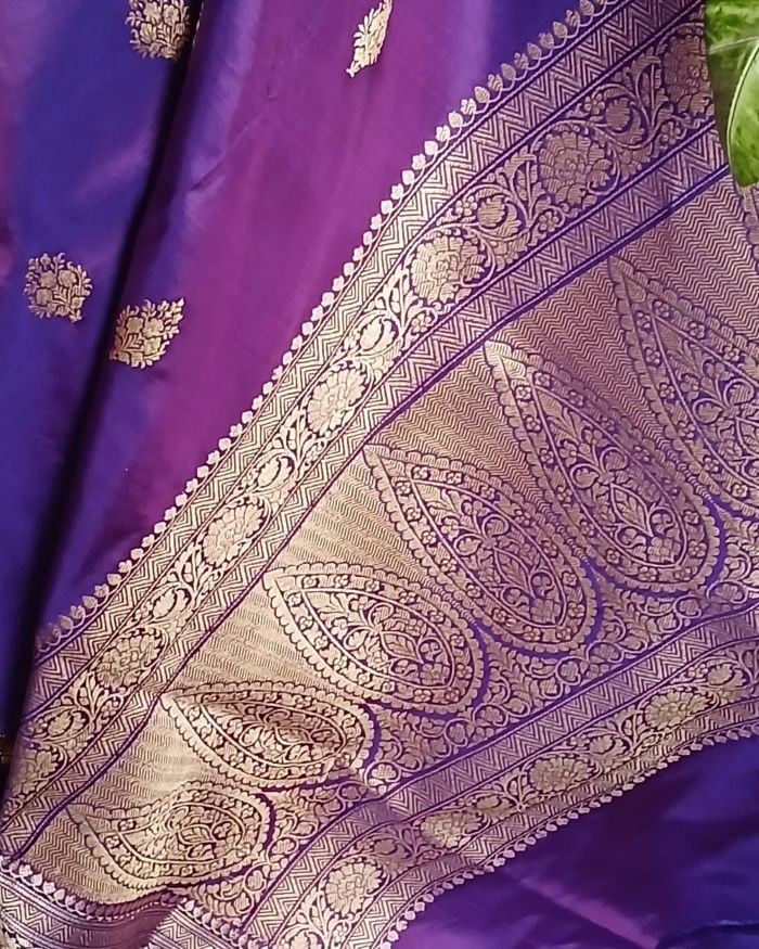 Banarasi pure silk (katan silk) saree with kadua buttis and laccha borders.