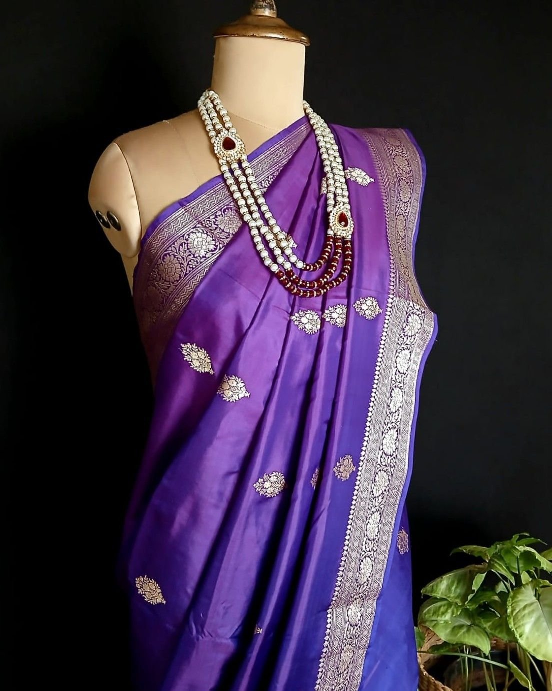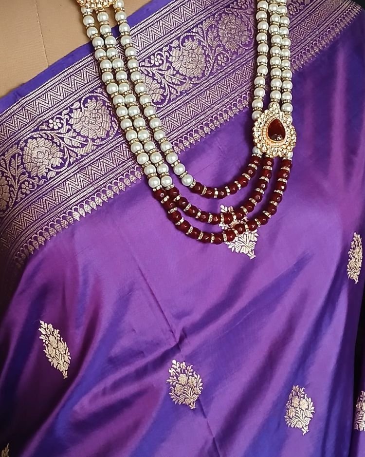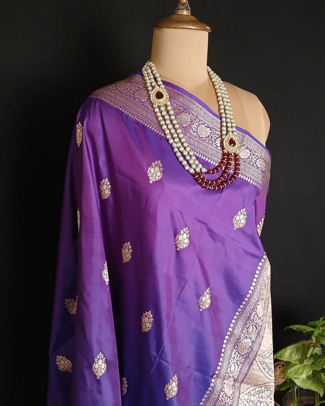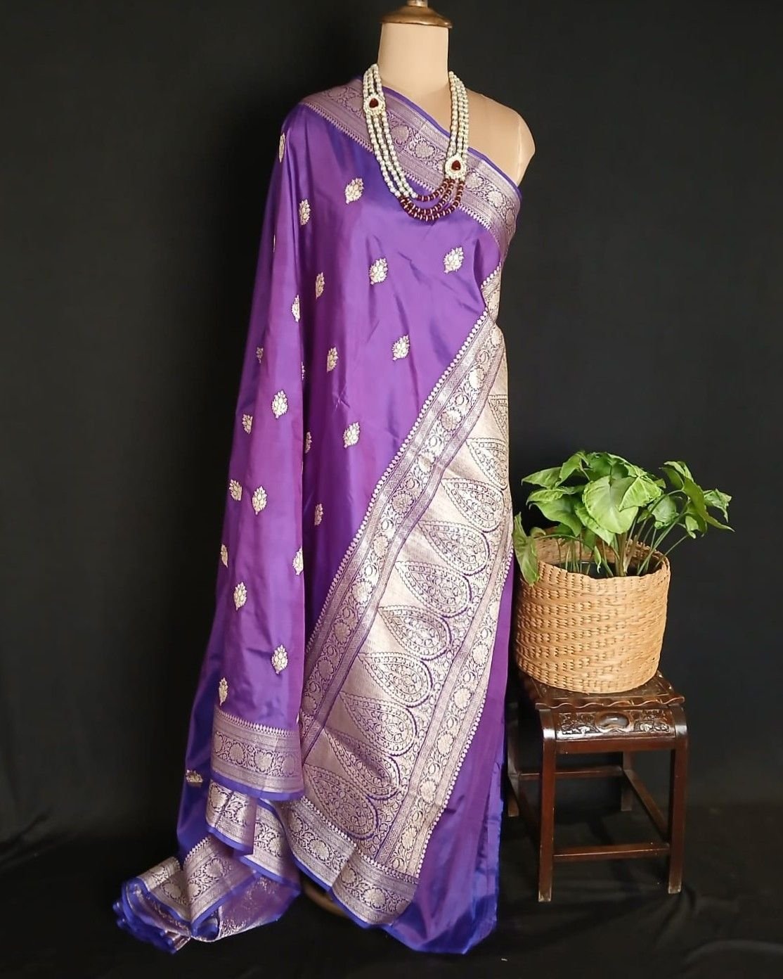 Banarasi pure silk (katan silk) saree with kadua buttis and laccha borders.