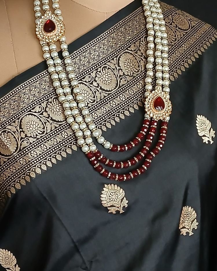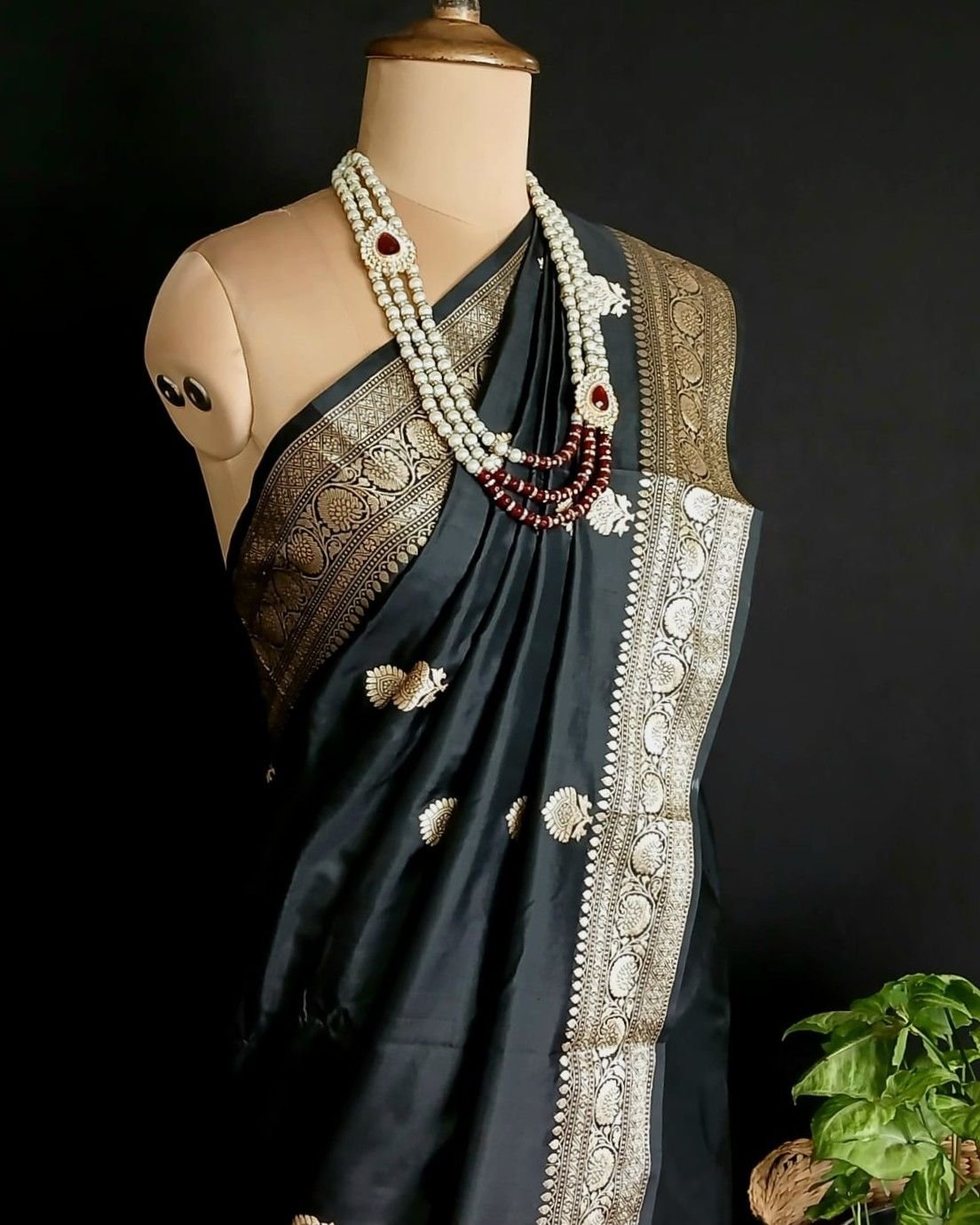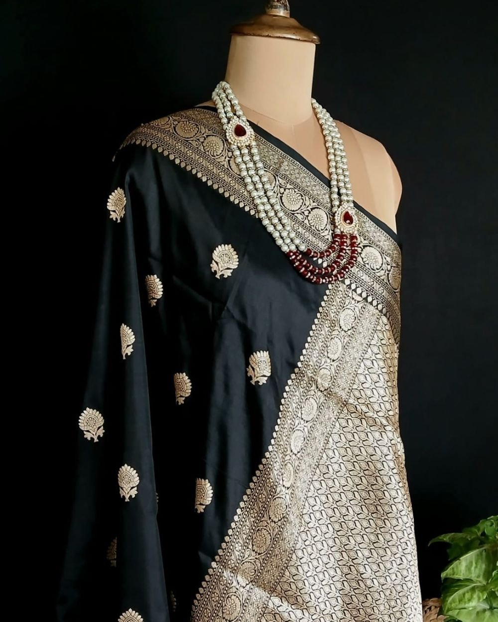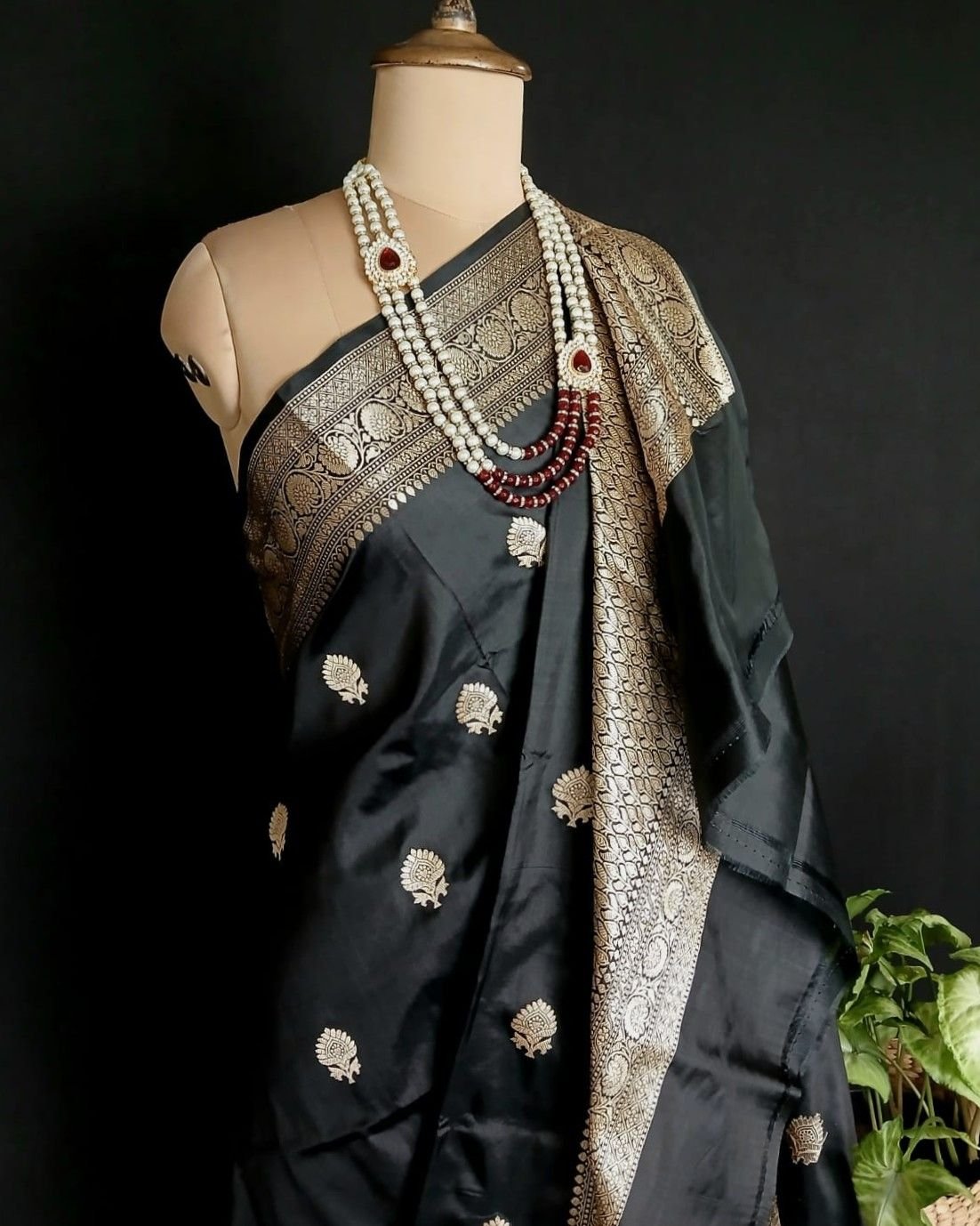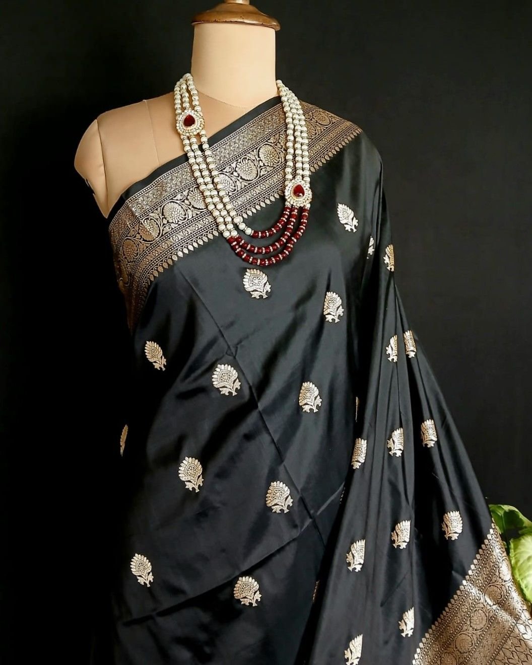 Banarasi pure silk (katan silk) saree with kadua buttis and laccha borders.
