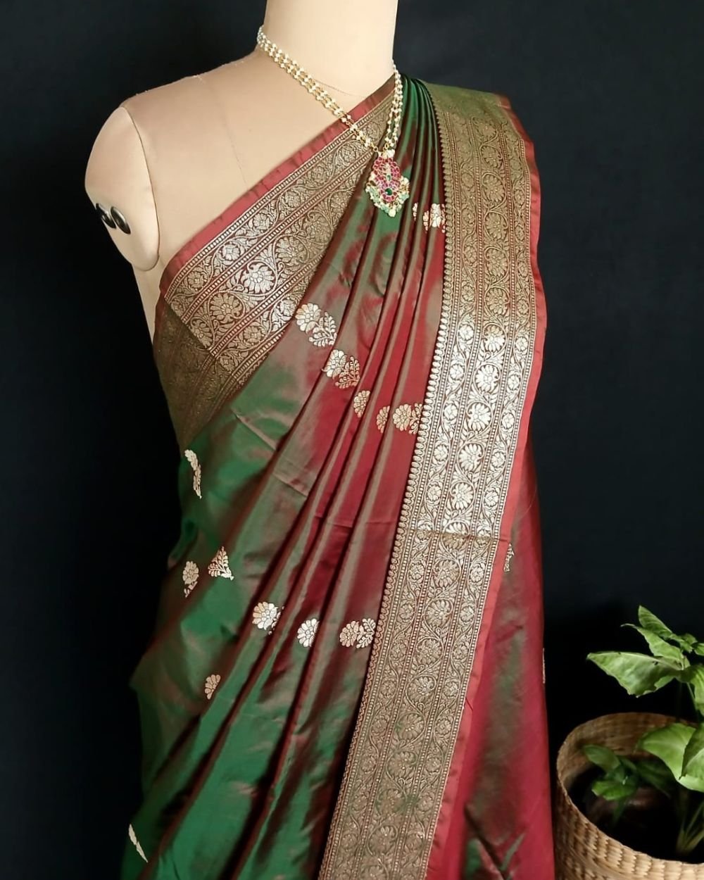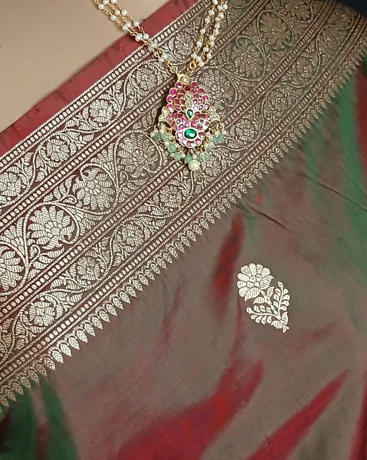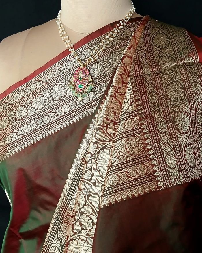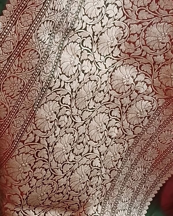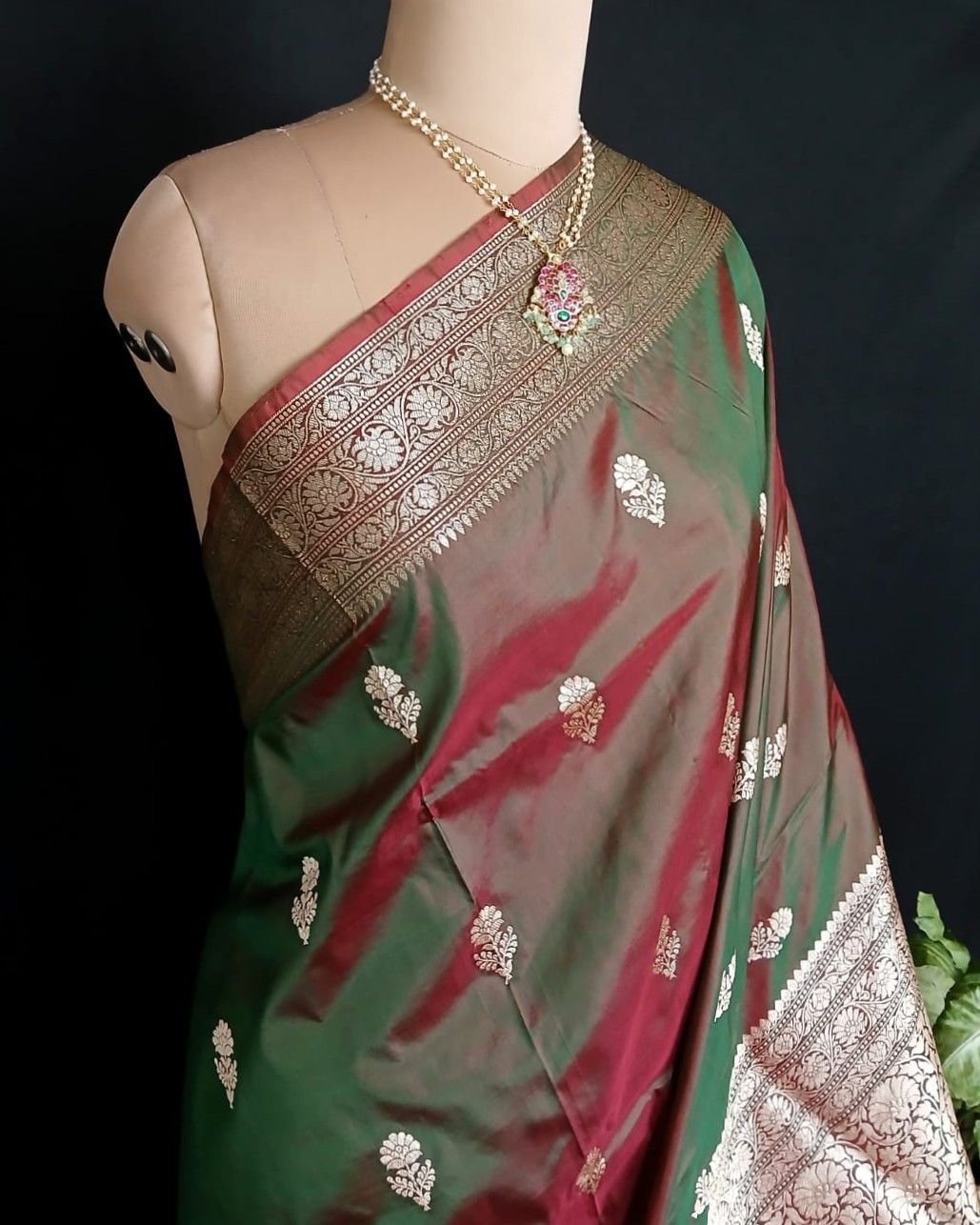 Banarasi pure silk (katan silk) saree with kadua buttis and laccha borders.