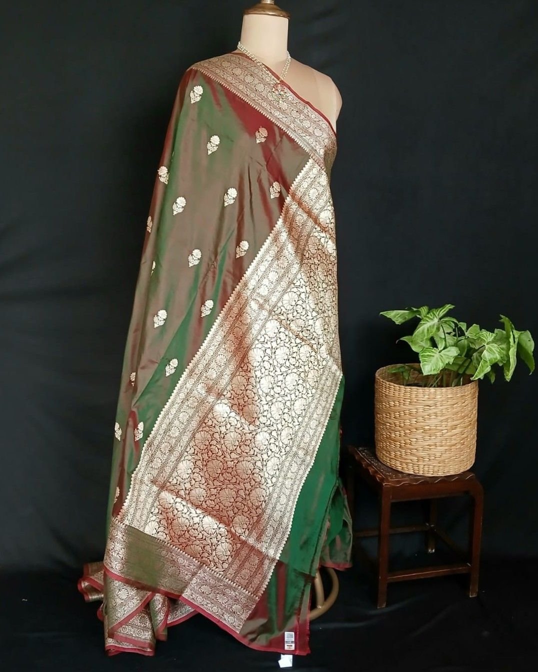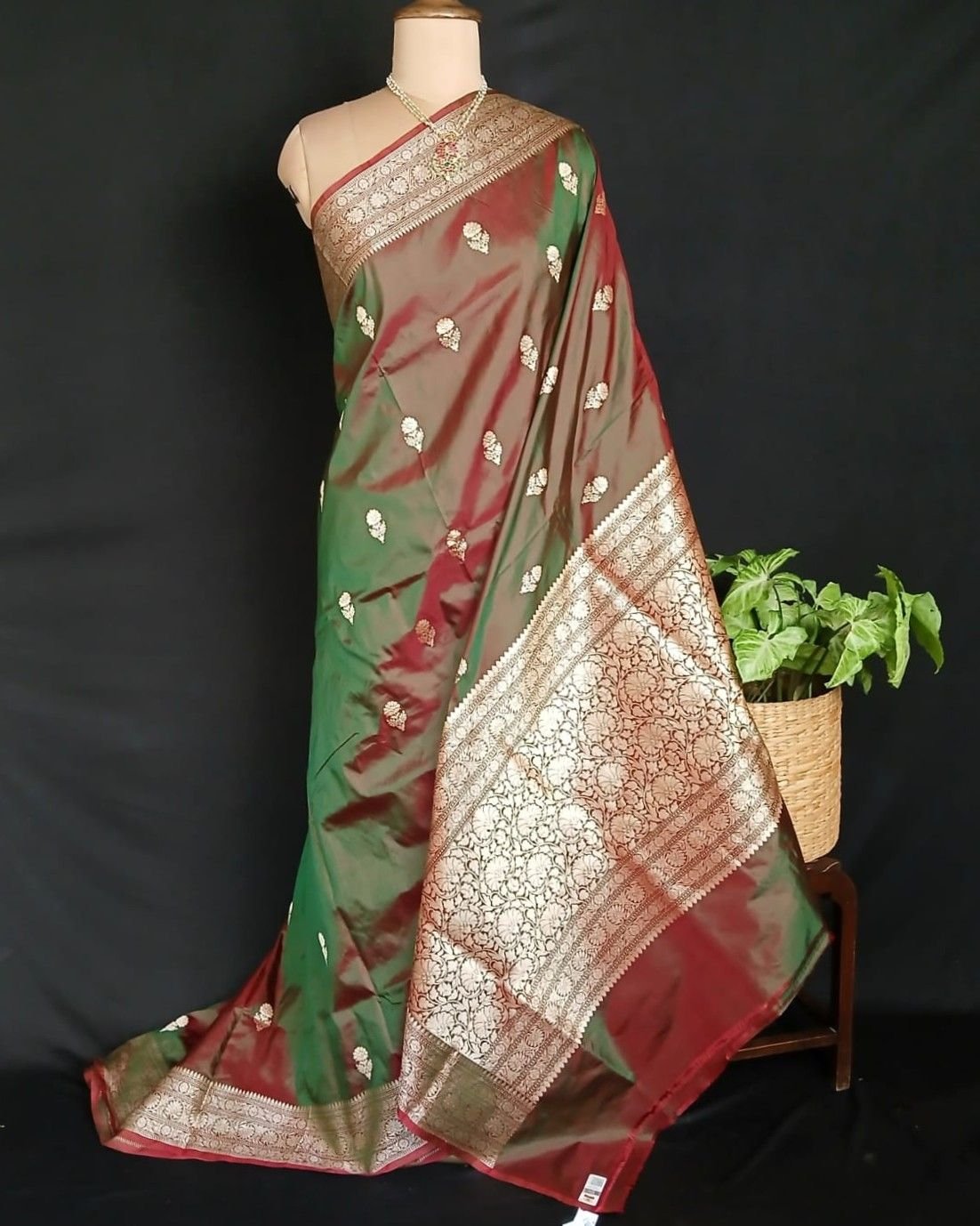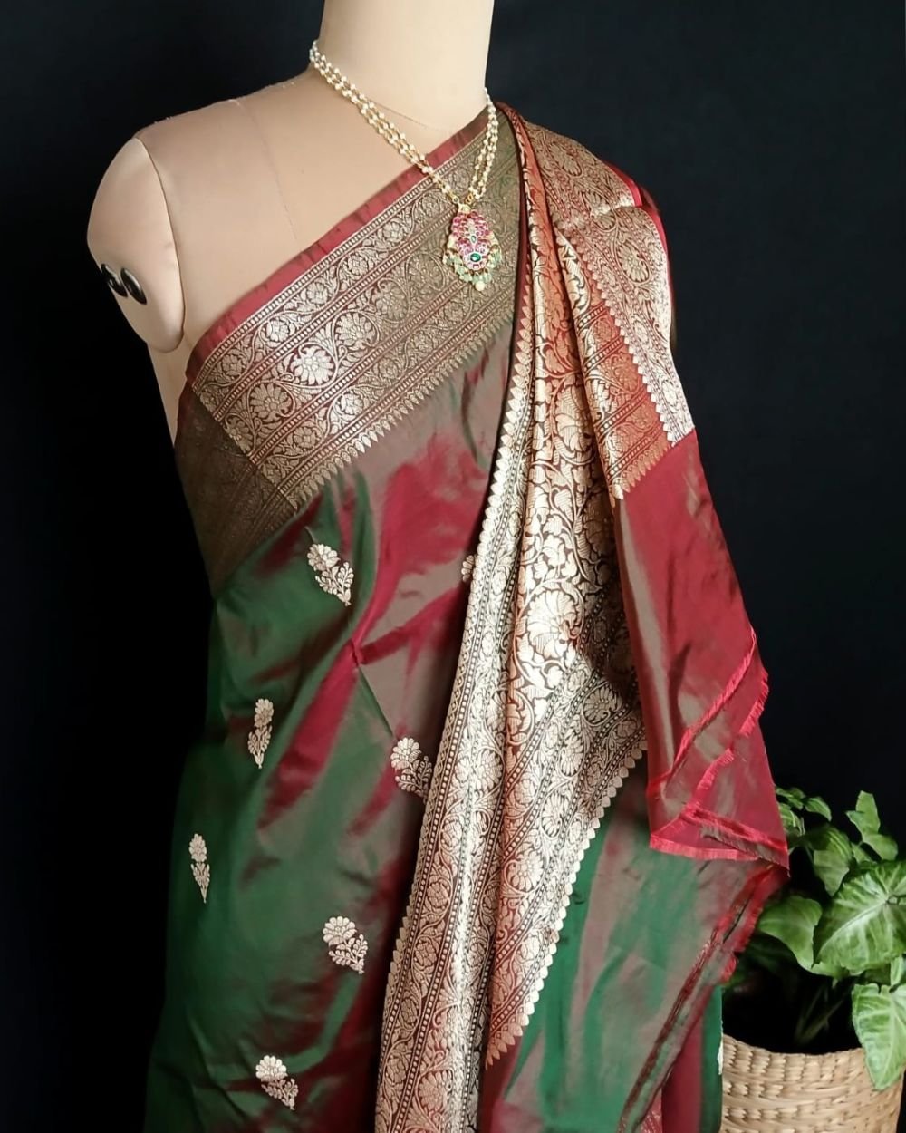 Banarasi pure silk (katan silk) saree with kadua buttis and laccha borders.