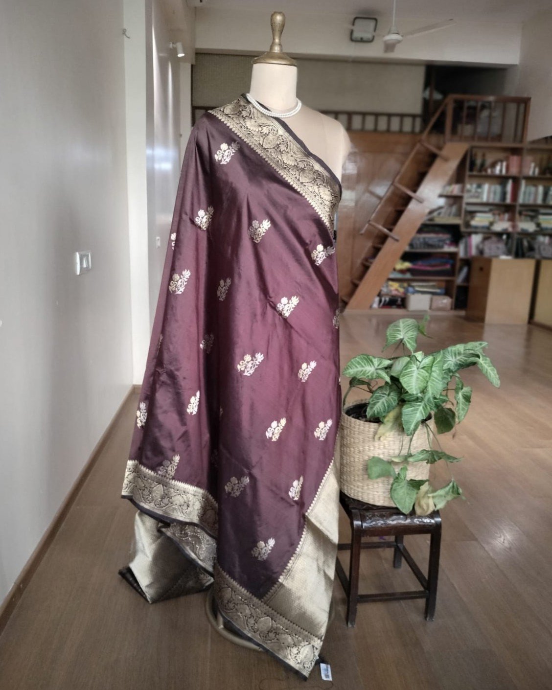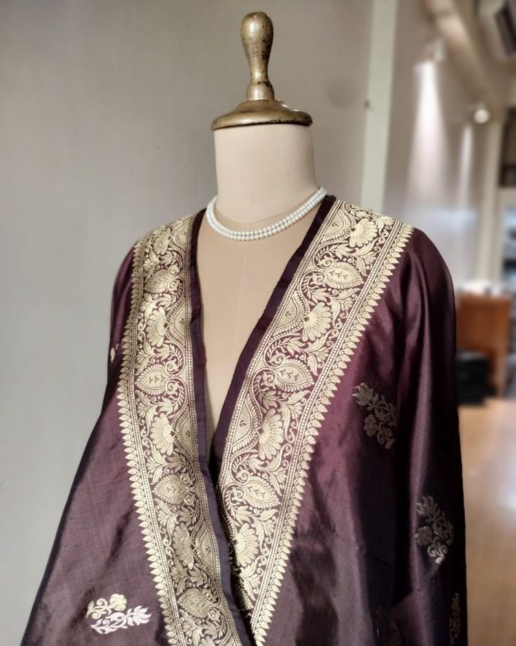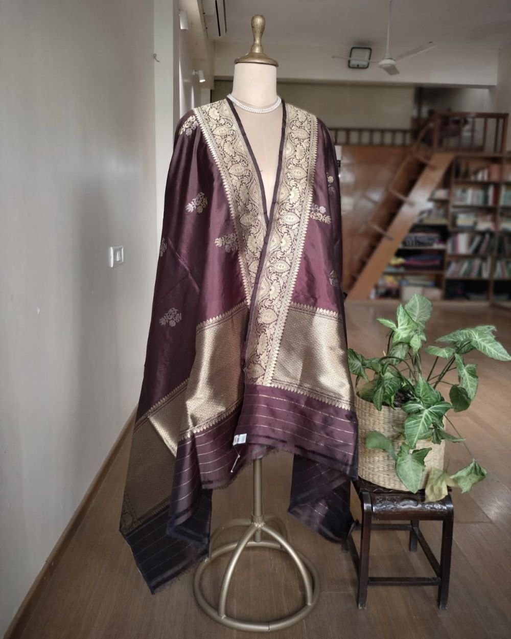 Banarasi Pure Katan Silk Dupatta. Skilled Kadua technique. Handwoven in Varanasi.