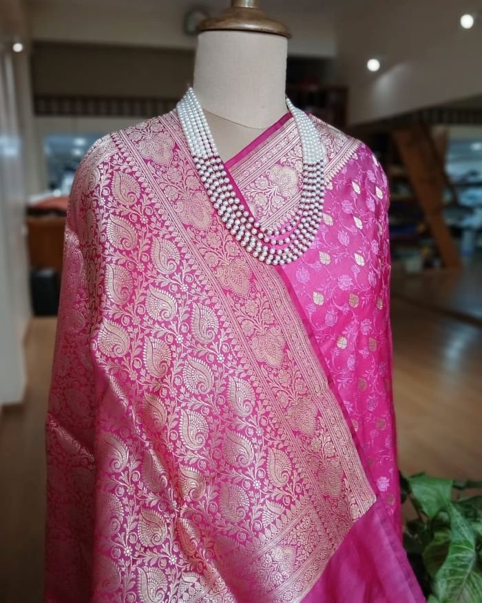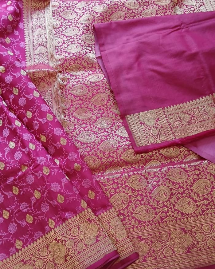 Banarasi Tanchoi saree with zari butti and stunning brocade palla.