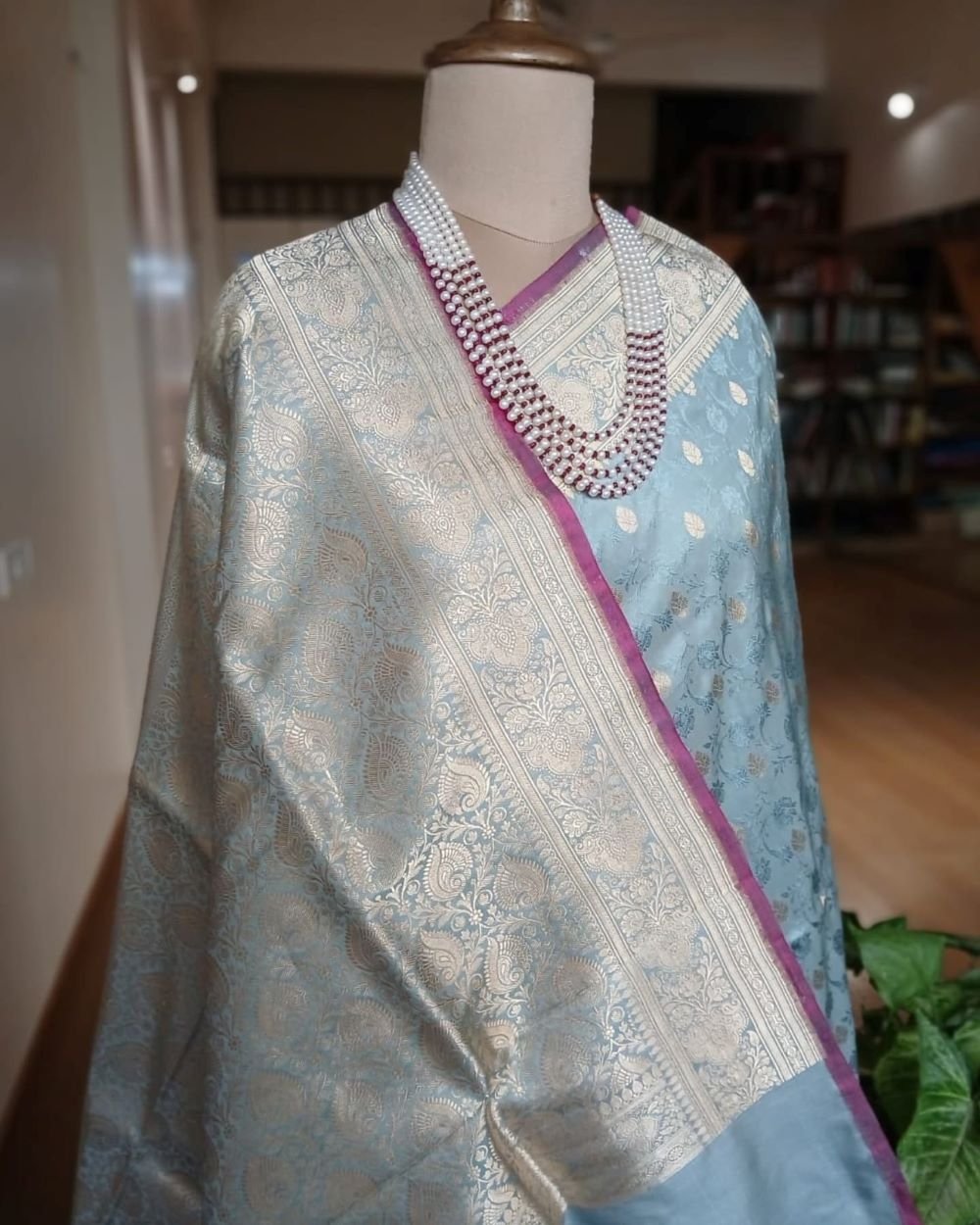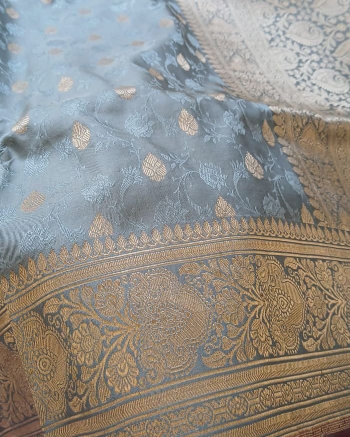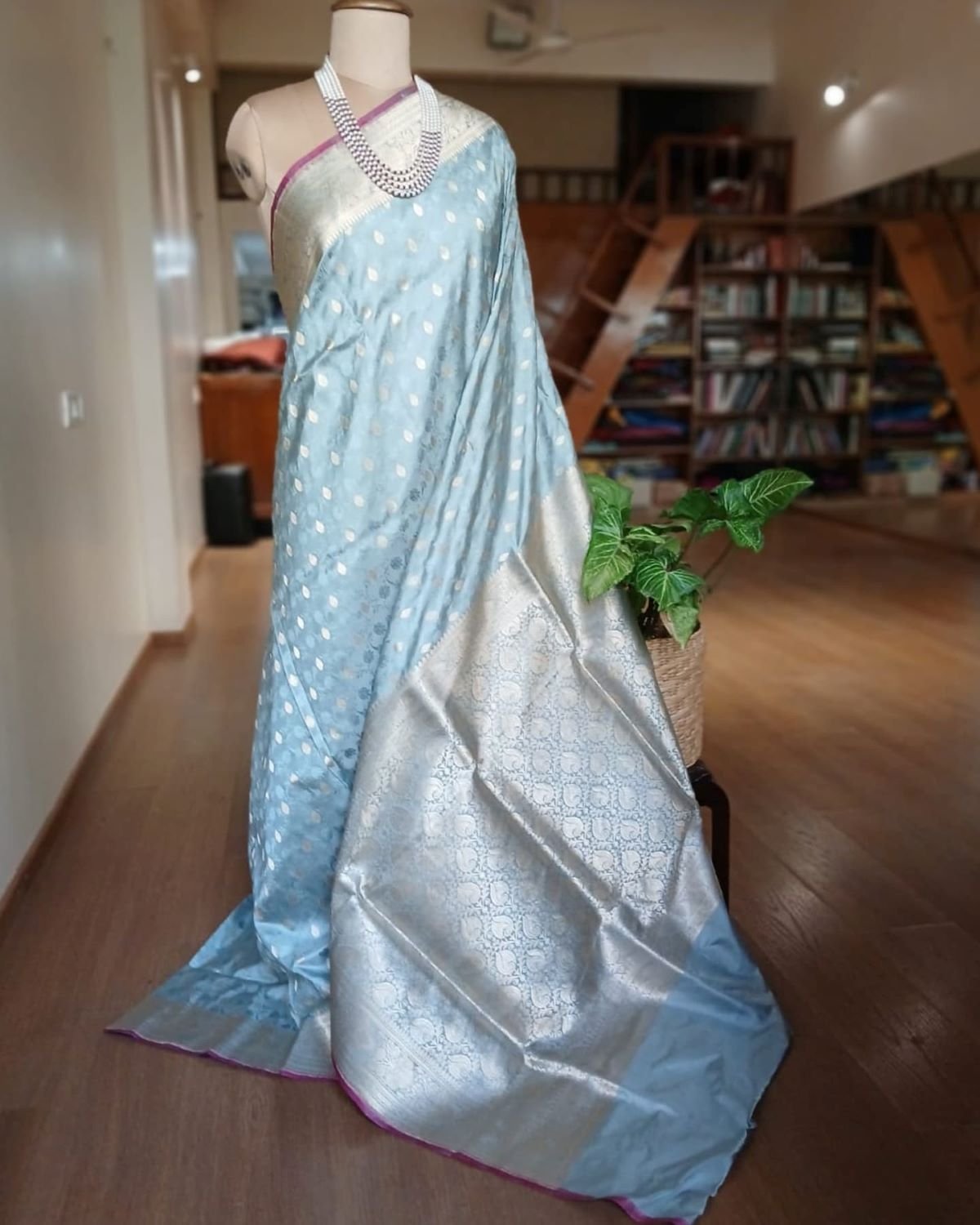 Banarasi Tanchoi saree with zari butti and stunning brocade palla.