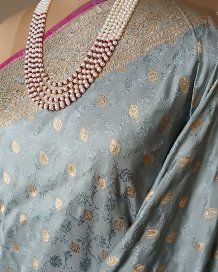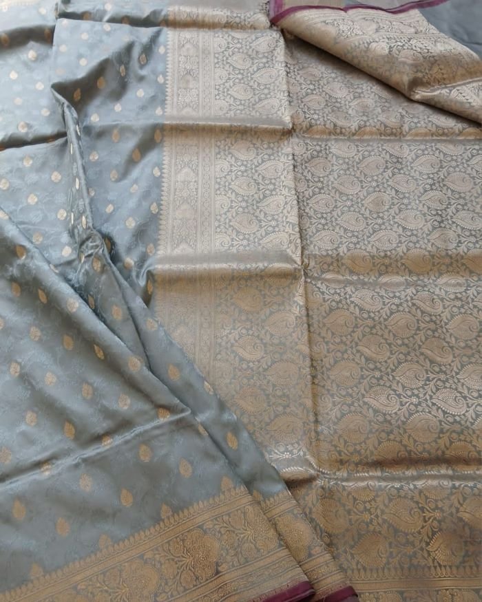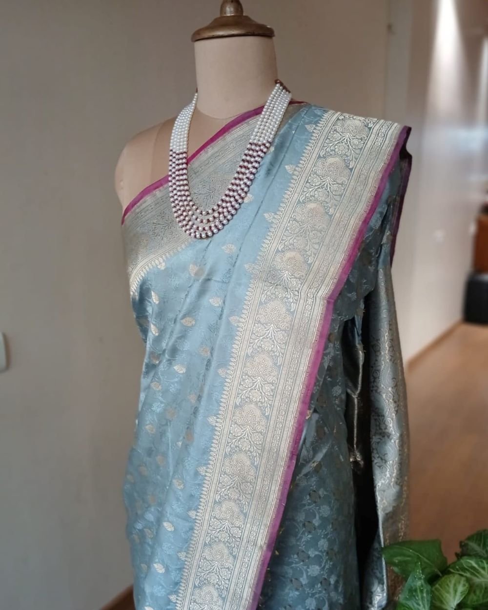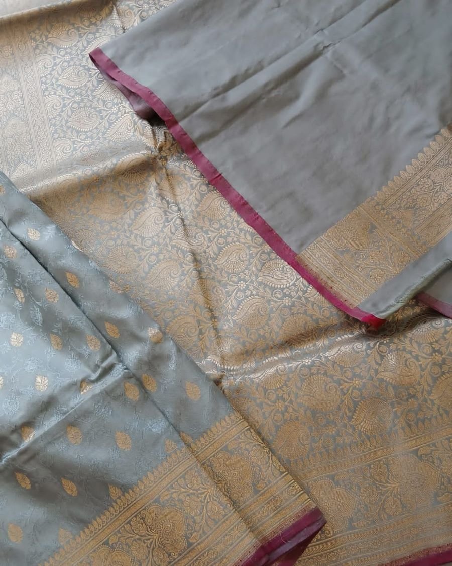 Banarasi Tanchoi saree with zari butti and stunning brocade palla.