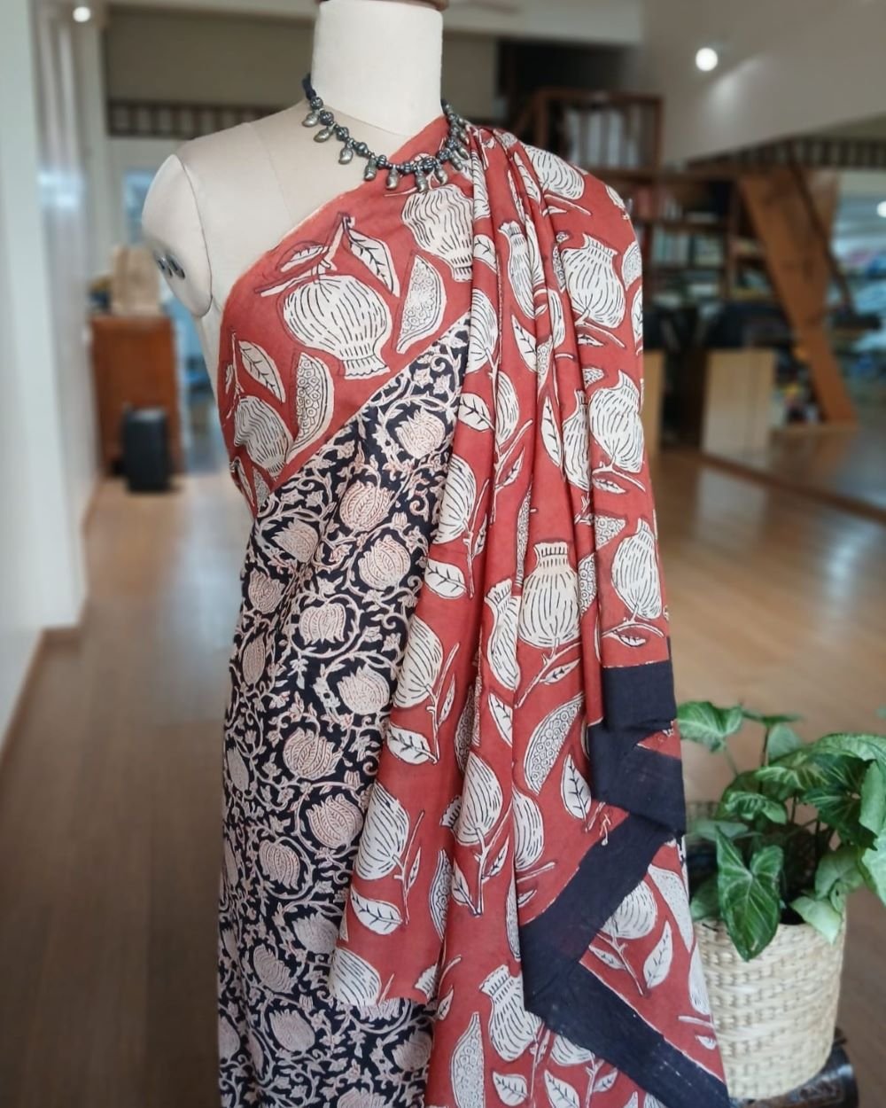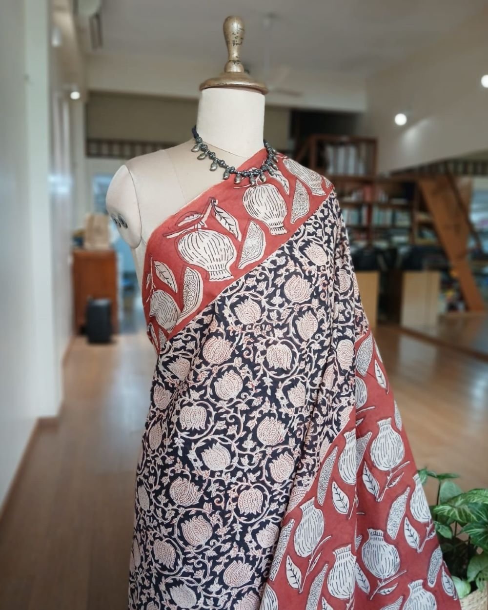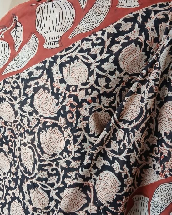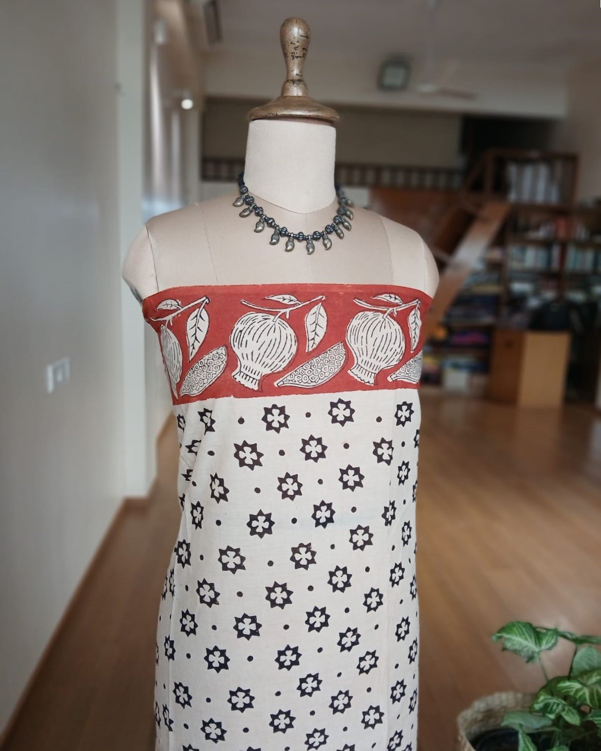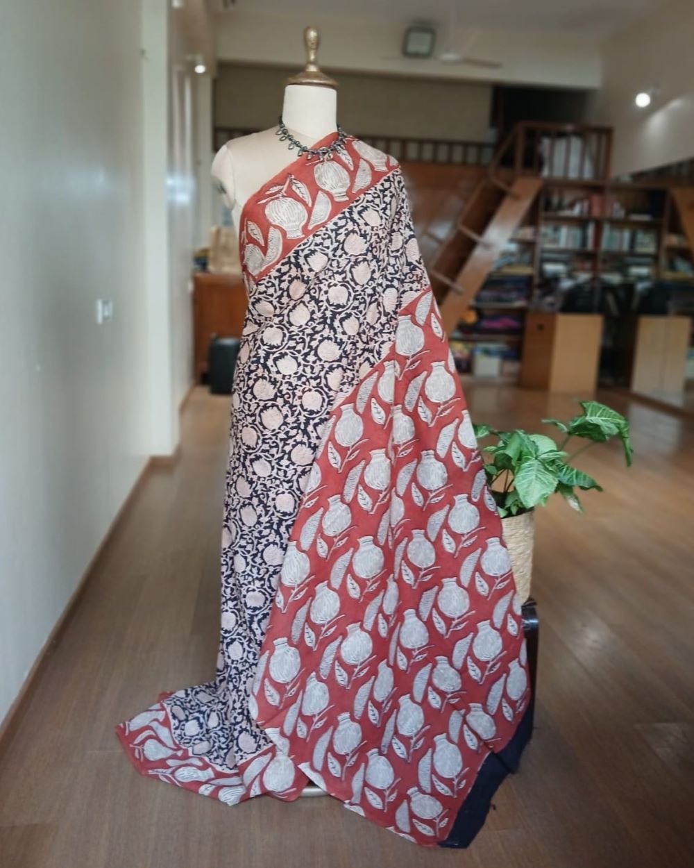 Hand blockprint mul cotton saree in Banjara print from Ahmedabad.