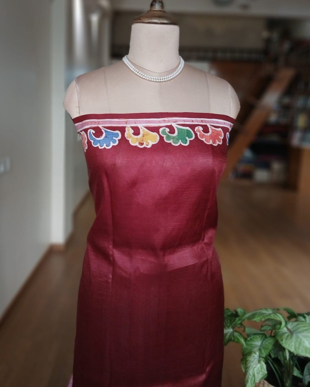 Elaborate Alpona Motif Batik in Pure Mulberry silk from Serampore on the Hooghly.