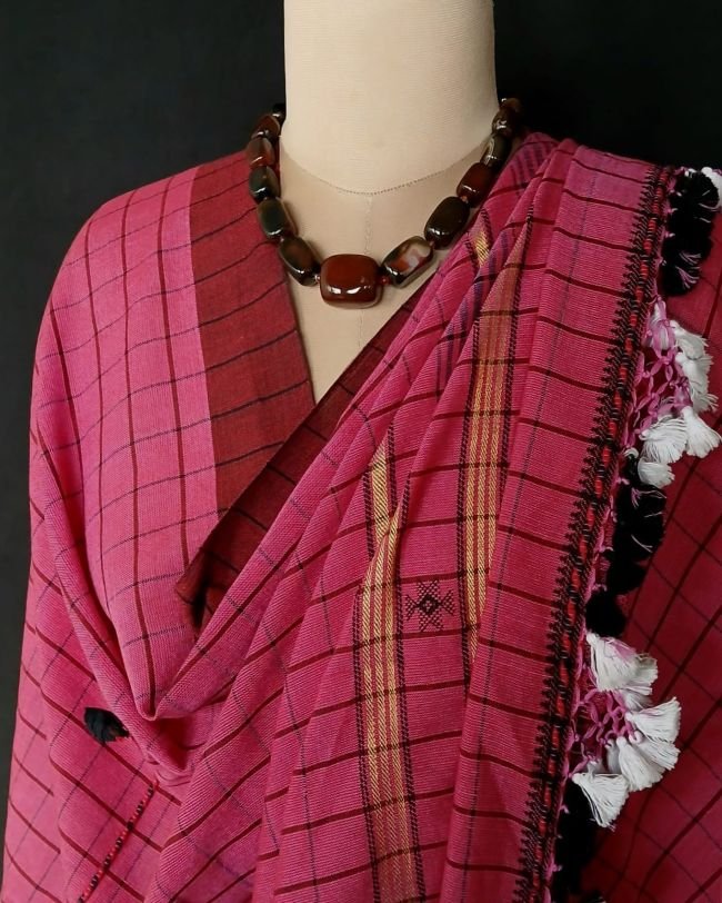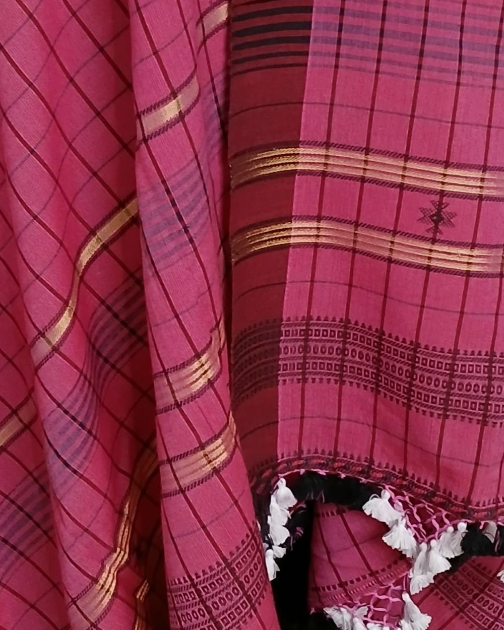 Cotton Dupatta, handwoven in Bhujodi, finished with tassels. Size 2m.30cm × 39 inches. Rs 2950 including taxes and delivery India. Overseas courier extra.