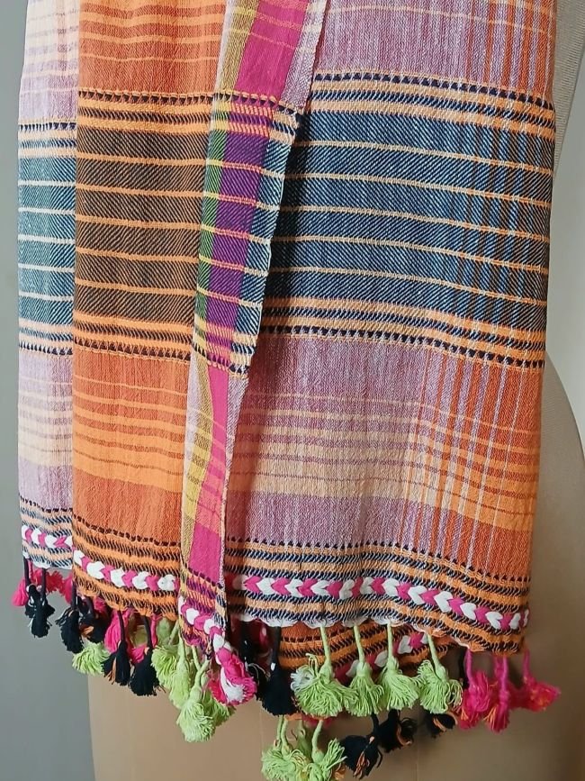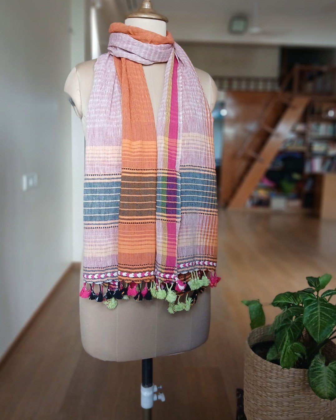 Bhujodi Cotton Stole, handwoven and finished with tassels.