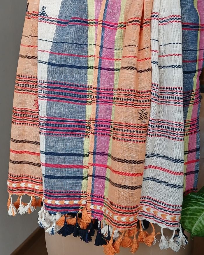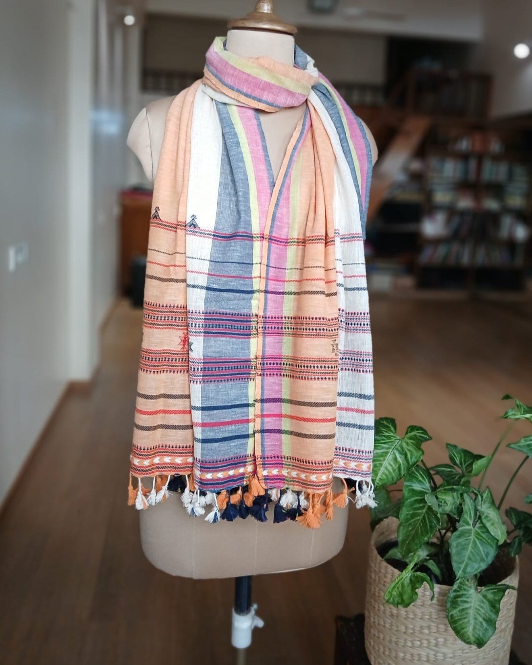 Bhujodi Cotton Stole, handwoven and finished with tassels.