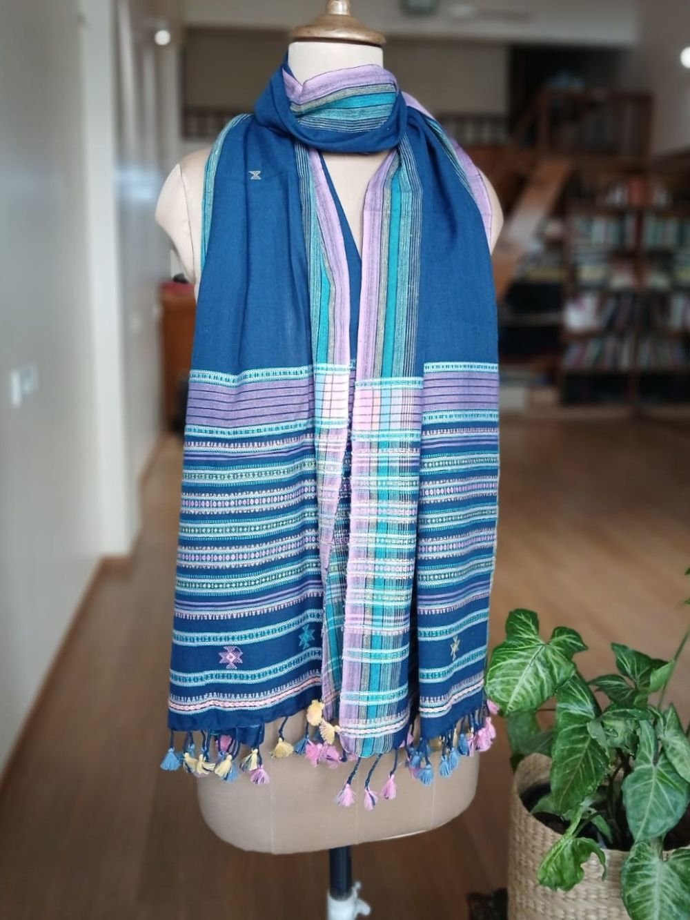 Bhujodi Cotton Stole, handwoven and finished with tassels.