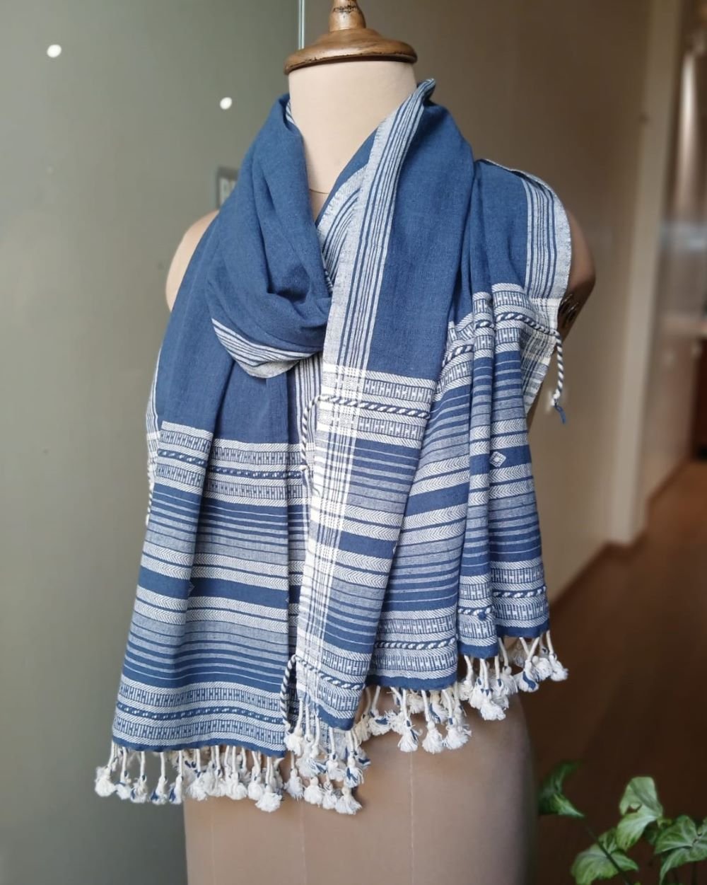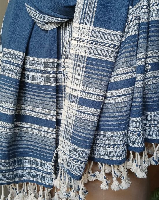 Bhujodi Cotton Stole, handwoven and finished with tassels.