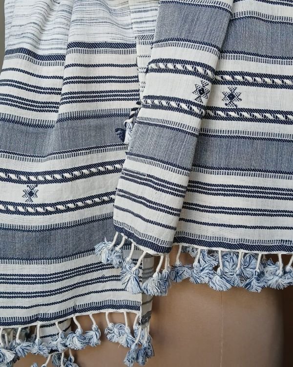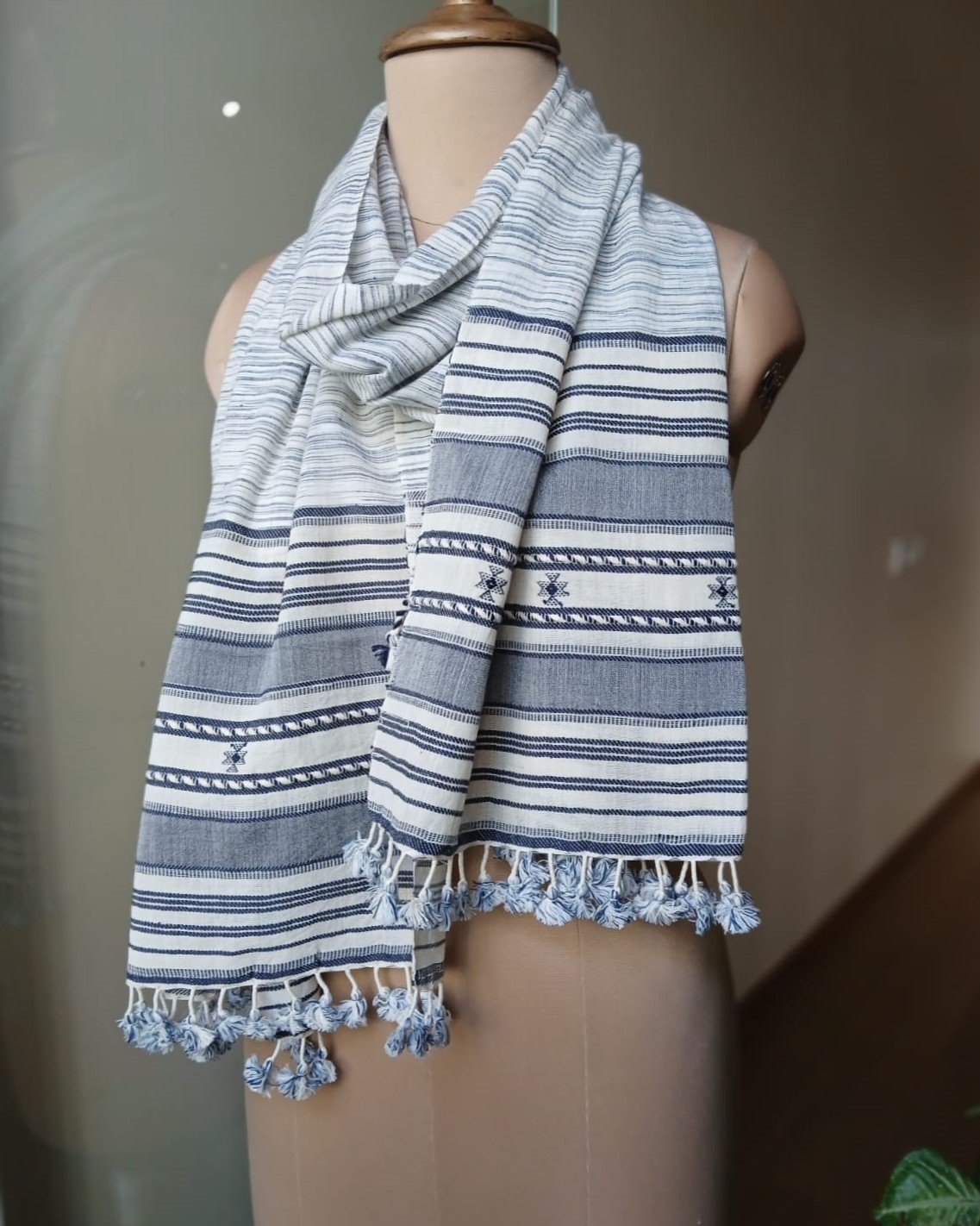 Bhujodi Cotton Stole, handwoven and finished with tassels.