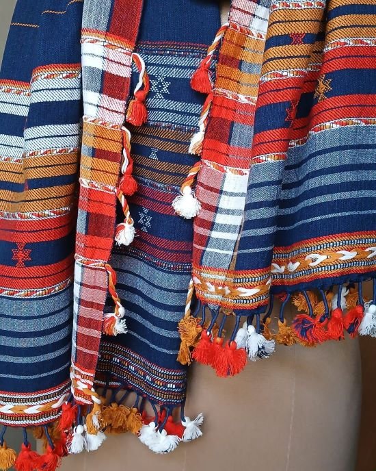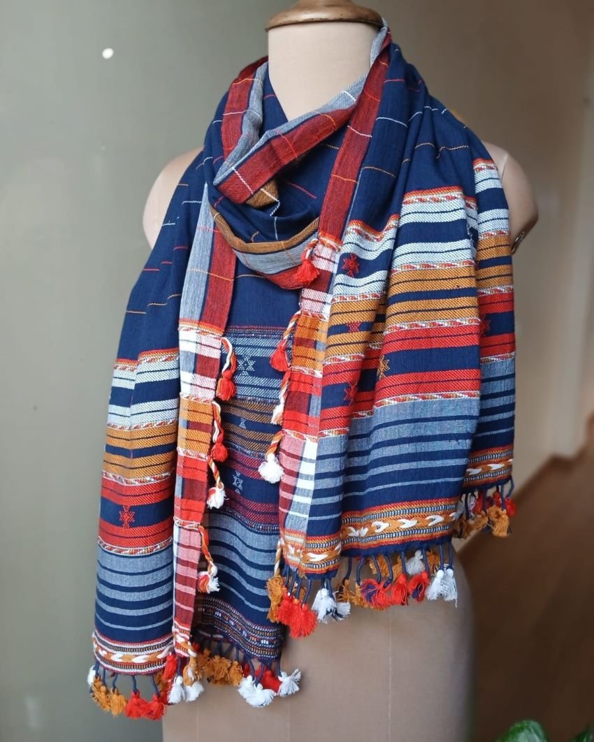 Bhujodi Cotton Stole, handwoven and finished with tassels.