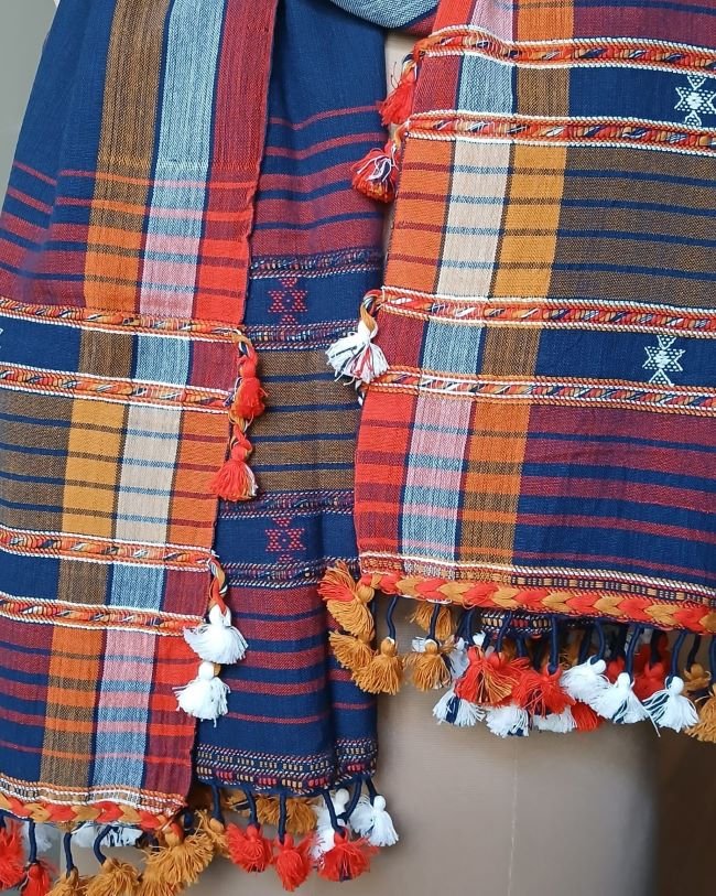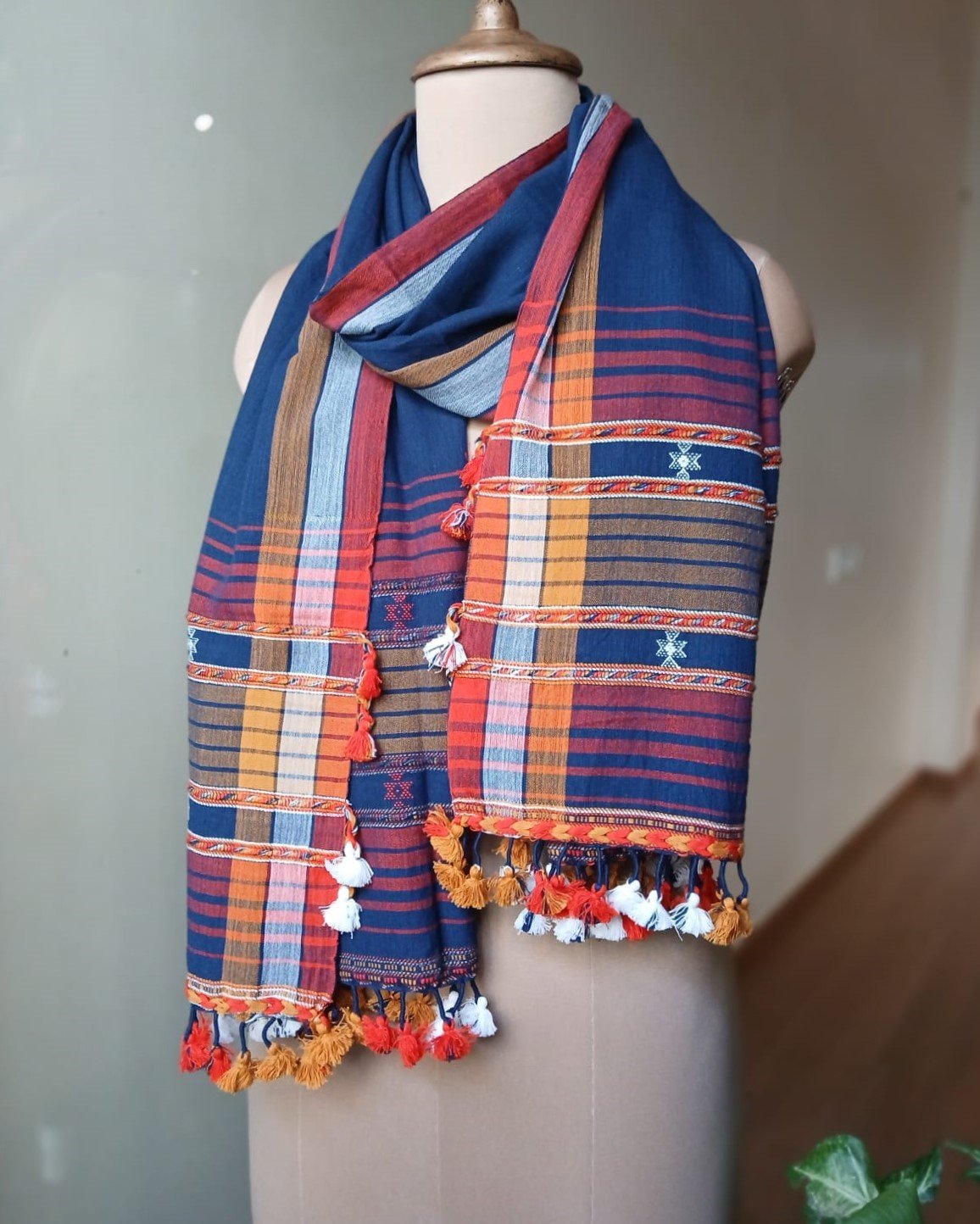 Bhujodi Cotton Stole, handwoven and finished with tassels.