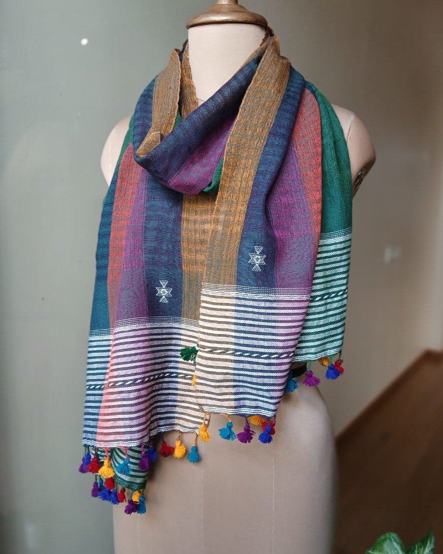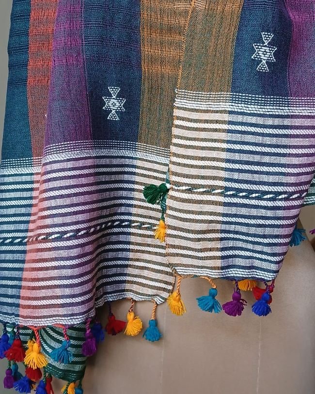 Bhujodi Cotton Stole, handwoven and finished with tassels.