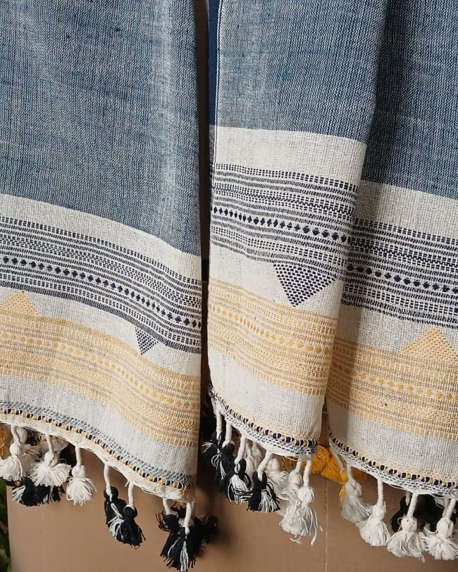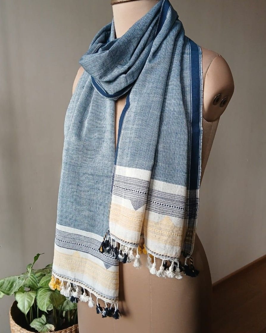 Bhujodi Cotton Stole, handwoven and finished with tassels.
