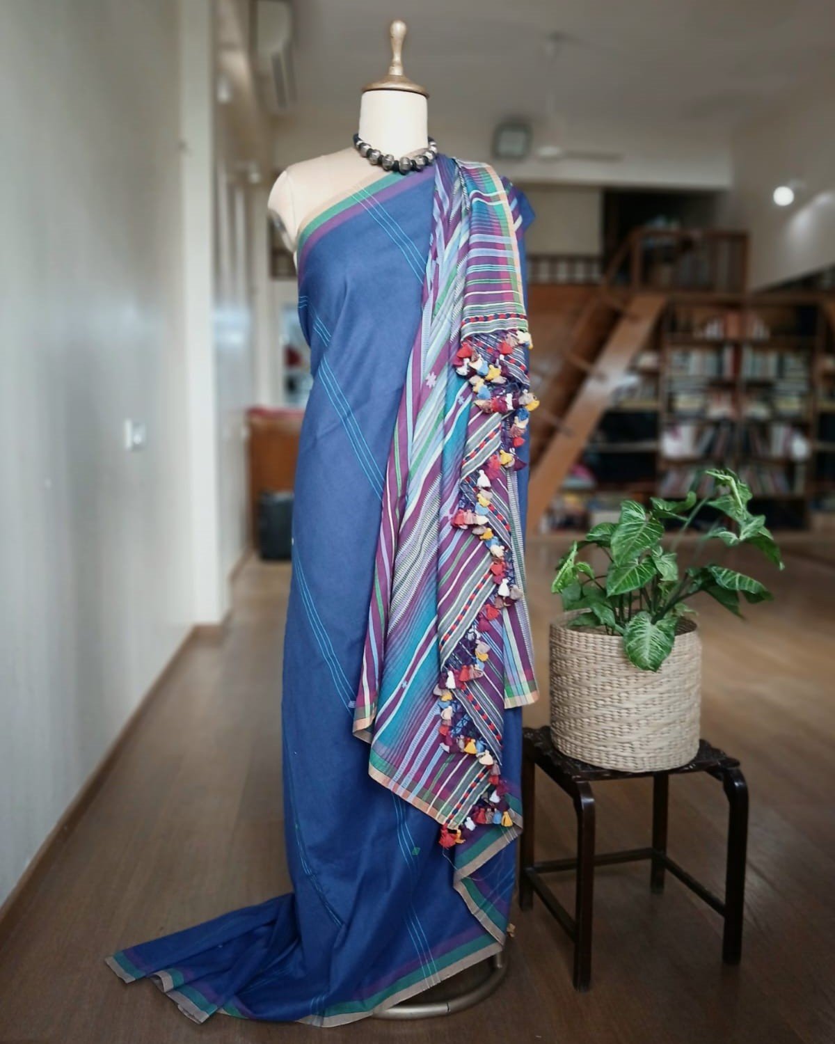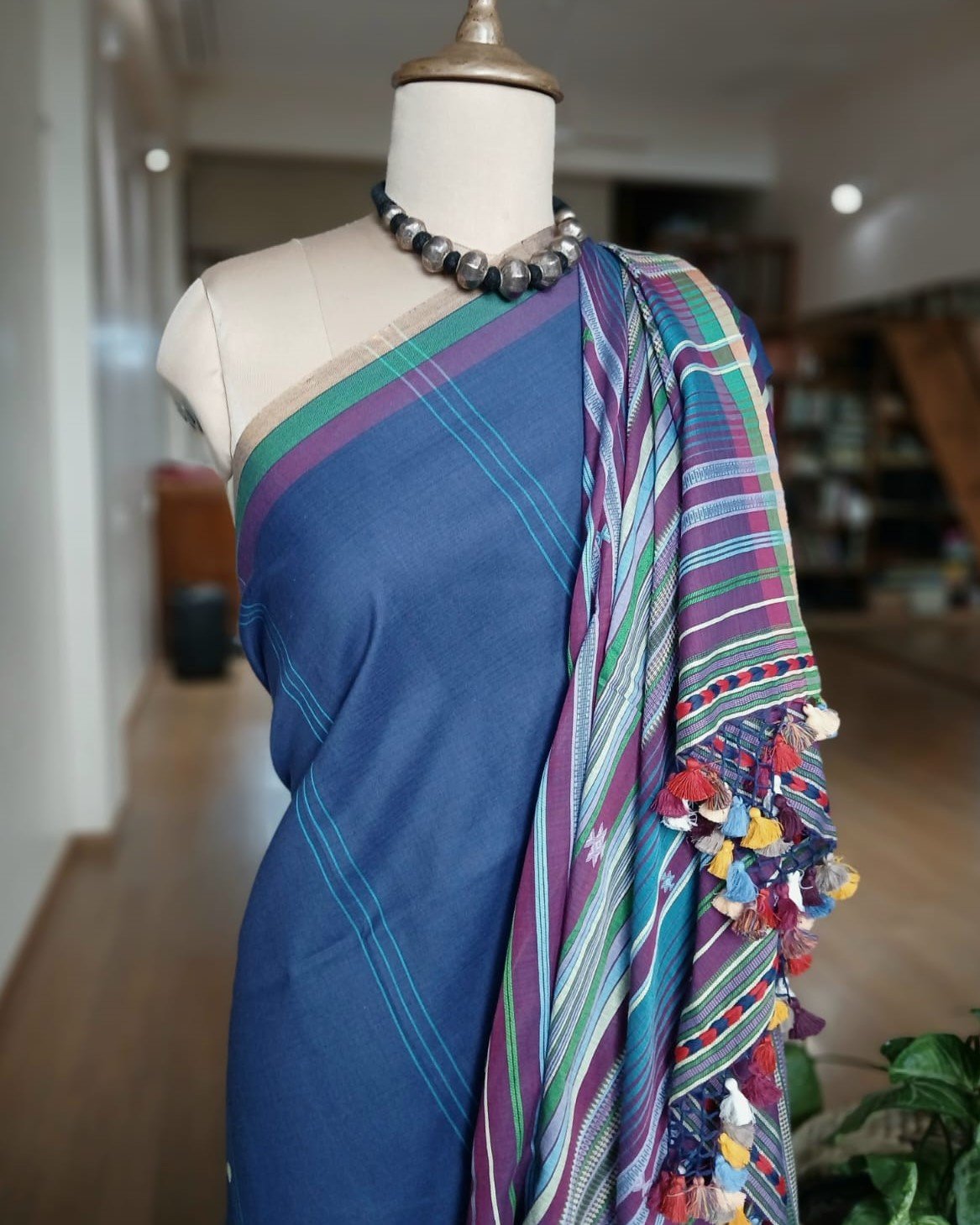 Bhujodi Saree handwoven in Kala Cotton from Kutch in Gujarat.