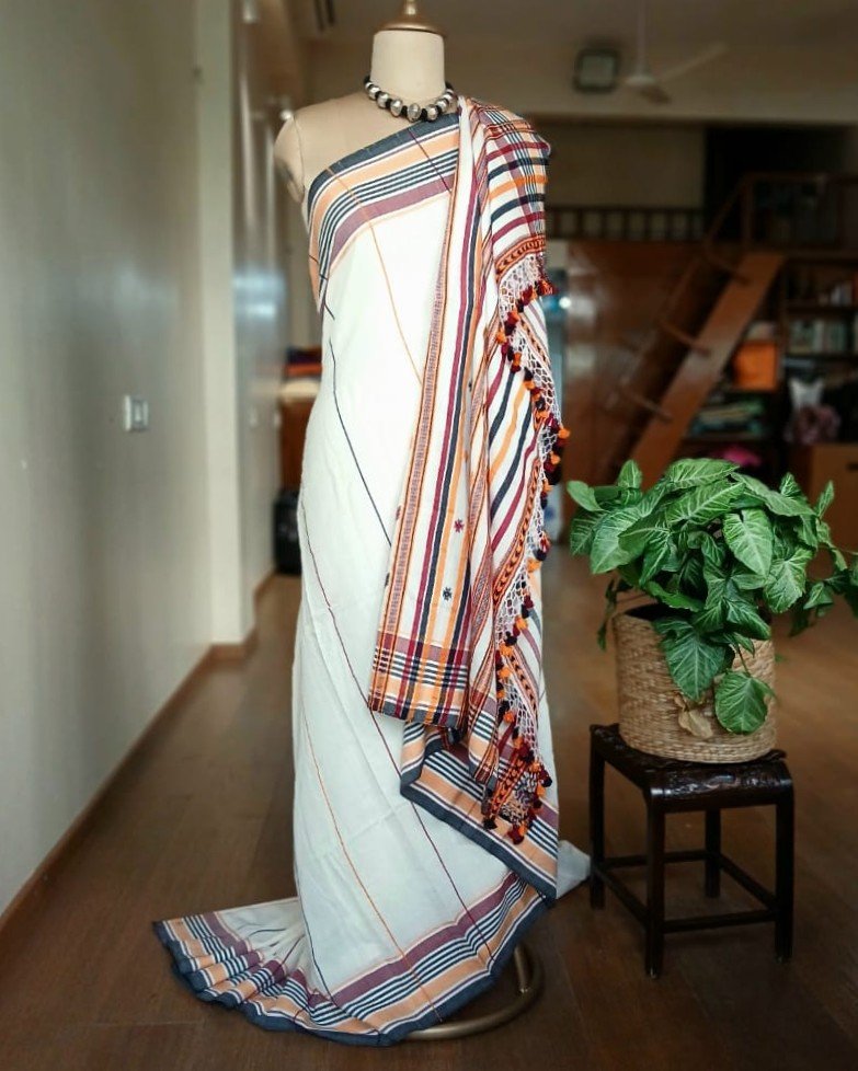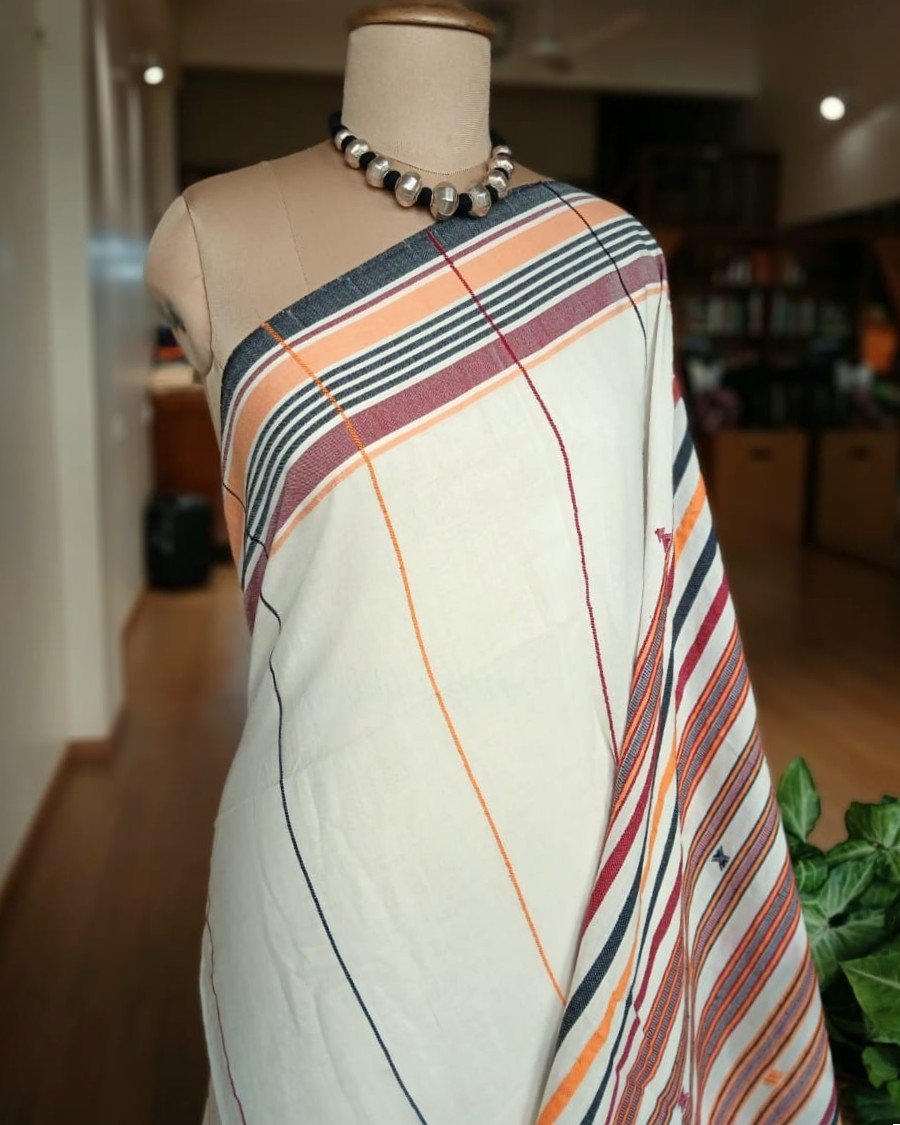 Bhujodi Saree handwoven in Kala Cotton from Kutch in Gujarat.