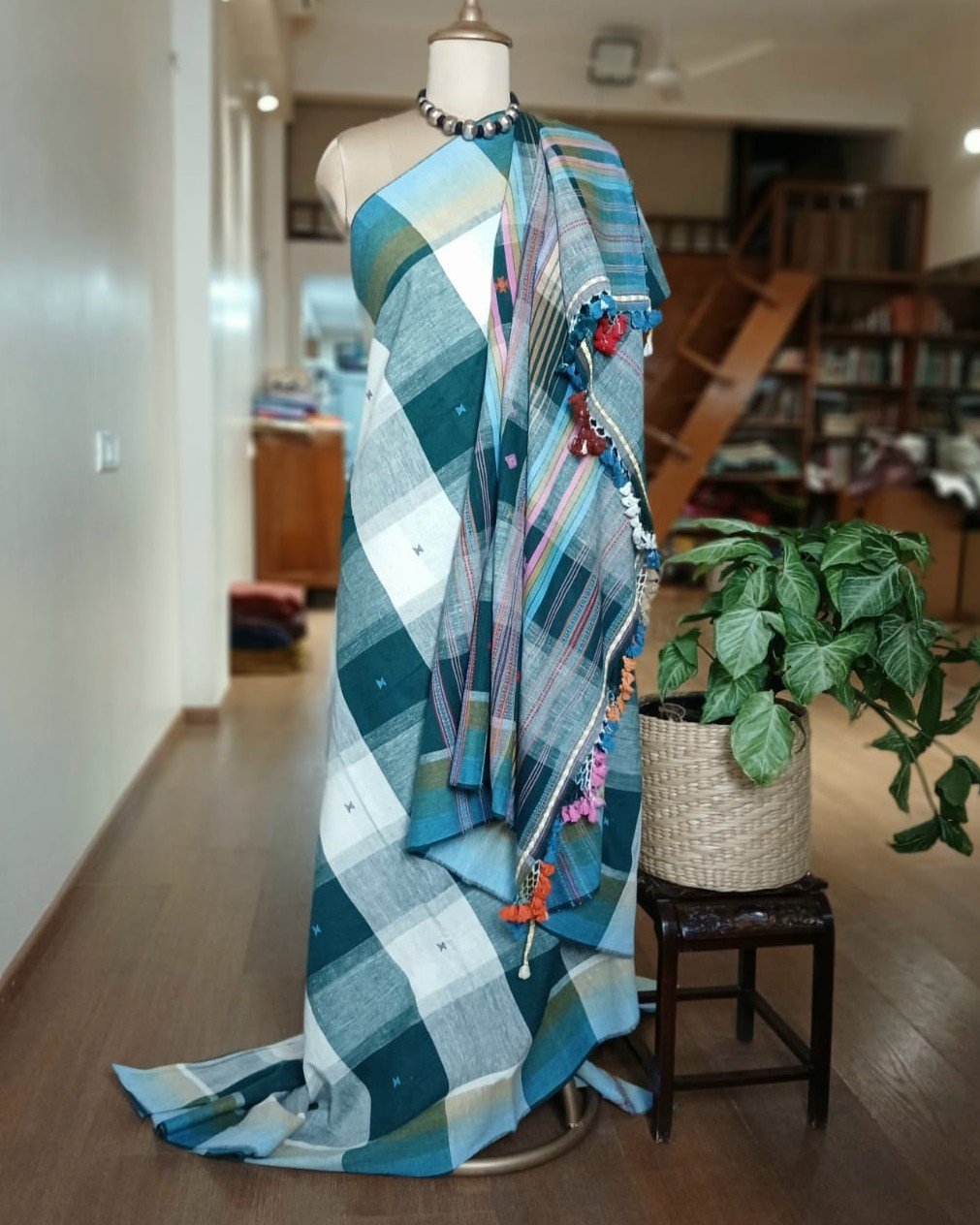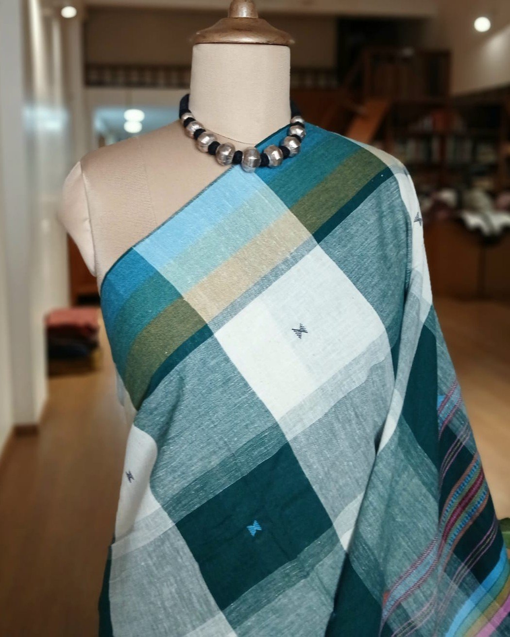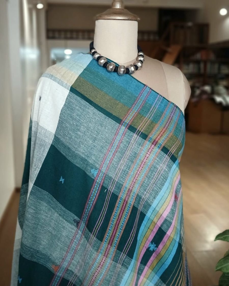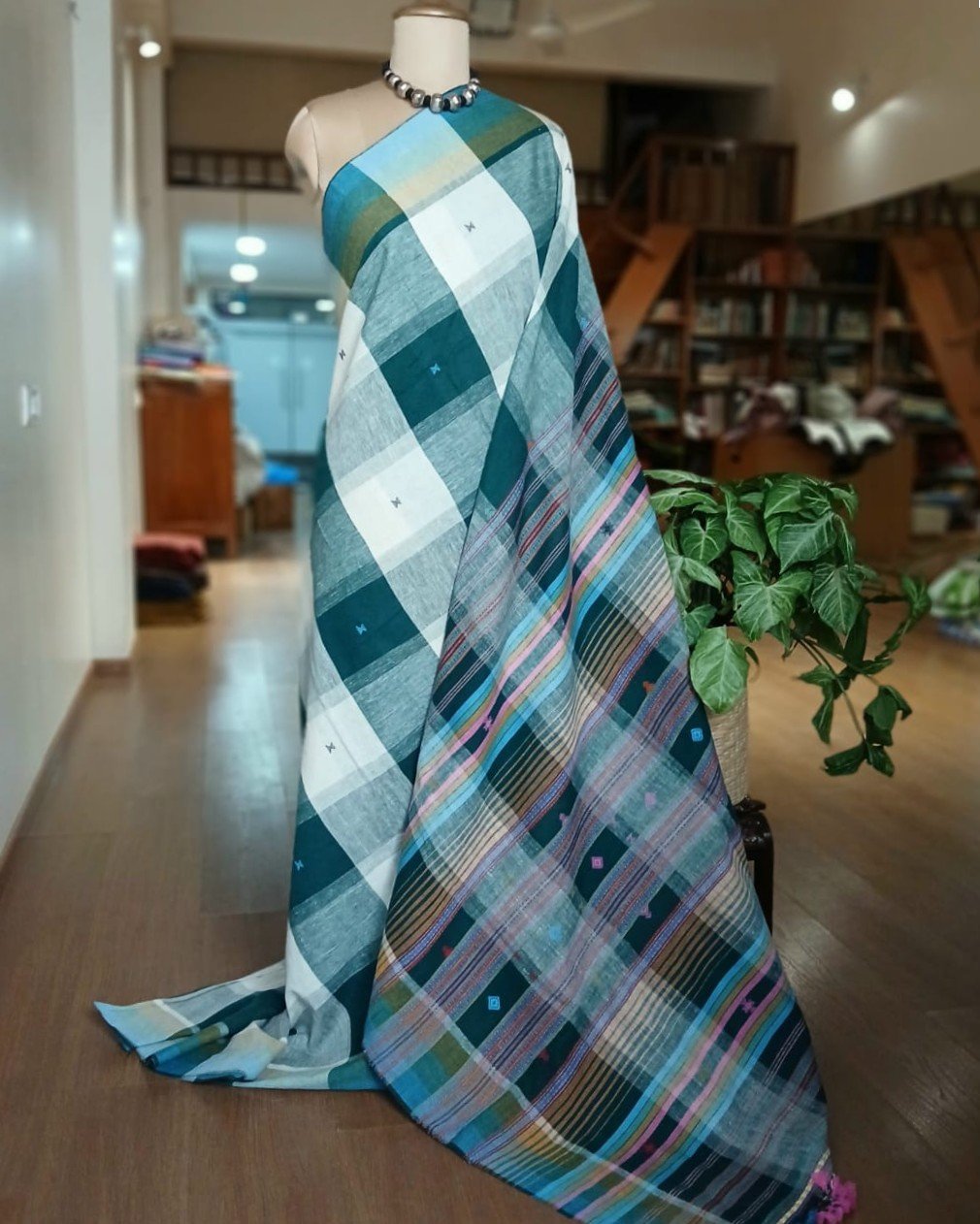 Bhujodi Saree handwoven in Kala Cotton from Kutch in Gujarat.