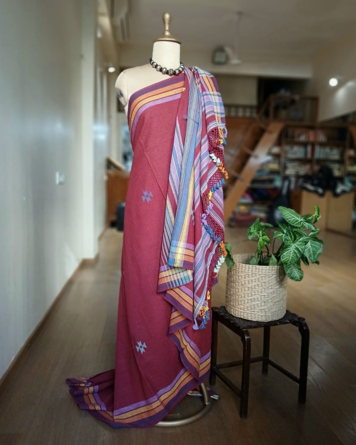 Bhujodi Saree handwoven in Kala Cotton from Kutch in Gujarat.