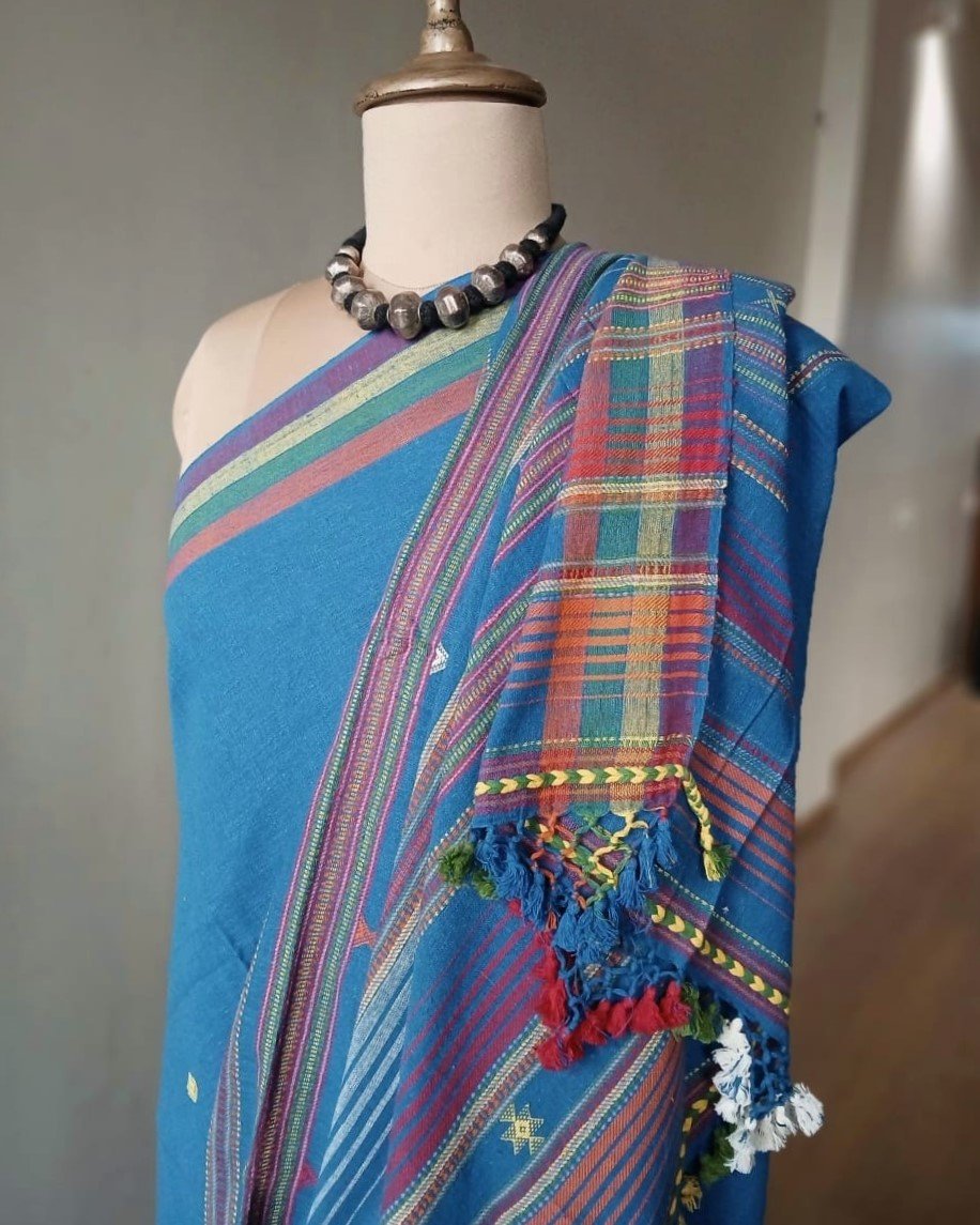 Bhujodi Saree handwoven in Kala Cotton from Kutch in Gujarat.