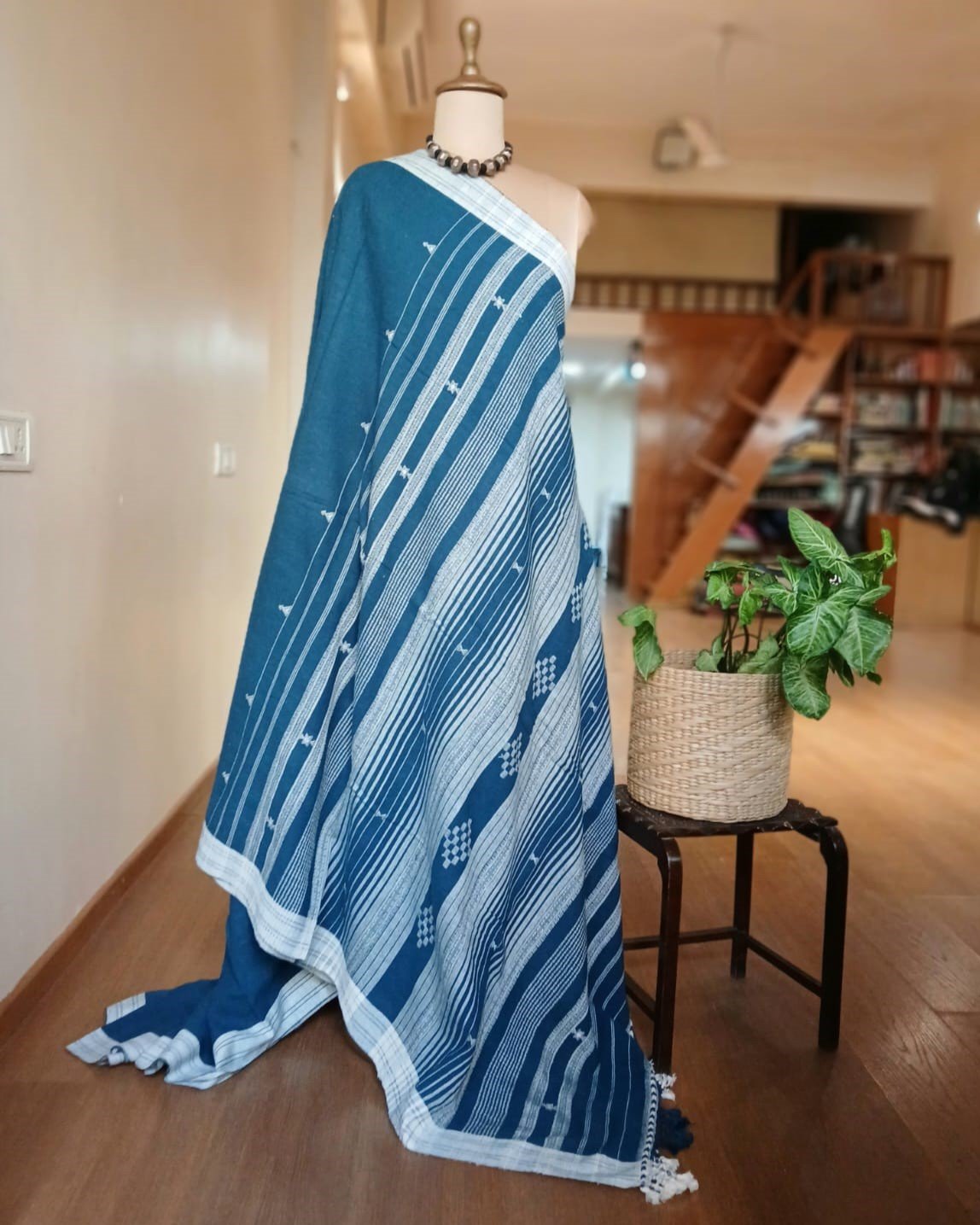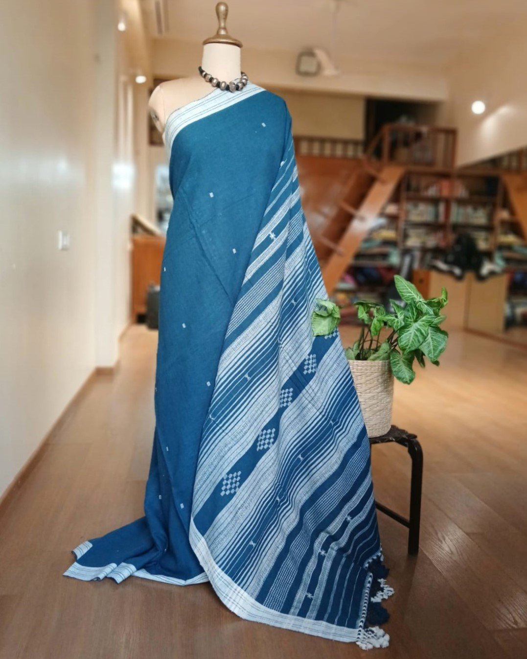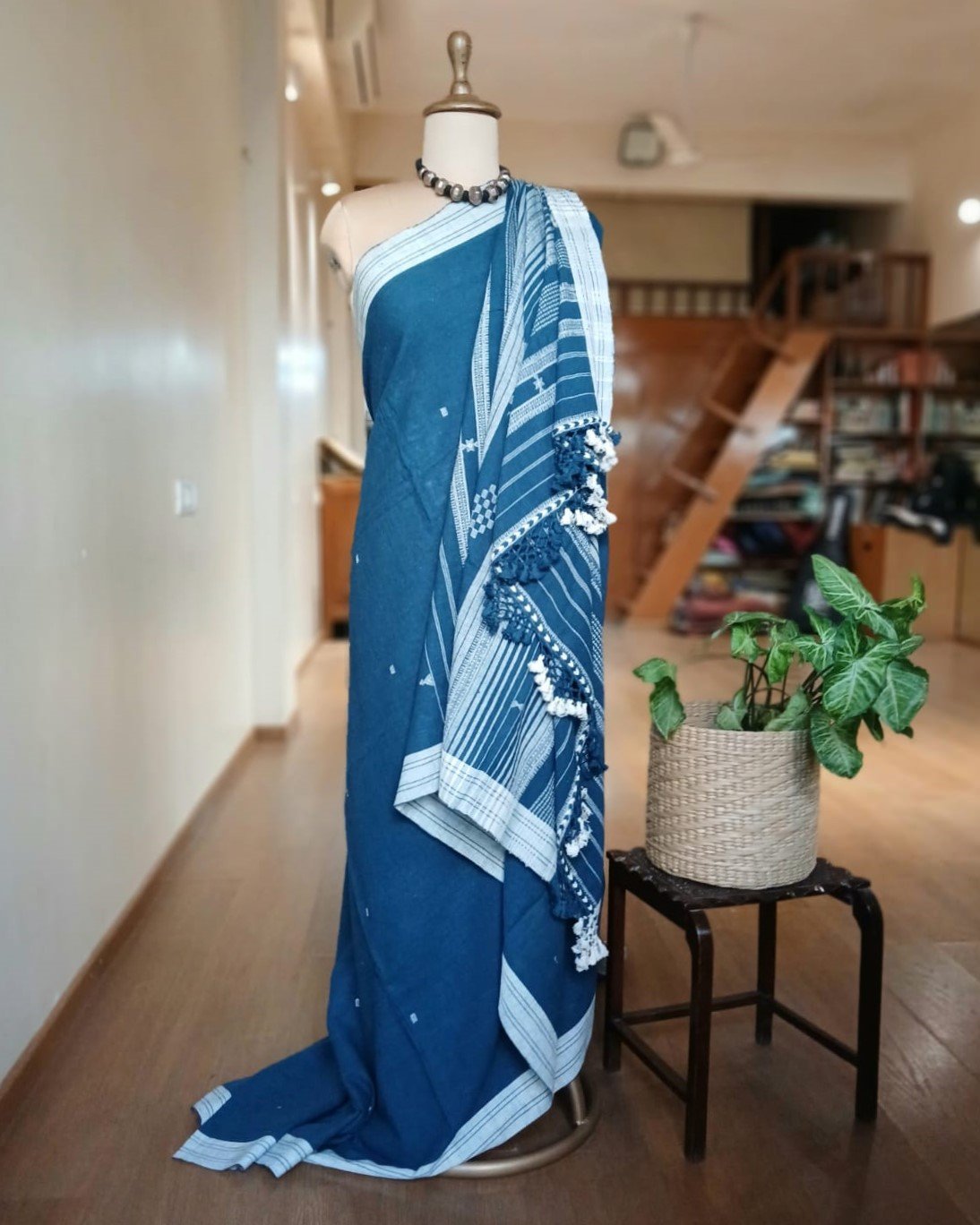 Bhujodi Saree handwoven in Kala Cotton from Kutch in Gujarat.
