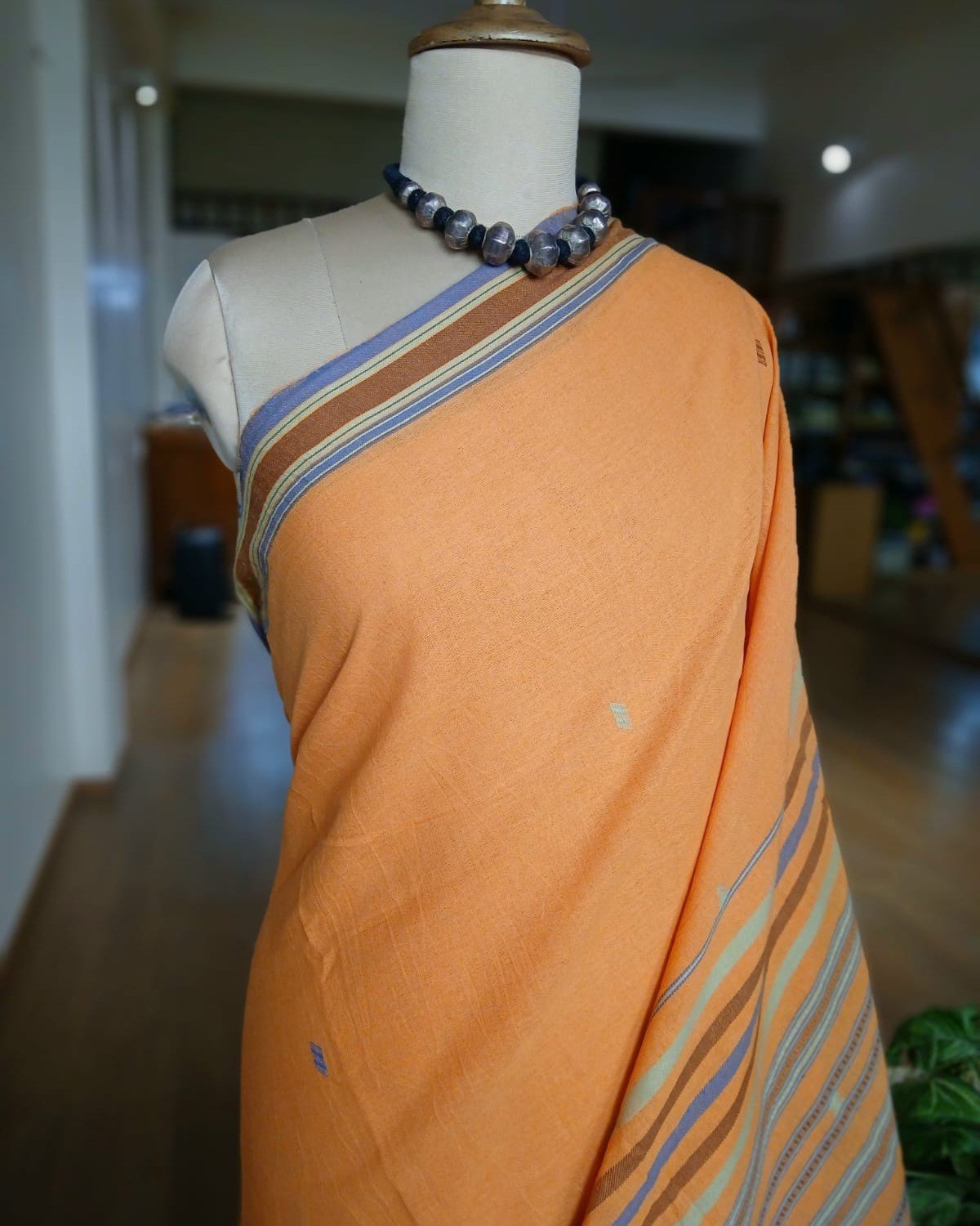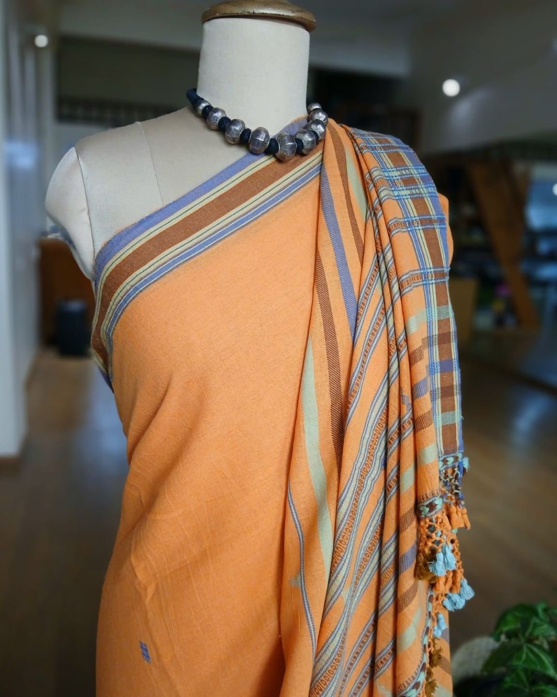 Bhujodi Saree handwoven in Kala Cotton from Kutch in Gujarat.