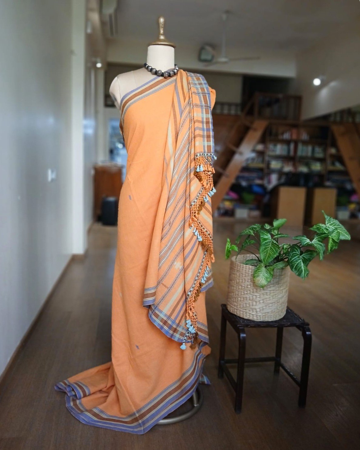 Bhujodi Saree handwoven in Kala Cotton from Kutch in Gujarat