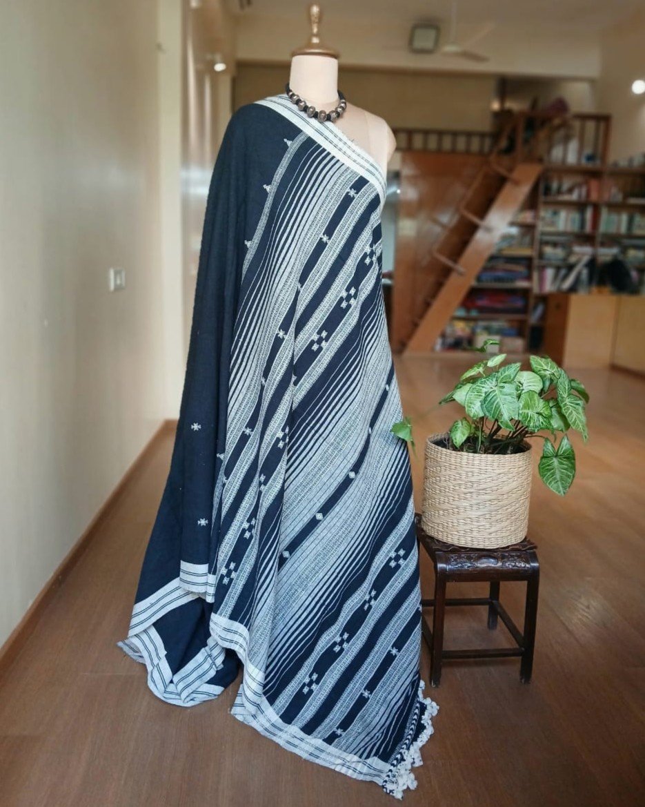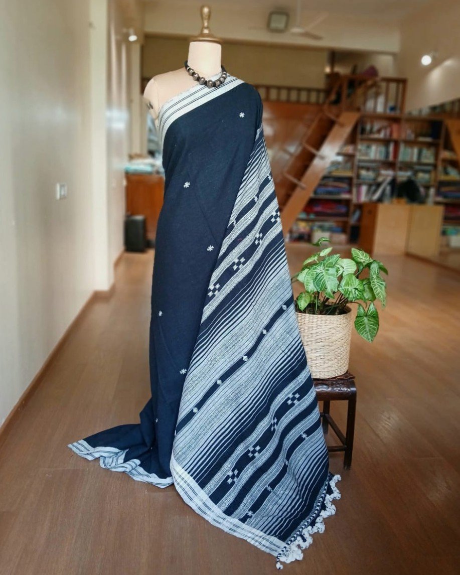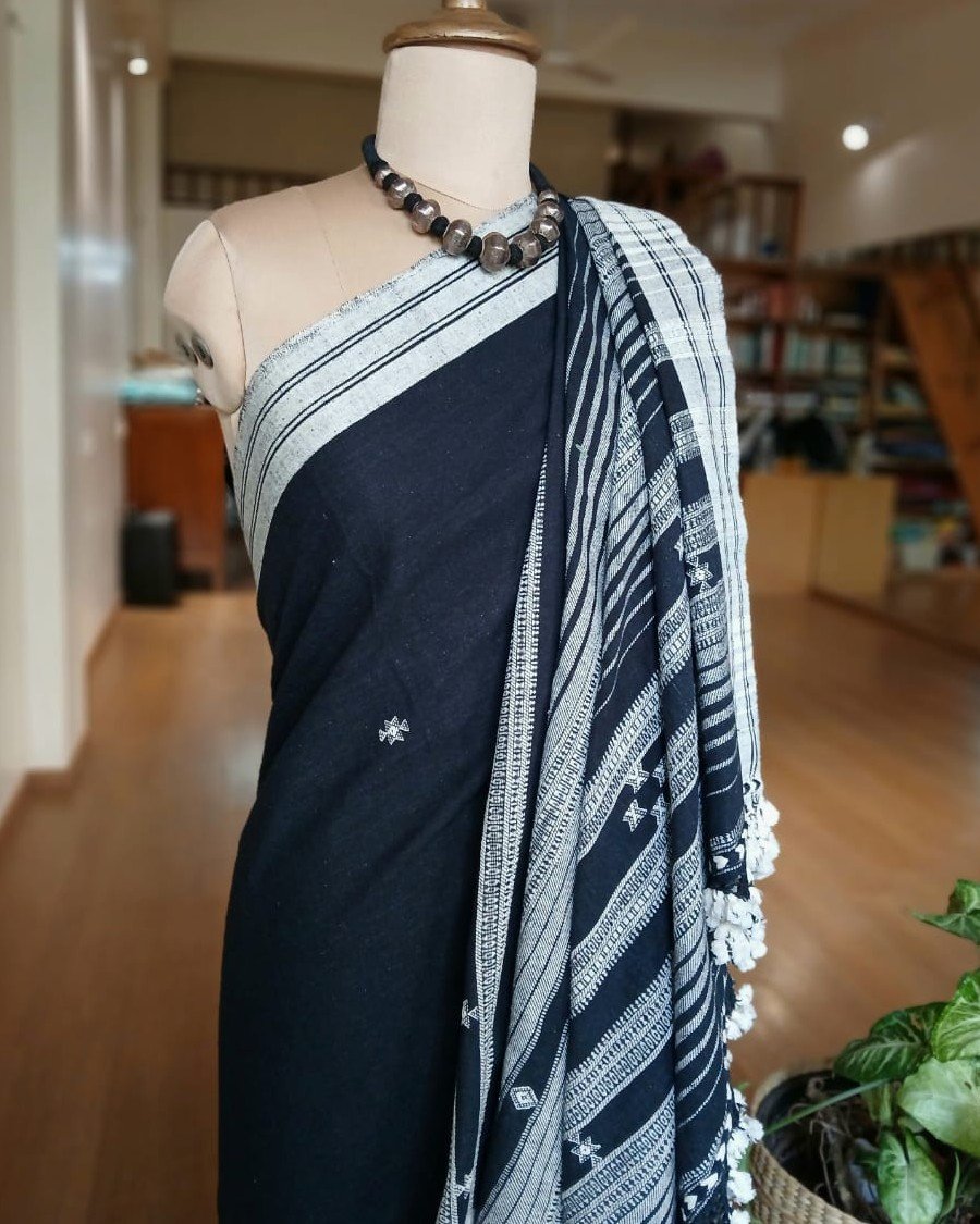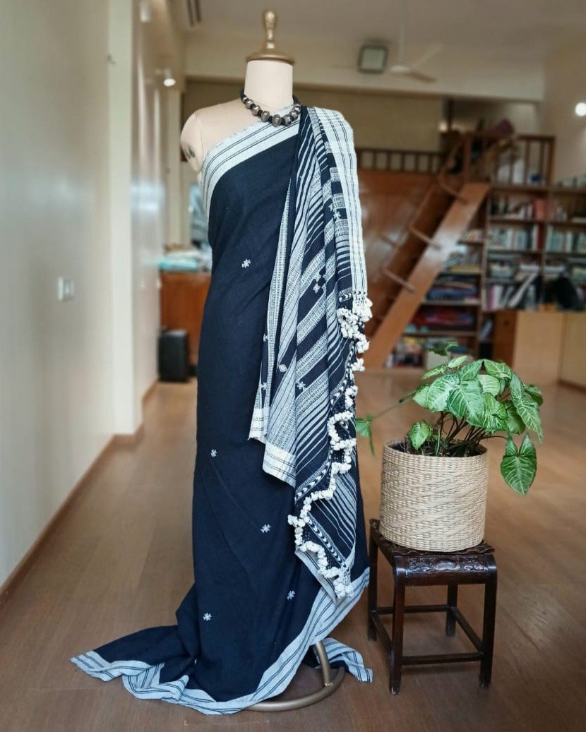 Bhujodi Saree handwoven in Kala Cotton from Kutch in Gujarat.
