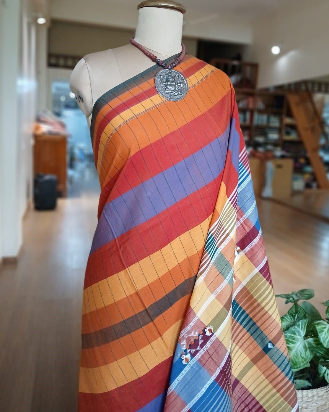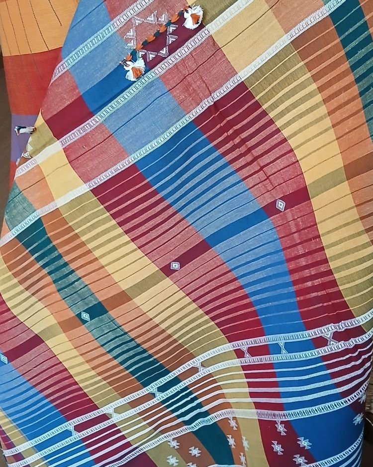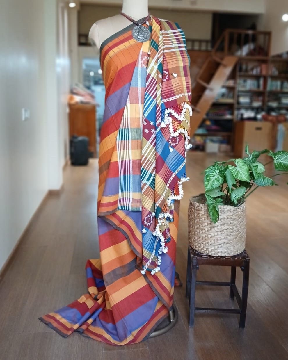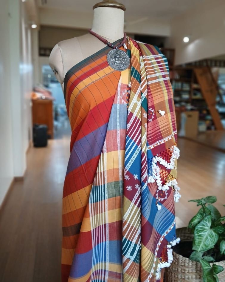 Bhujodi Saree handwoven in Kala Cotton. Beautifully finished with tassels.