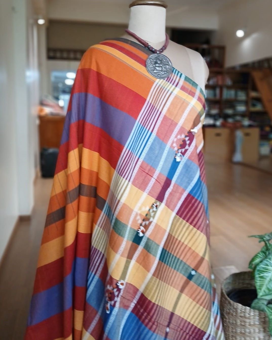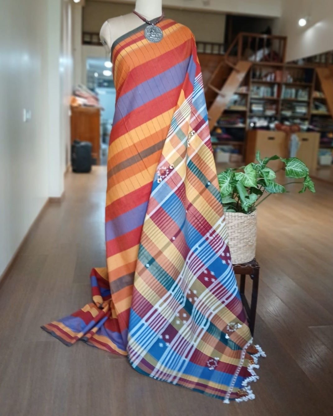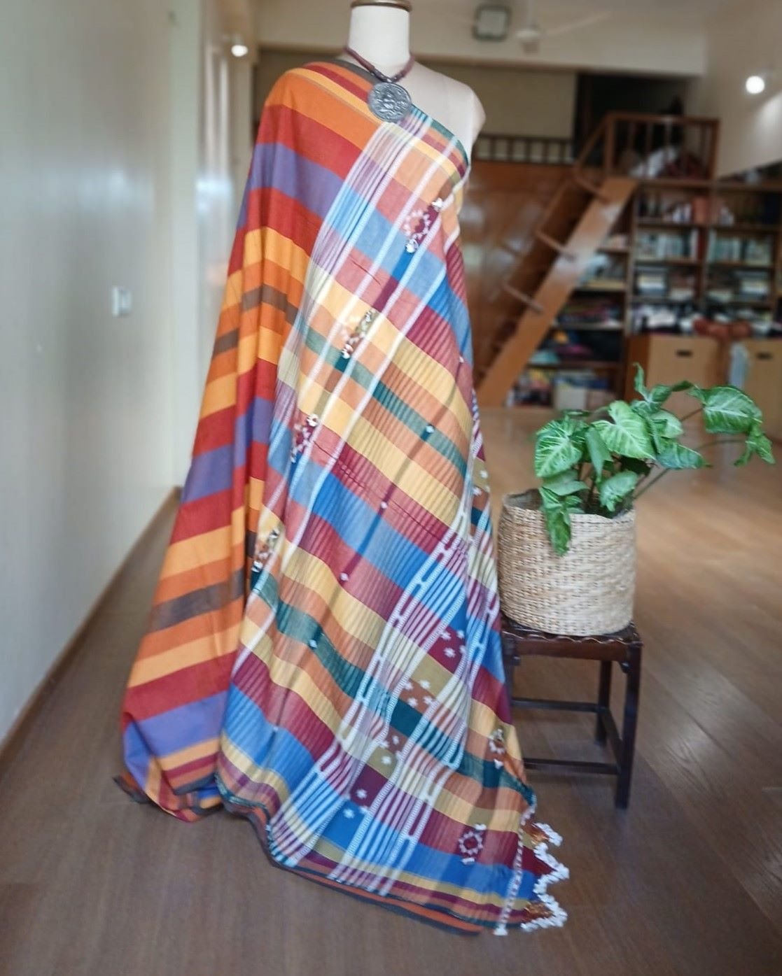 Bhujodi Saree handwoven in Kala Cotton. Beautifully finished with tassels.