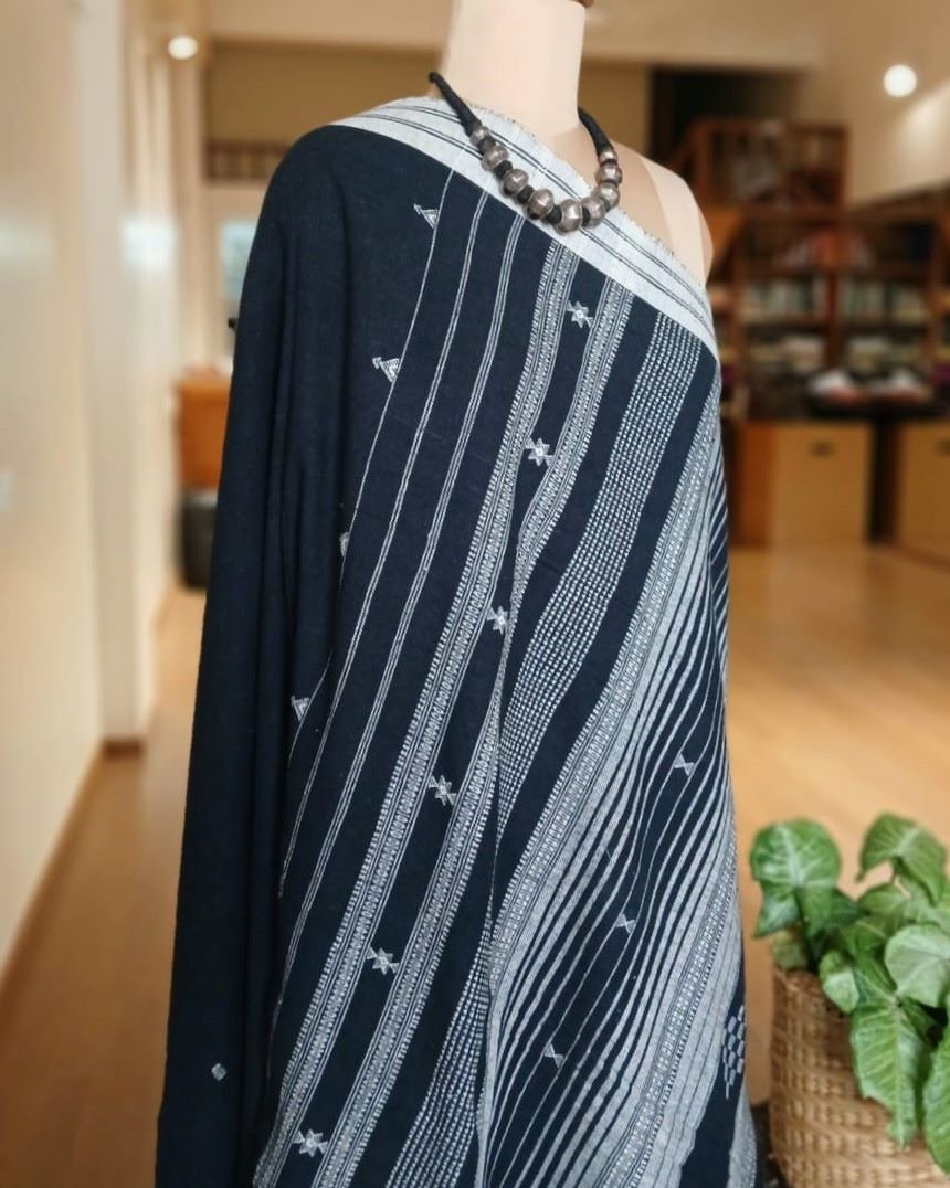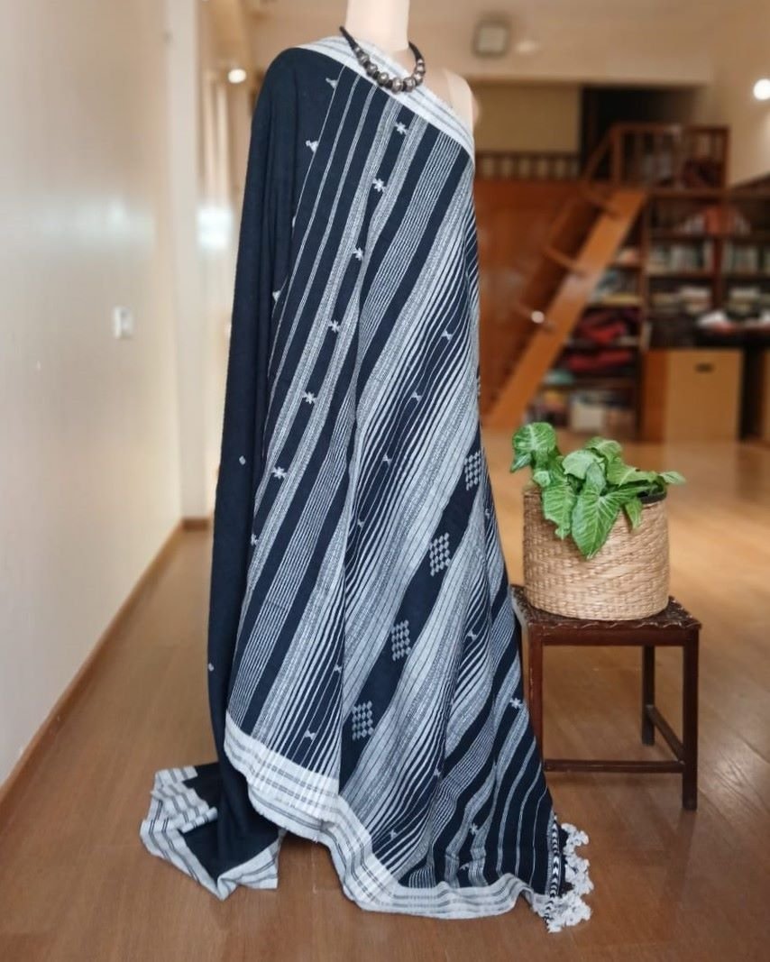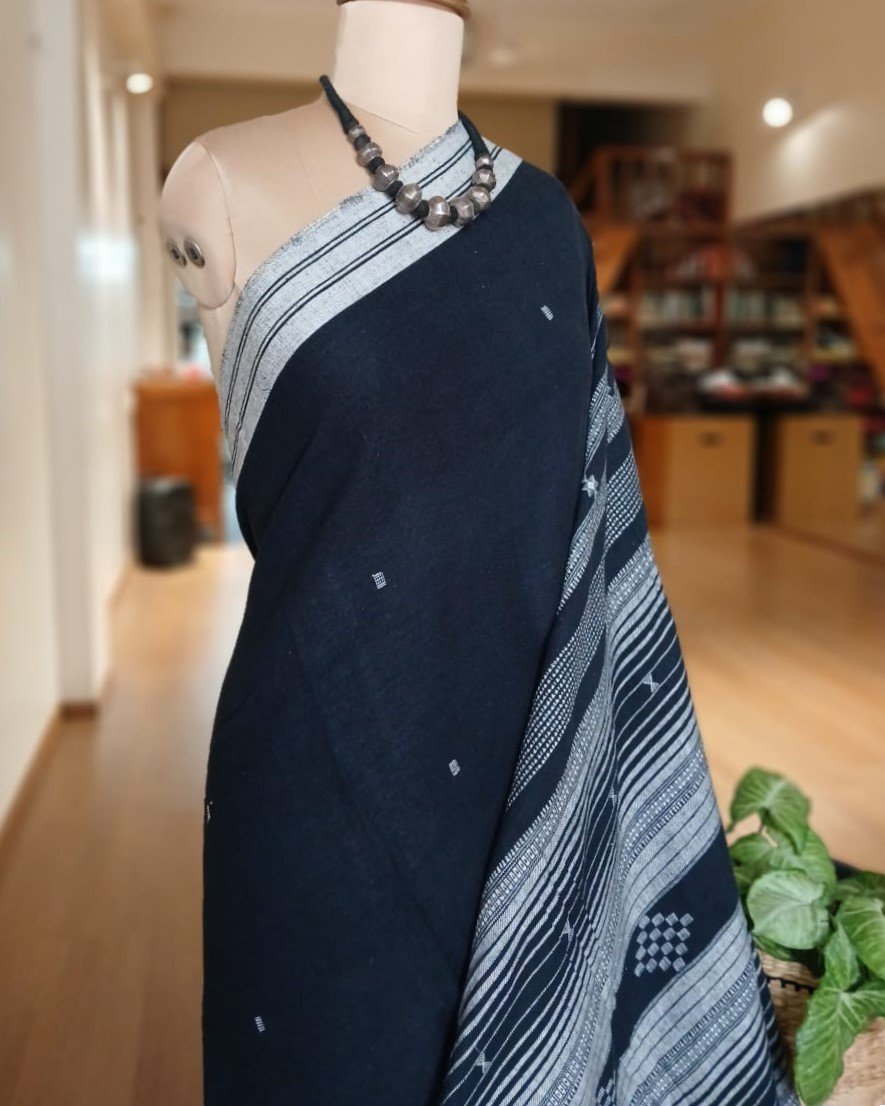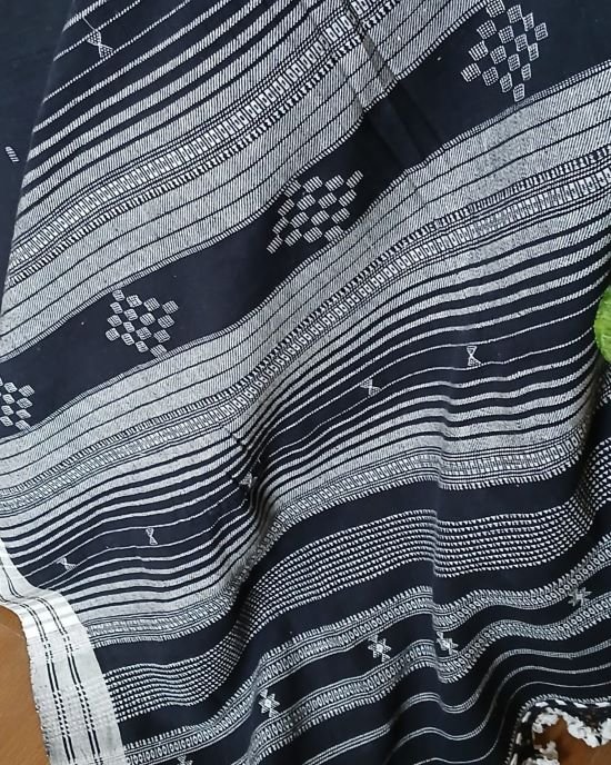 Bhujodi Saree handwoven in Kala Cotton. Beautifully finished with tassels.