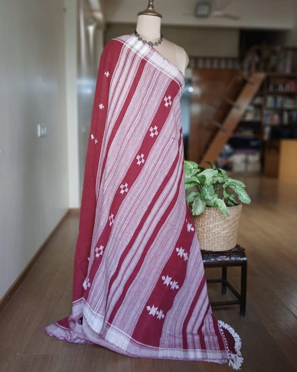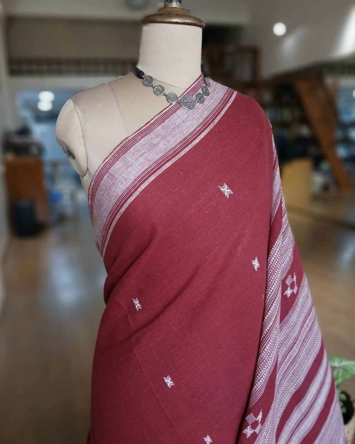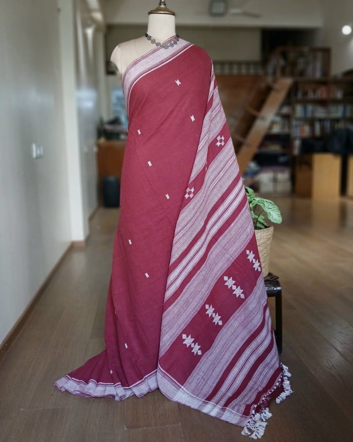 Bhujodi Saree handwoven in Kala Cotton. Beautifully finished with tassels.