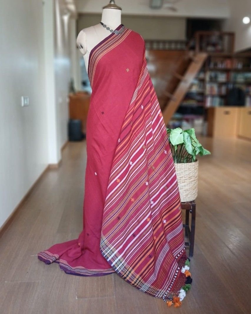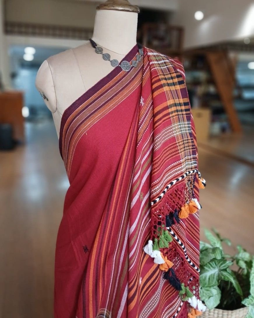 Bhujodi Sarees handwoven in Kala Cotton Beautifully finished with tassels.