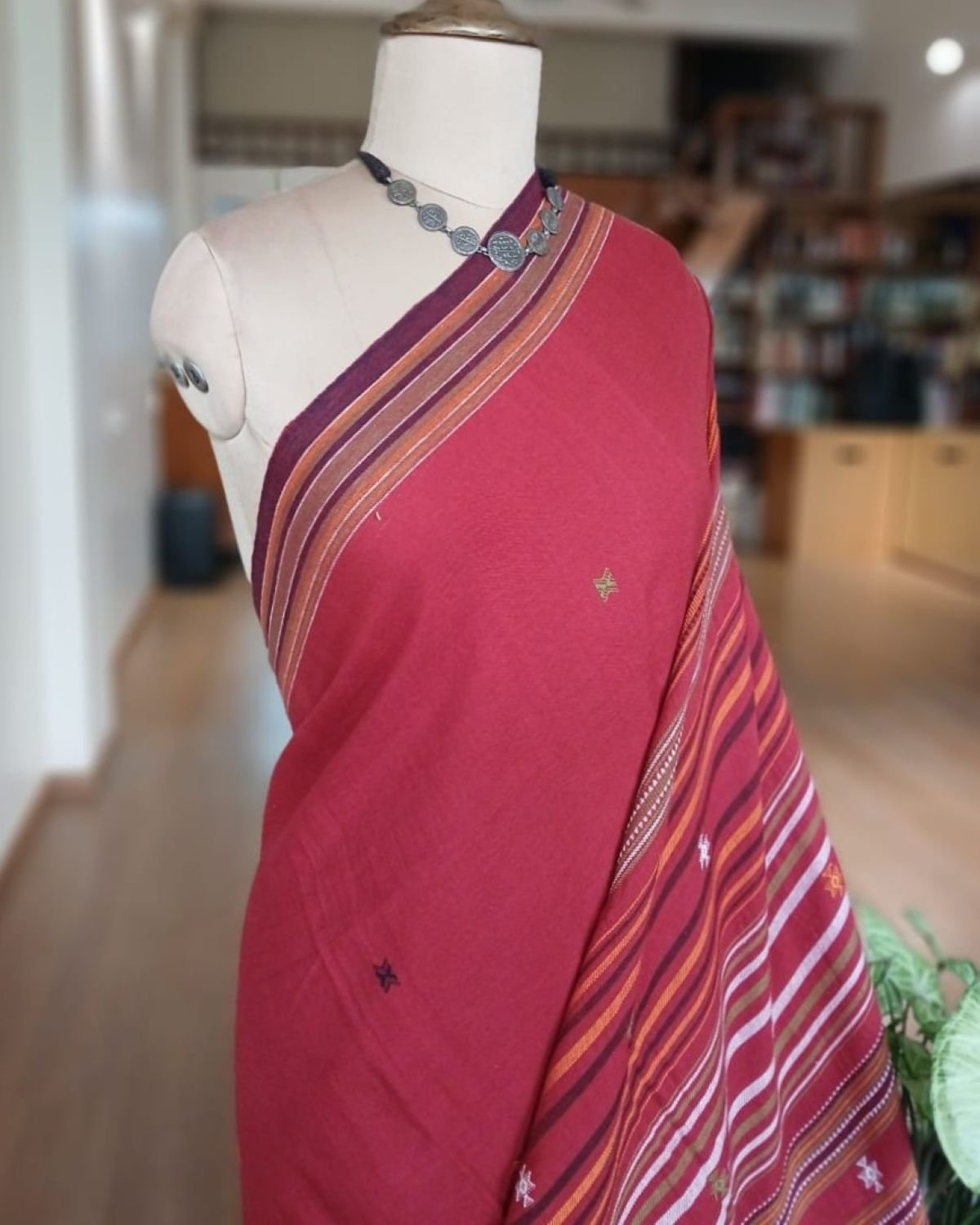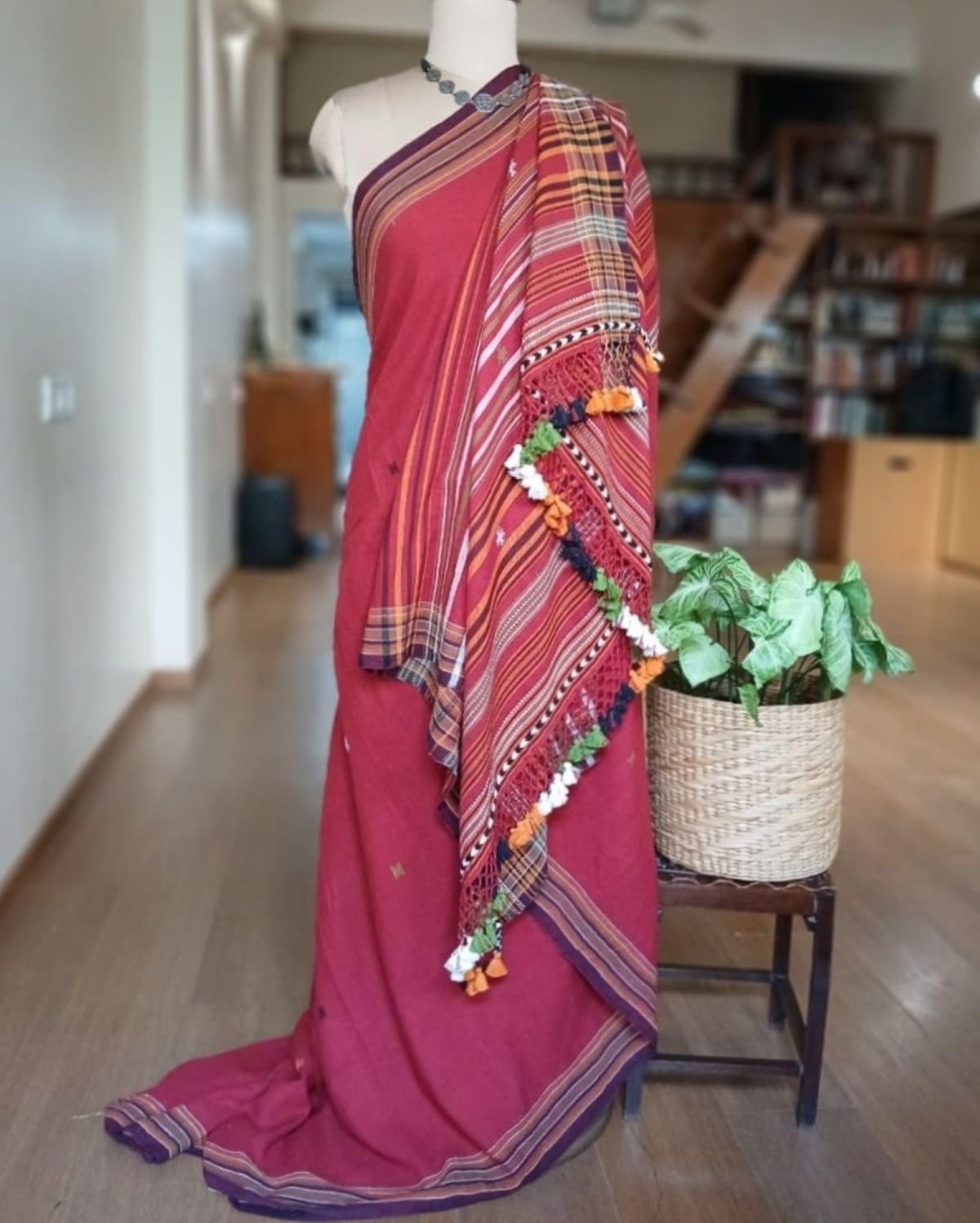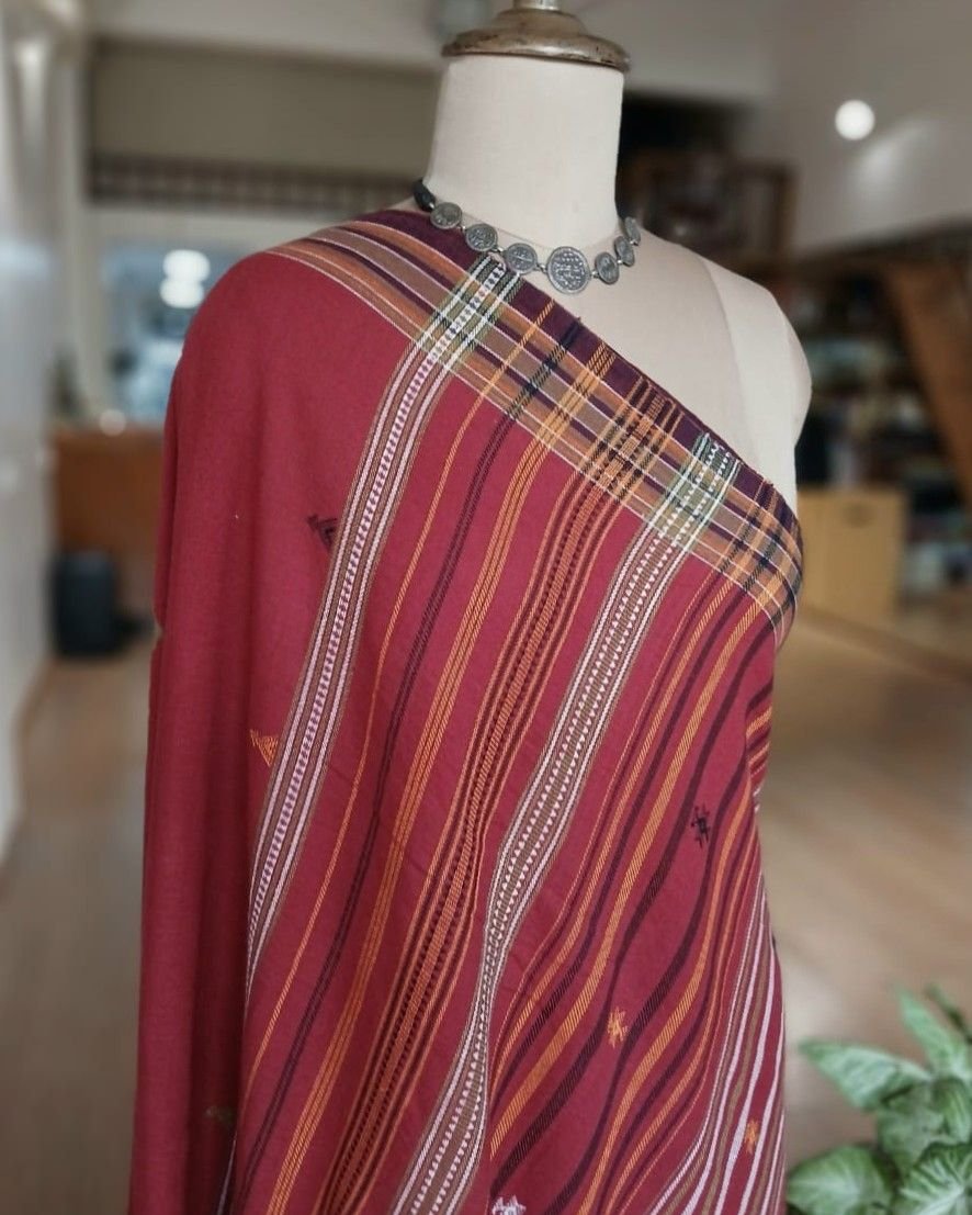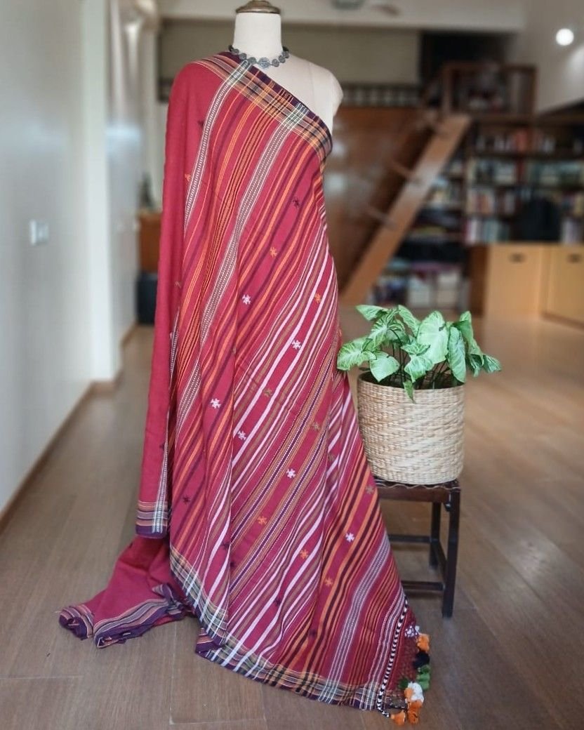 Bhujodi Saree handwoven in Kala Cotton. Beautifully finished with tassels.