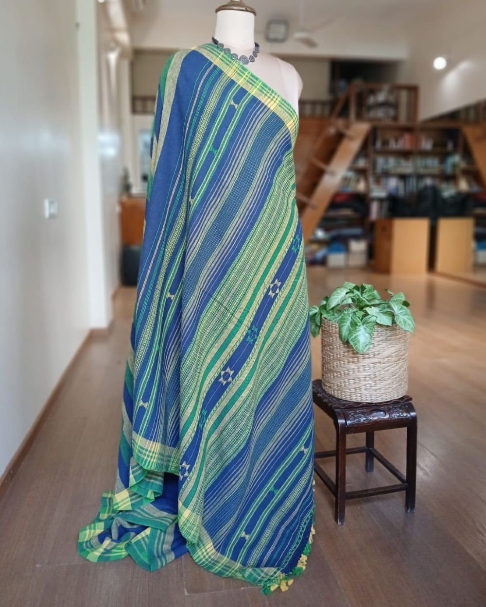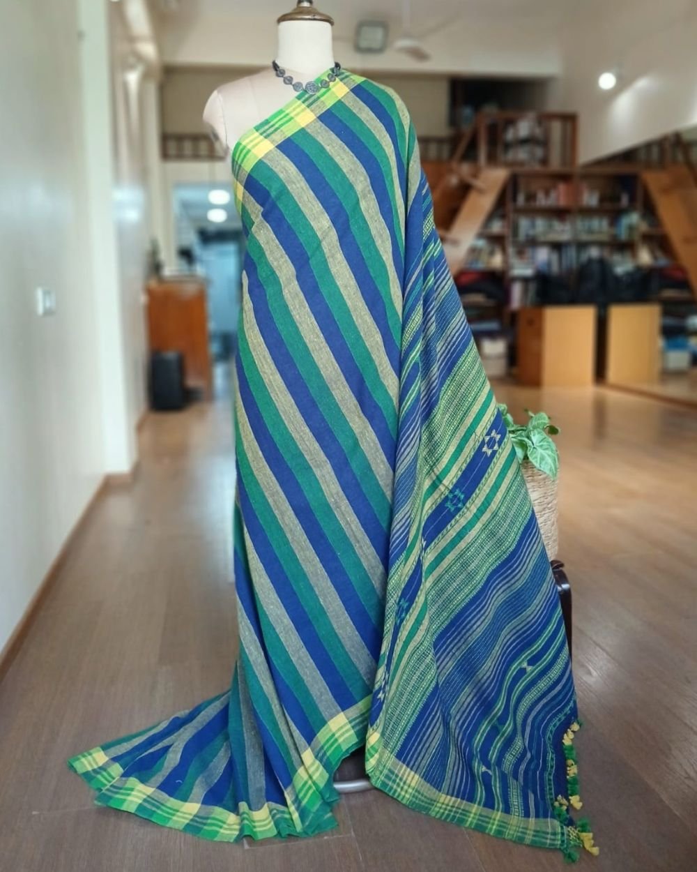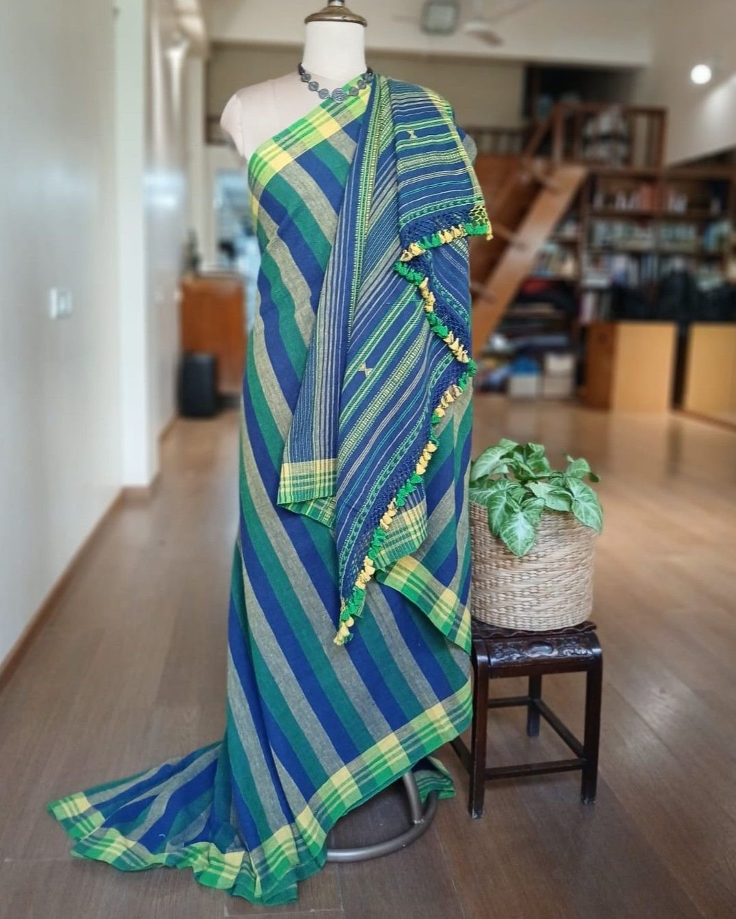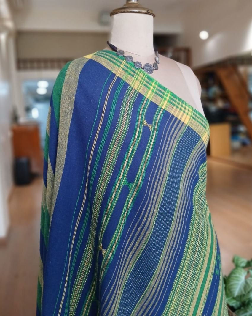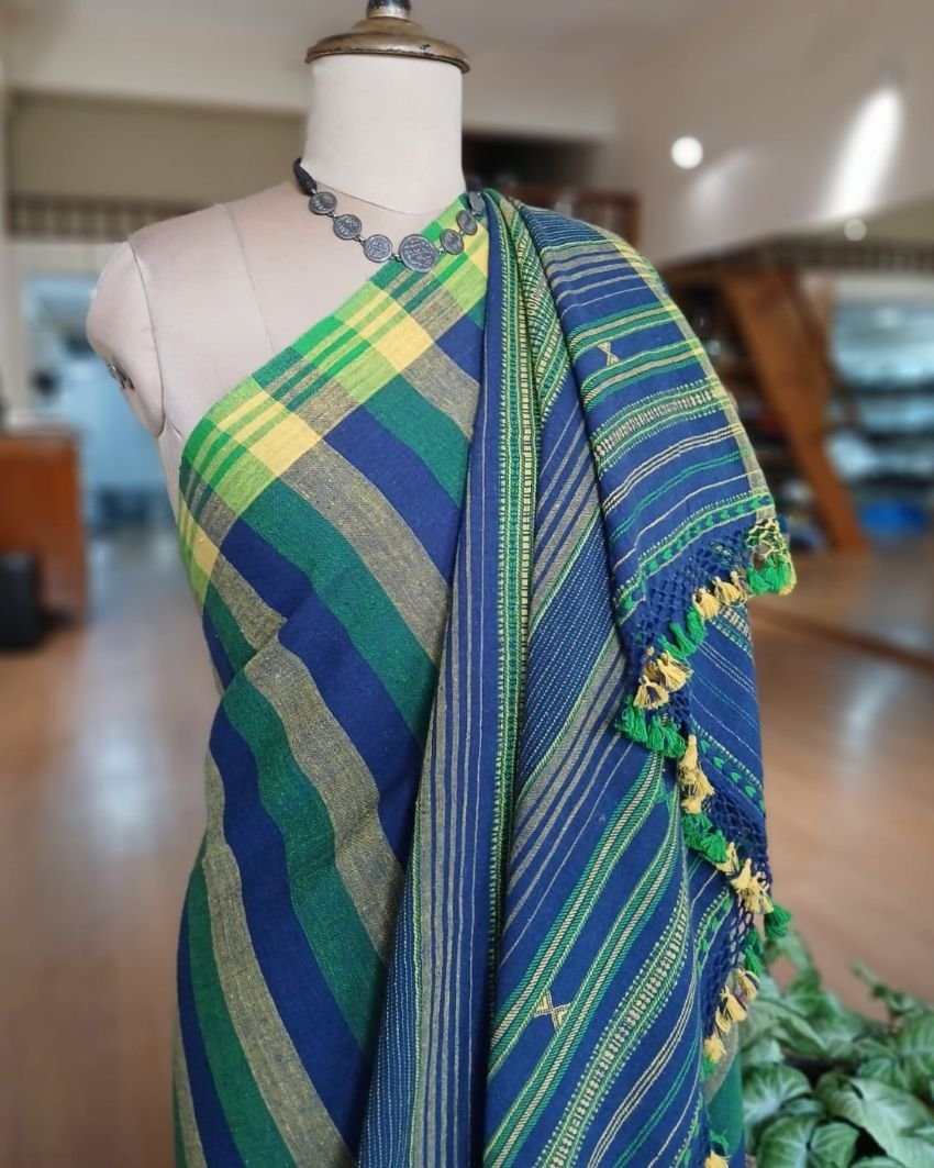 Bhujodi Saree handwoven in Kala Cotton. Beautifully finished with tassels.