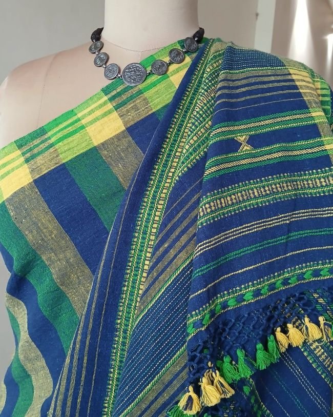 Bhujodi Sarees handwoven in Kala Cotton Beautifully finished with tassels.