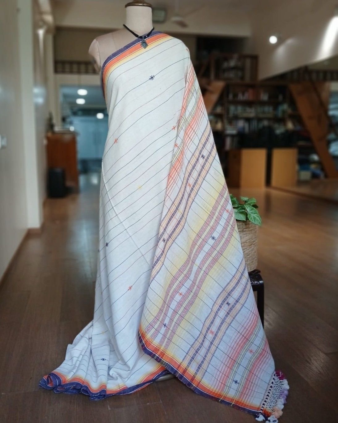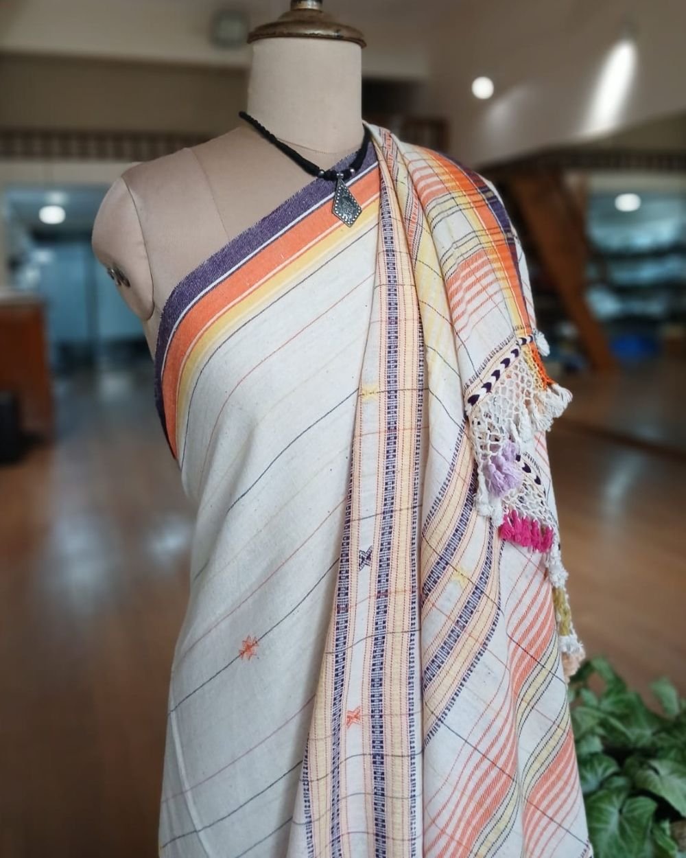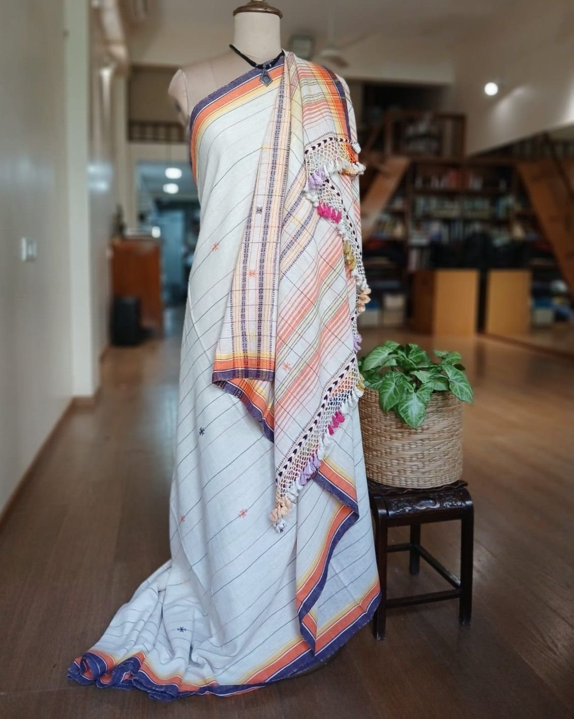 Bhujodi Sarees handwoven in Kala Cotton Beautifully finished with tassels.