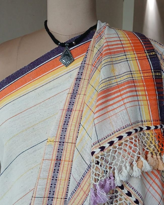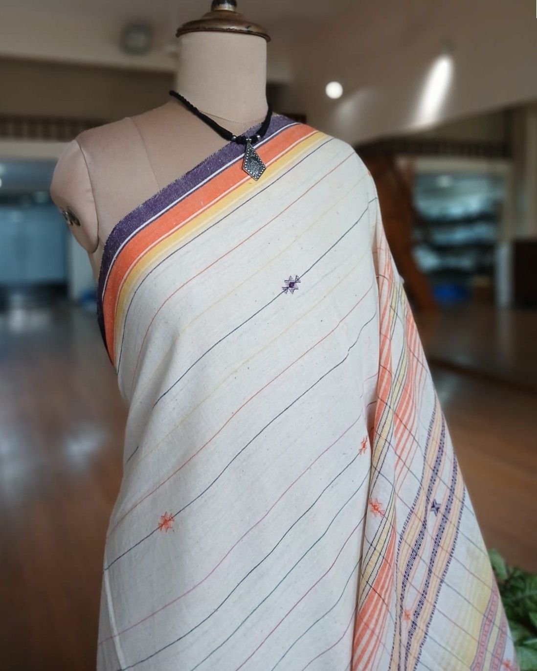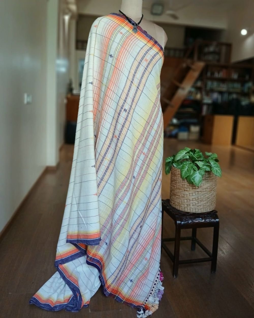 Bhujodi Sarees handwoven in Kala Cotton Beautifully finished with tassels.