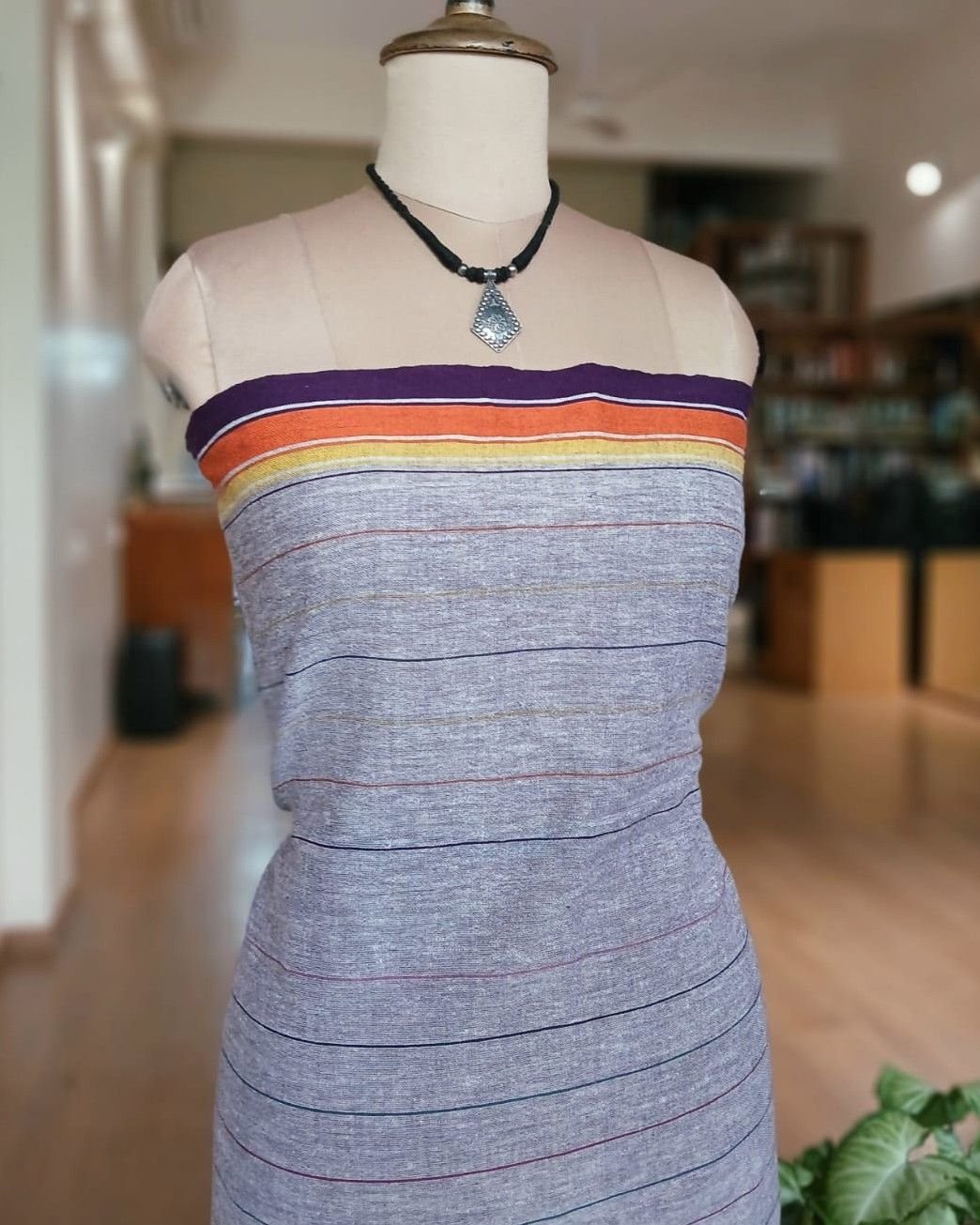 Bhujodi Saree handwoven in Kala Cotton. Beautifully finished with tassels.
