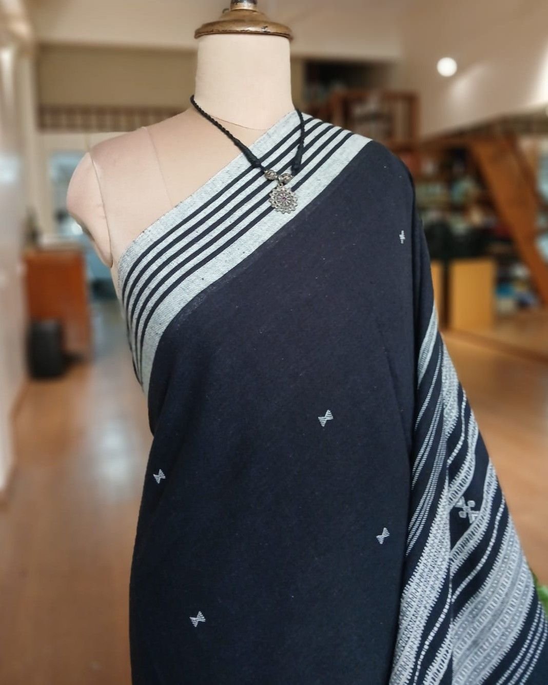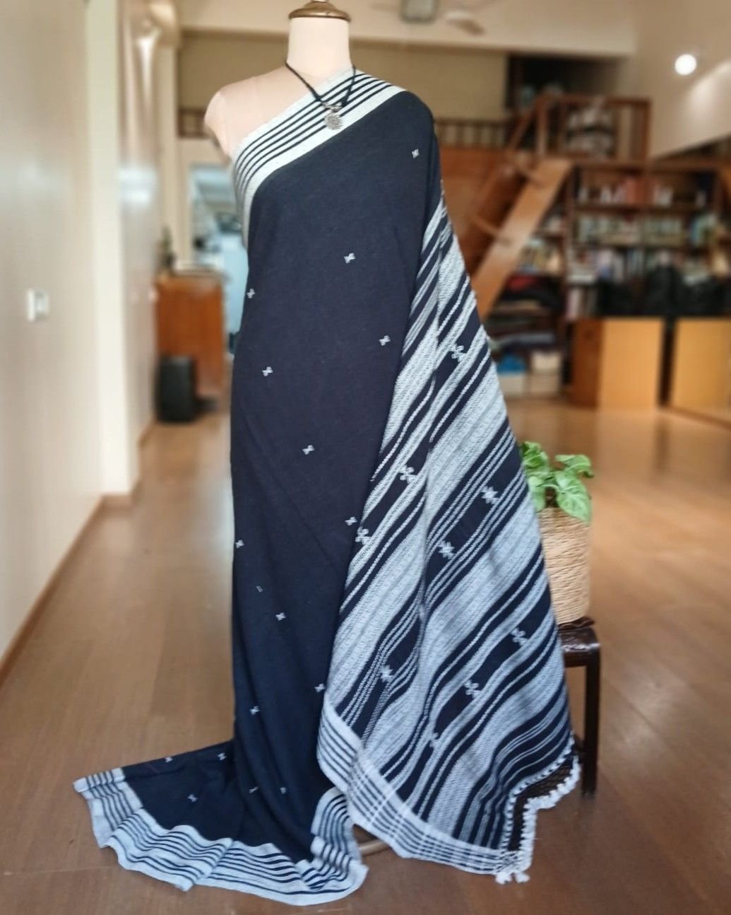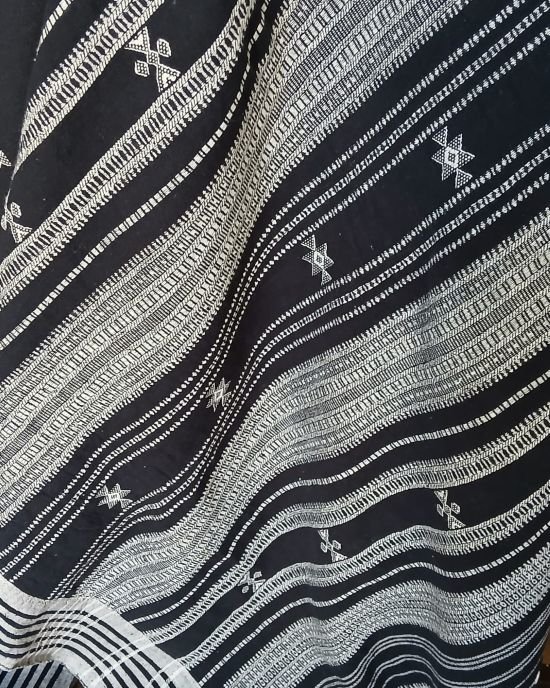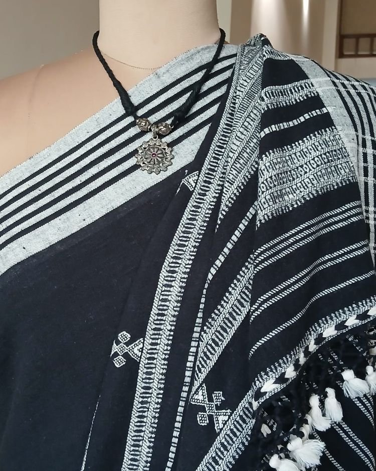 Bhujodi Sarees handwoven in Kala Cotton Beautifully finished with tassels.
