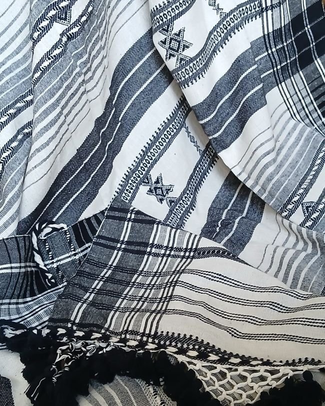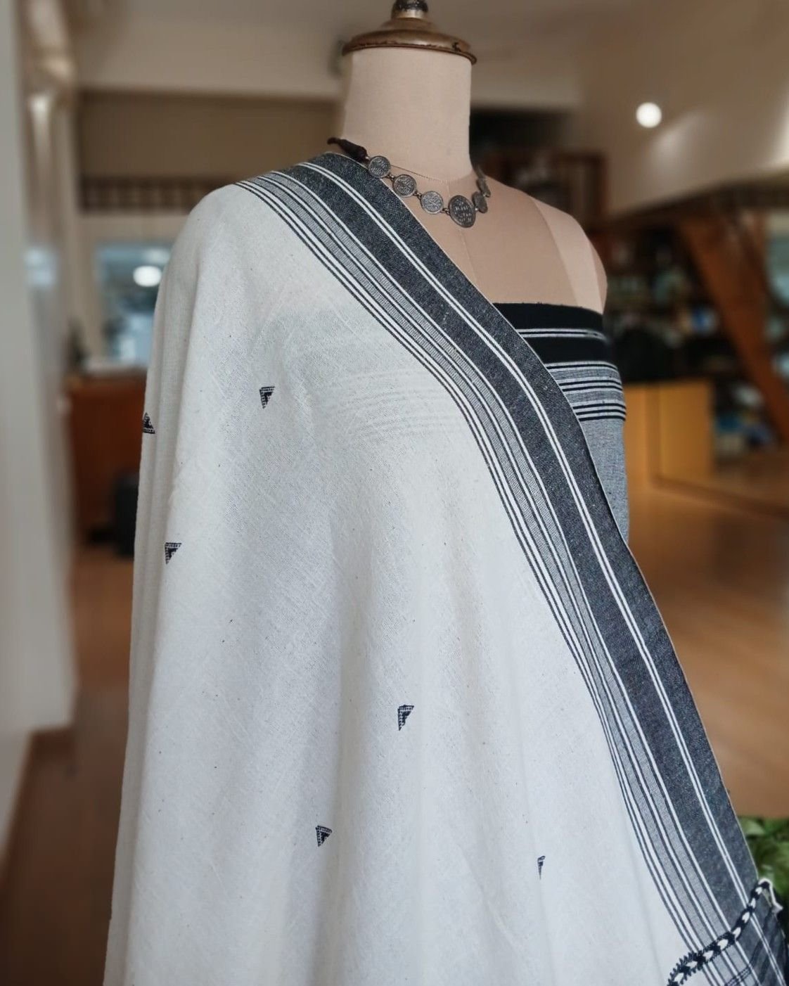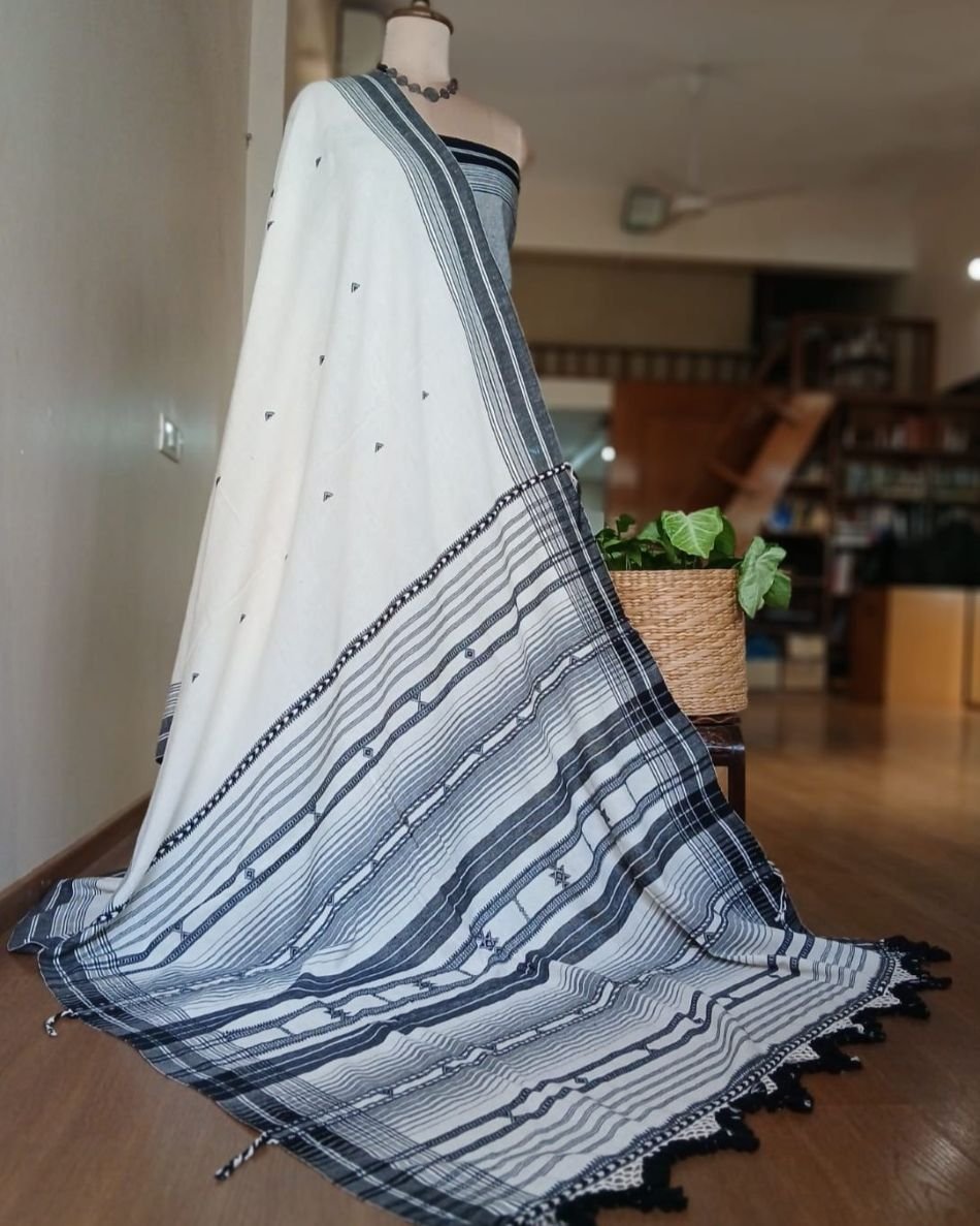 Bhujodi Sarees handwoven in Kala Cotton Beautifully finished with tassels.