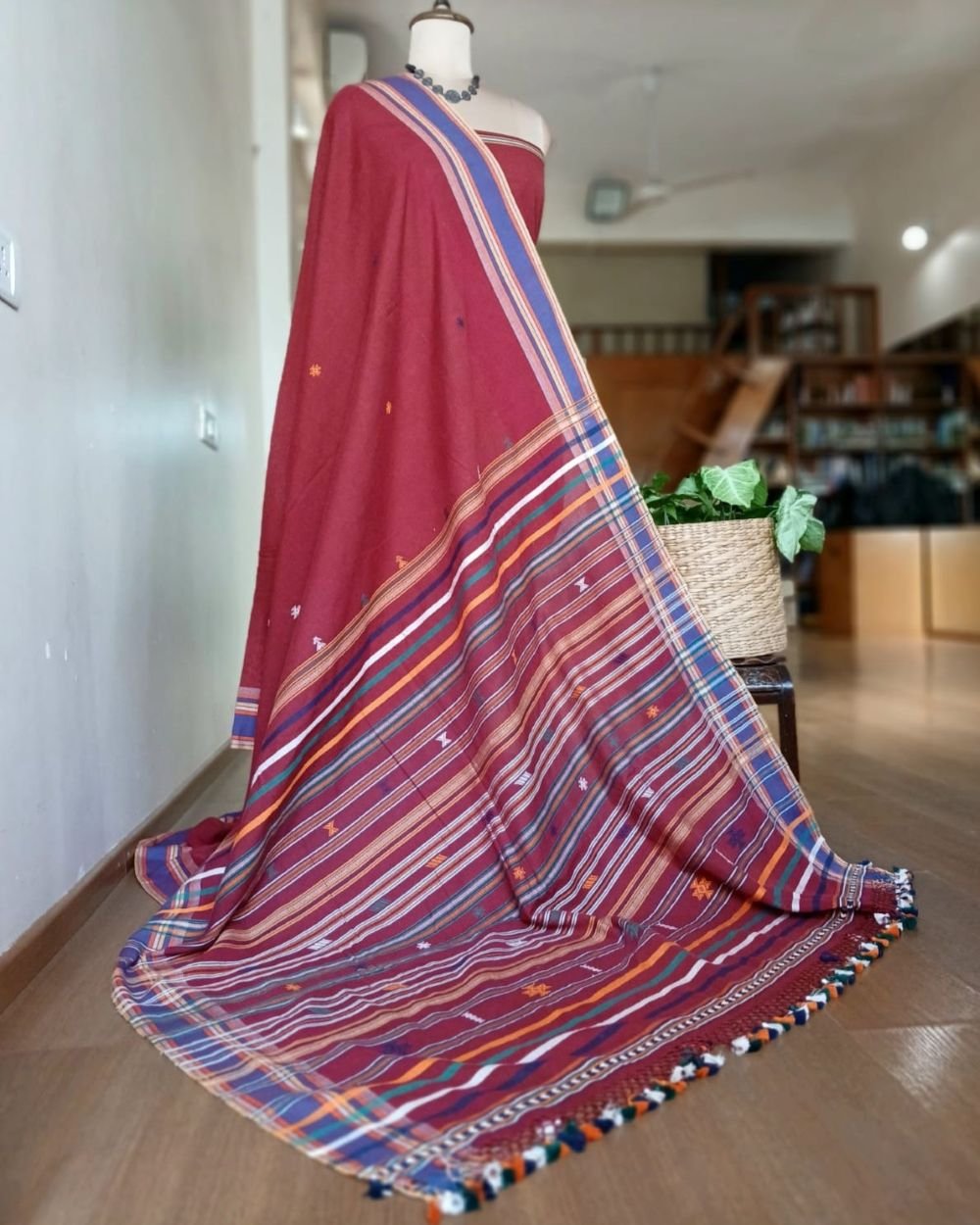 Bhujodi Sarees handwoven in Kala Cotton Beautifully finished with tassels.