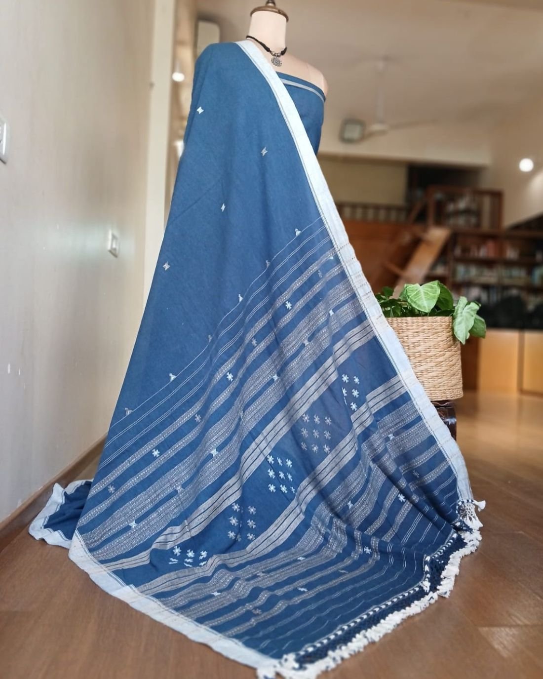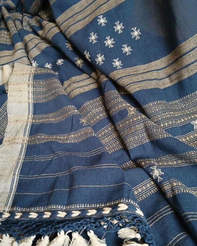 Bhujodi Sarees handwoven in Kala Cotton Beautifully finished with tassels.